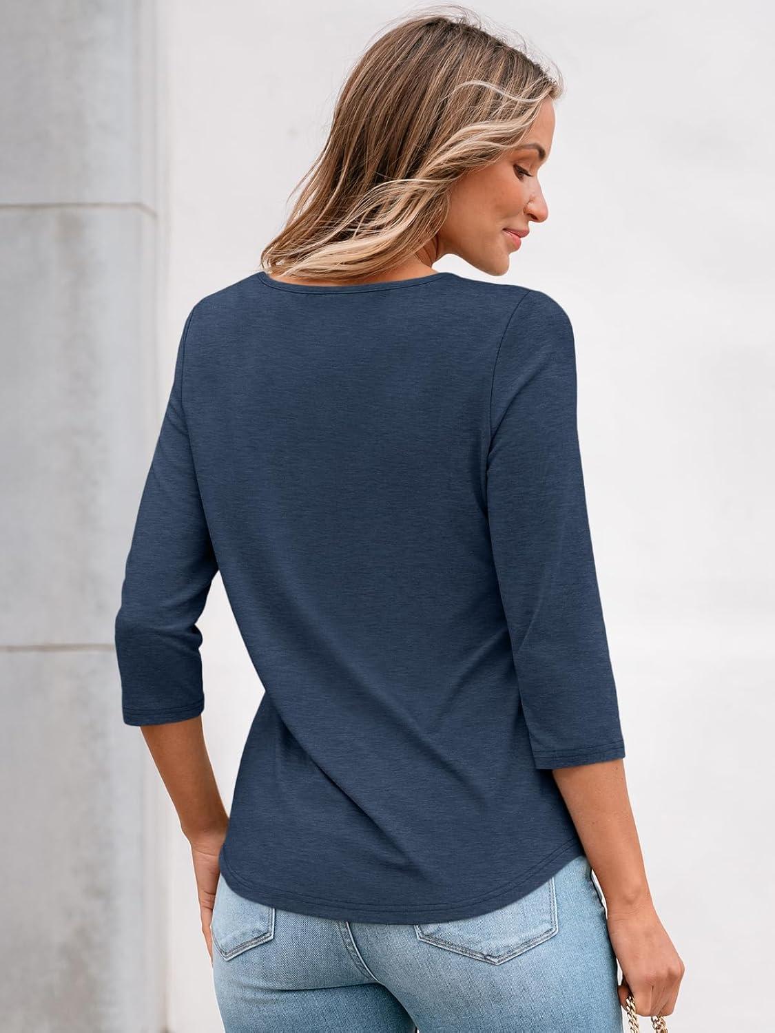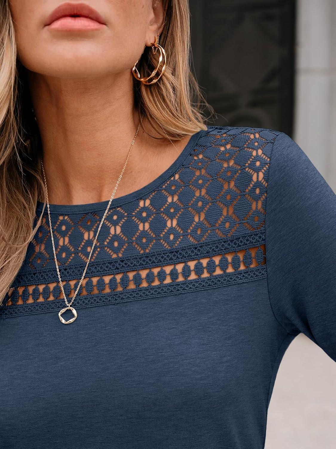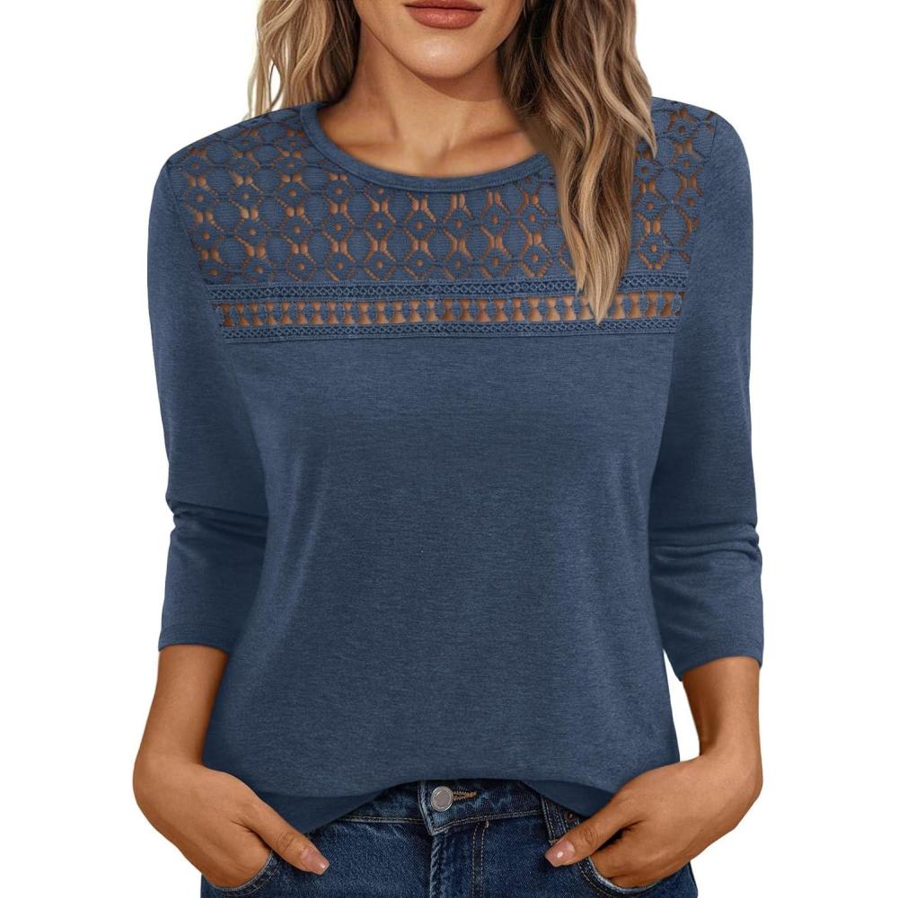 AUTOMET 3/4 Length Sleeve Womens Tops Lace Business Dressy Casual Blouses Spring Summer Fall Trendy Cute Work T Shirts(Navy)
