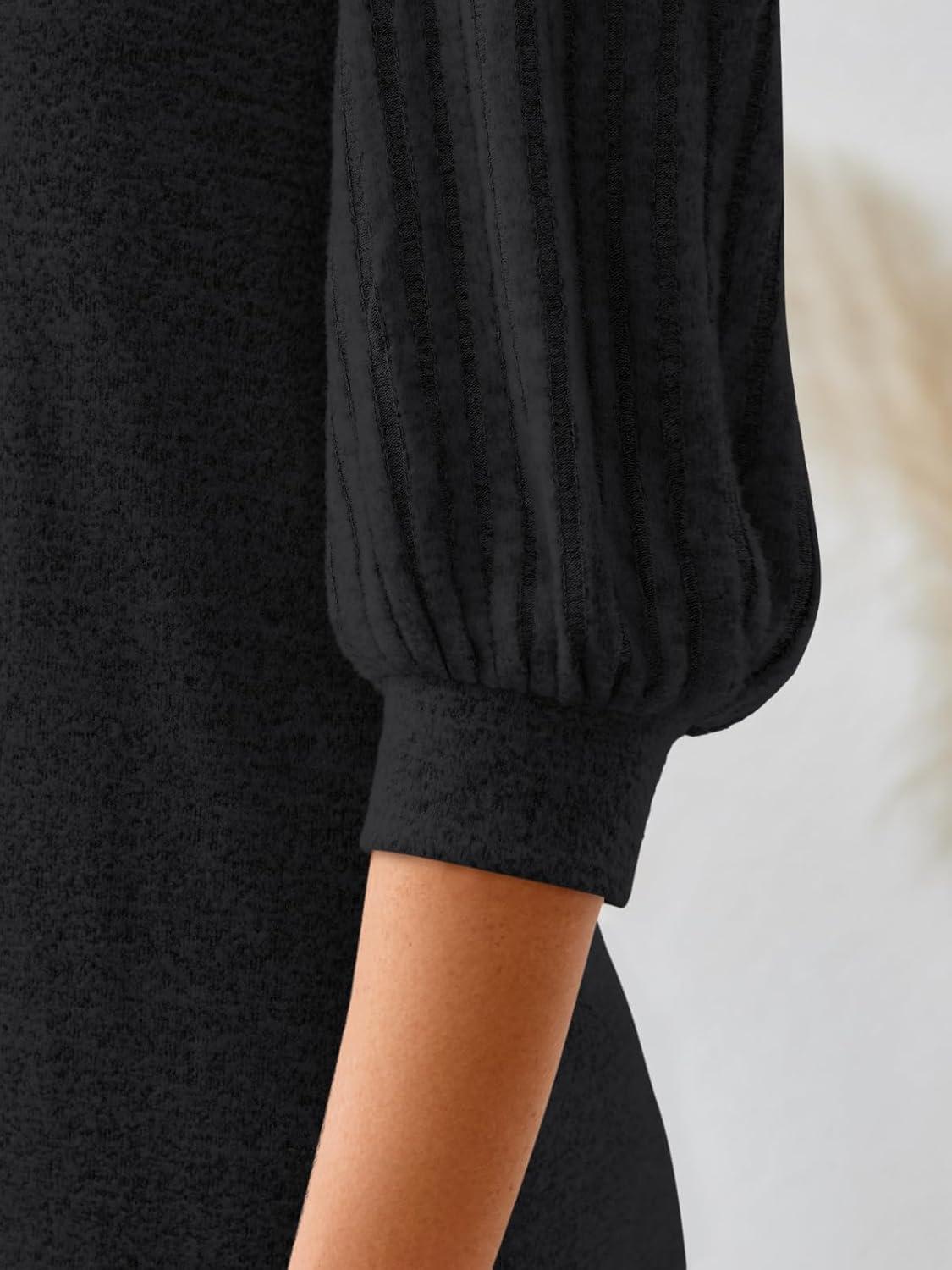 imageAUTOMET 34 Length Sleeve Womens Tops Puff Sleeve Lightweight Fall Sweaters Business Dressy Casual Work Blouses Cute T ShirtsBlack