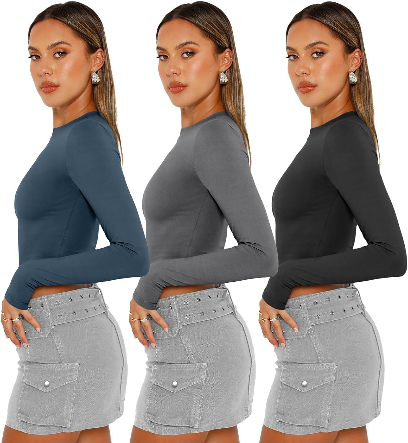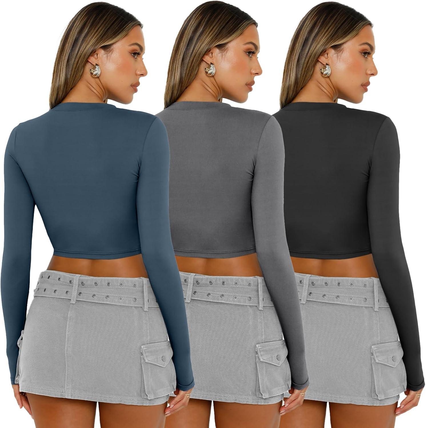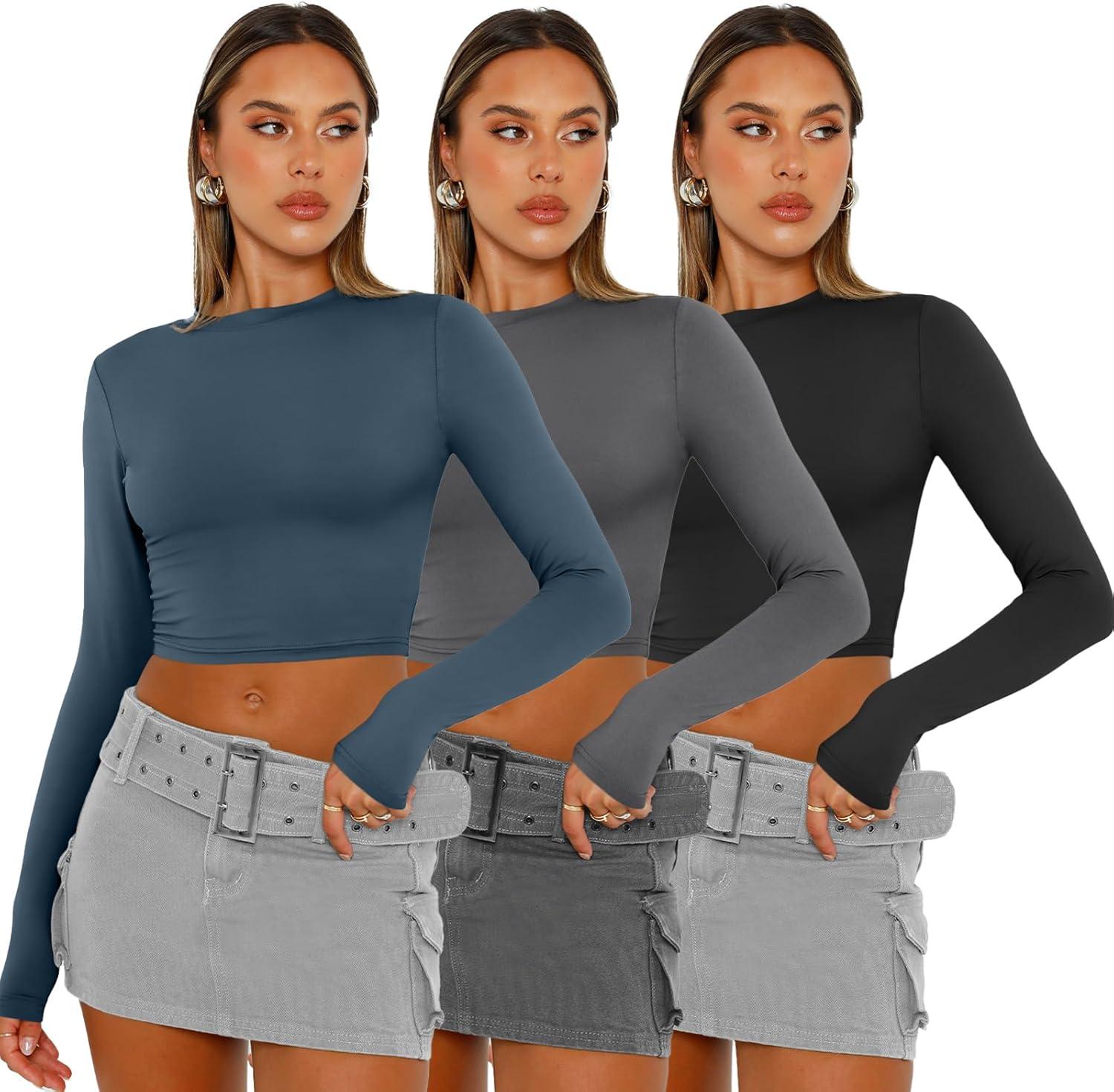 Get the AUTOMET 3 Pack Womens Long Sleeve Shirts Y2K Going Out Crop Tops Cute Basic Slim Fitted Fall Fashion Outfits 2025 Clothes(Bluegreybalck) you want at a discounted price during our markdown sale event.