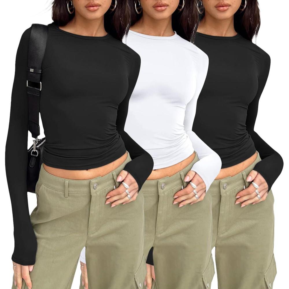 imageAUTOMET 3 Pack Womens Long Sleeve T Shirts Fall Fashion Basic Going Out Crop Tops Slim Fitted Winter Clothes 2025Black black white