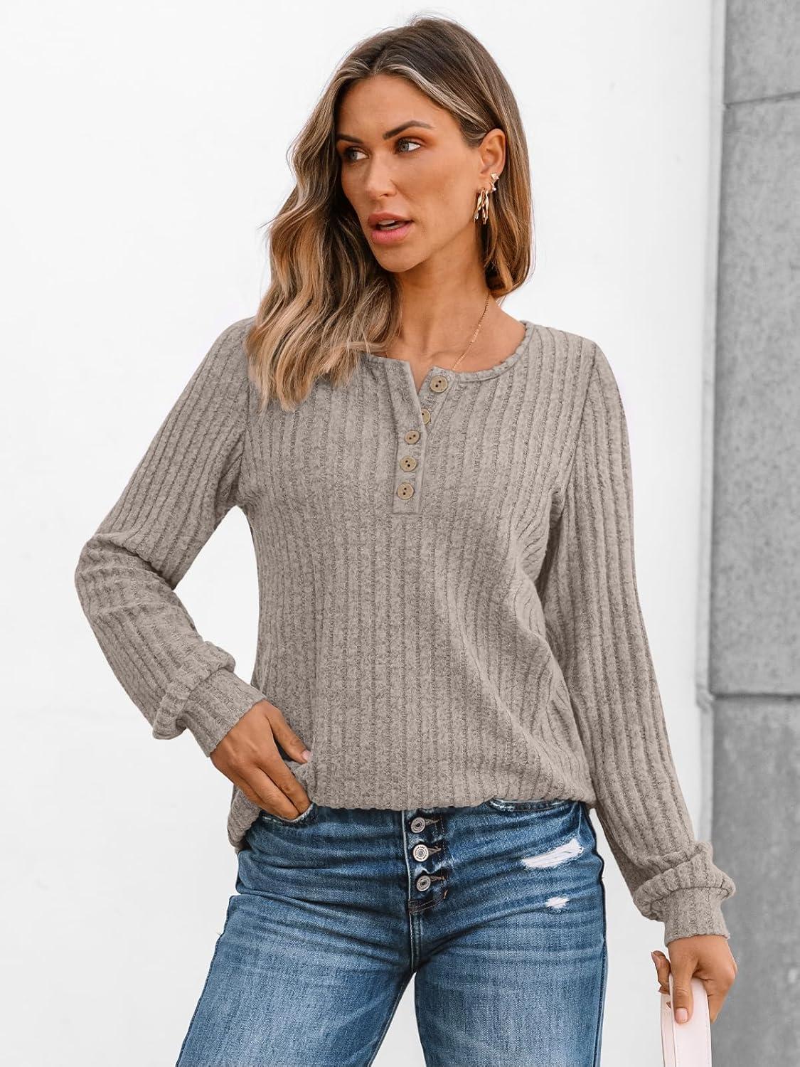 imageAUTOMET Long Sleeve Henley Shirts Womens Business Casual Lightweight Tunic Sweater TopsTan
