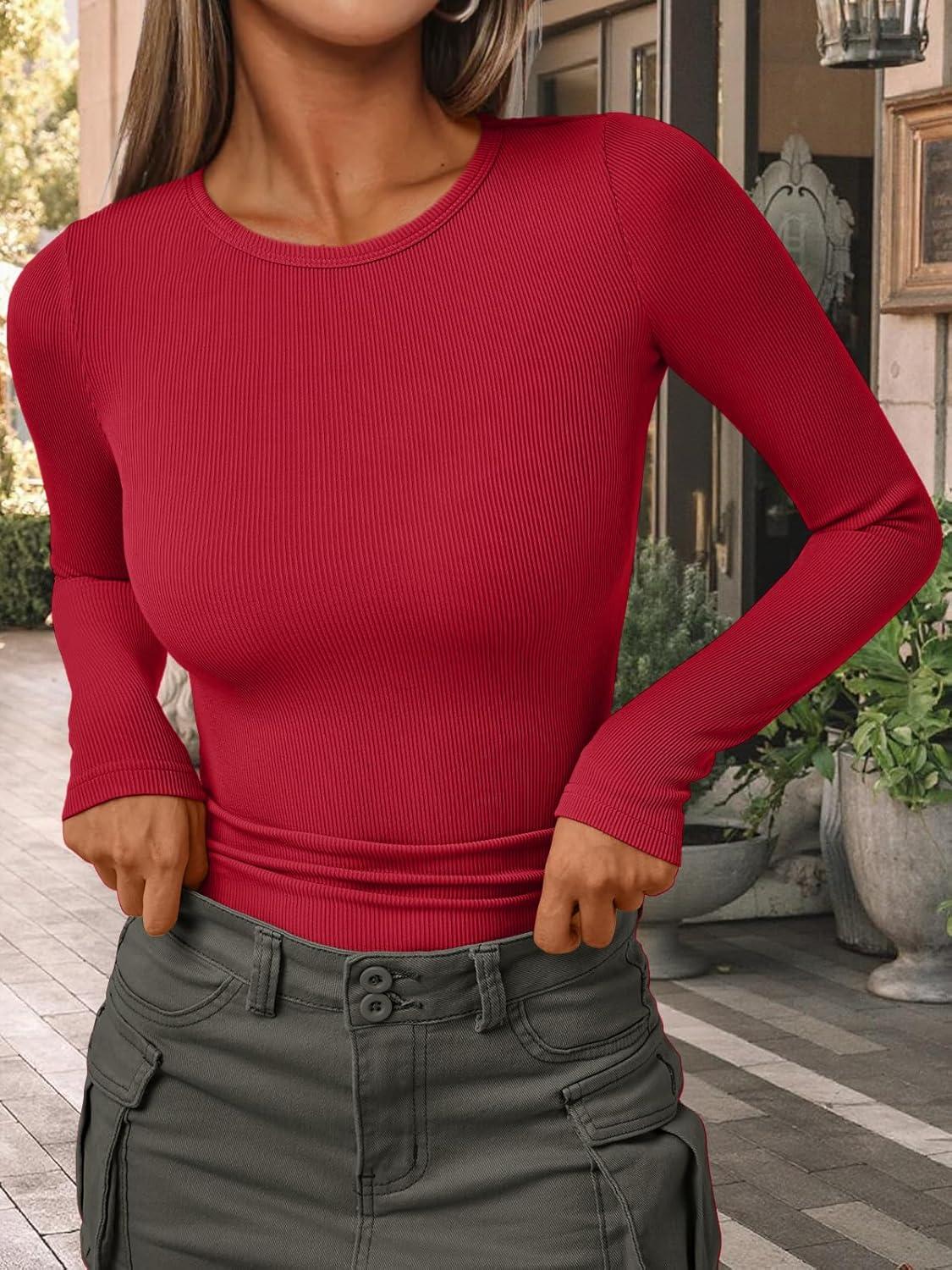 AUTOMET Long Sleeve Shirts Basic Tops(Red)