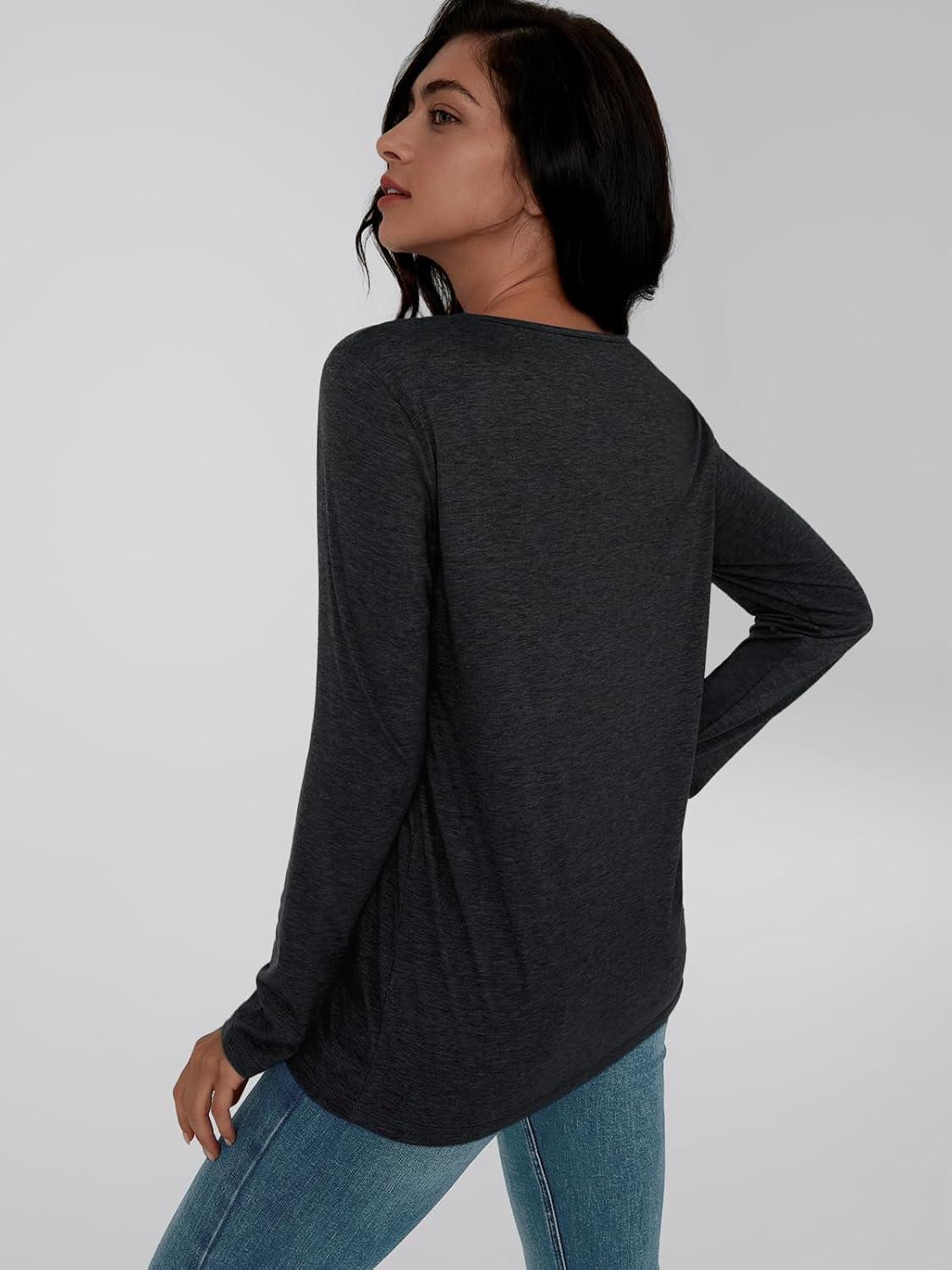 AUTOMET Women’s Long Sleeve Shirts 2025 Fall Fashion Dressy Casual Tops Trendy Henley Blouses Cute Work Outfits Clothes(Chocolate Brown)