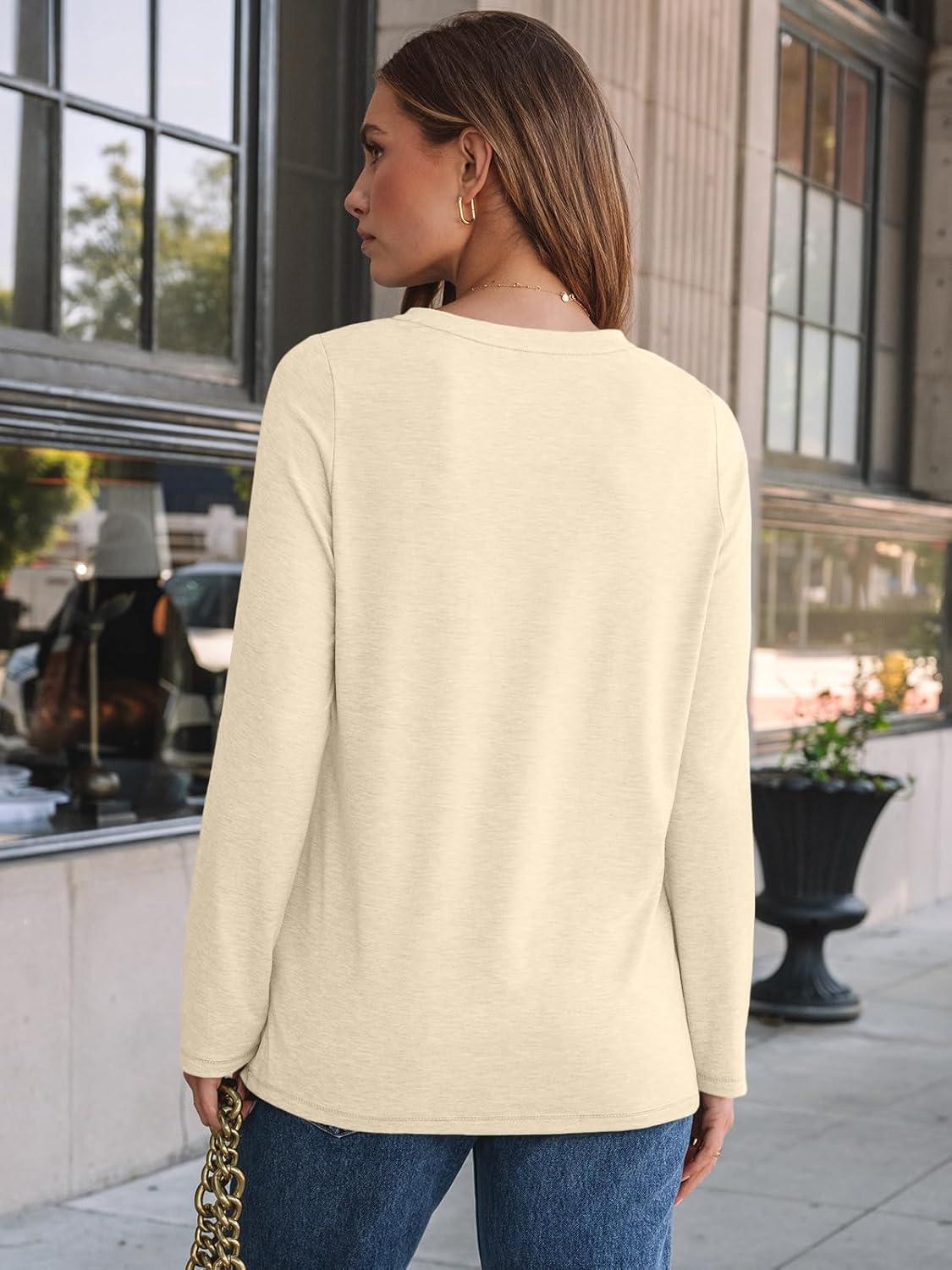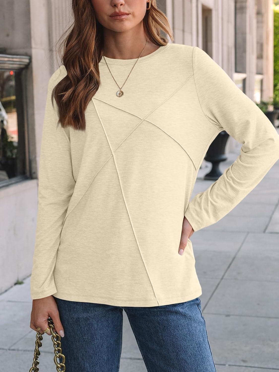 AUTOMET Womens Long Sleeve T-Shirts Dressy Business Casual Tops Tunic Fall Fashion Crewneck Blouse Trendy Winter Outfits 2025(Maple)