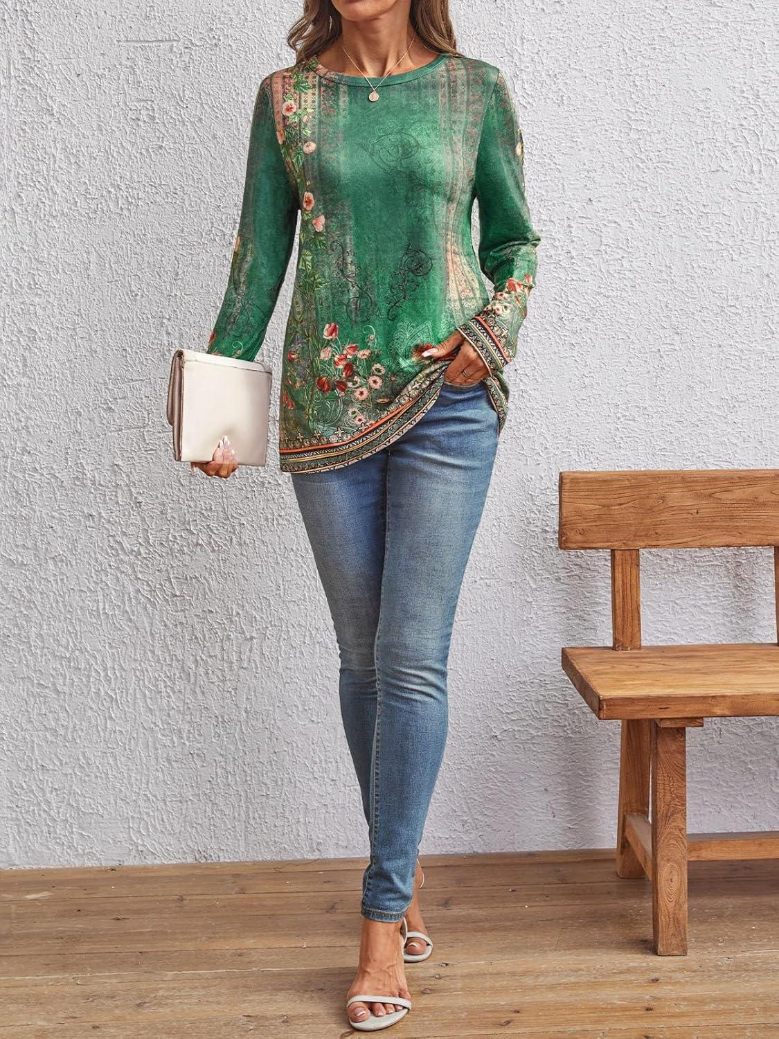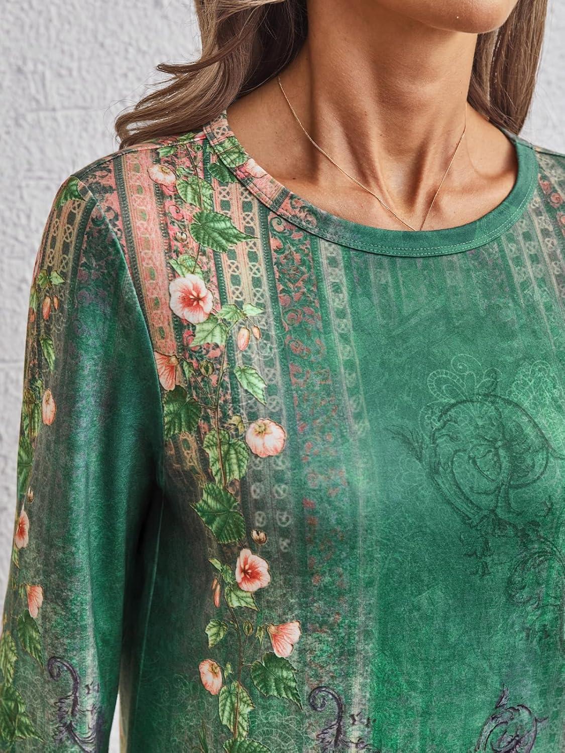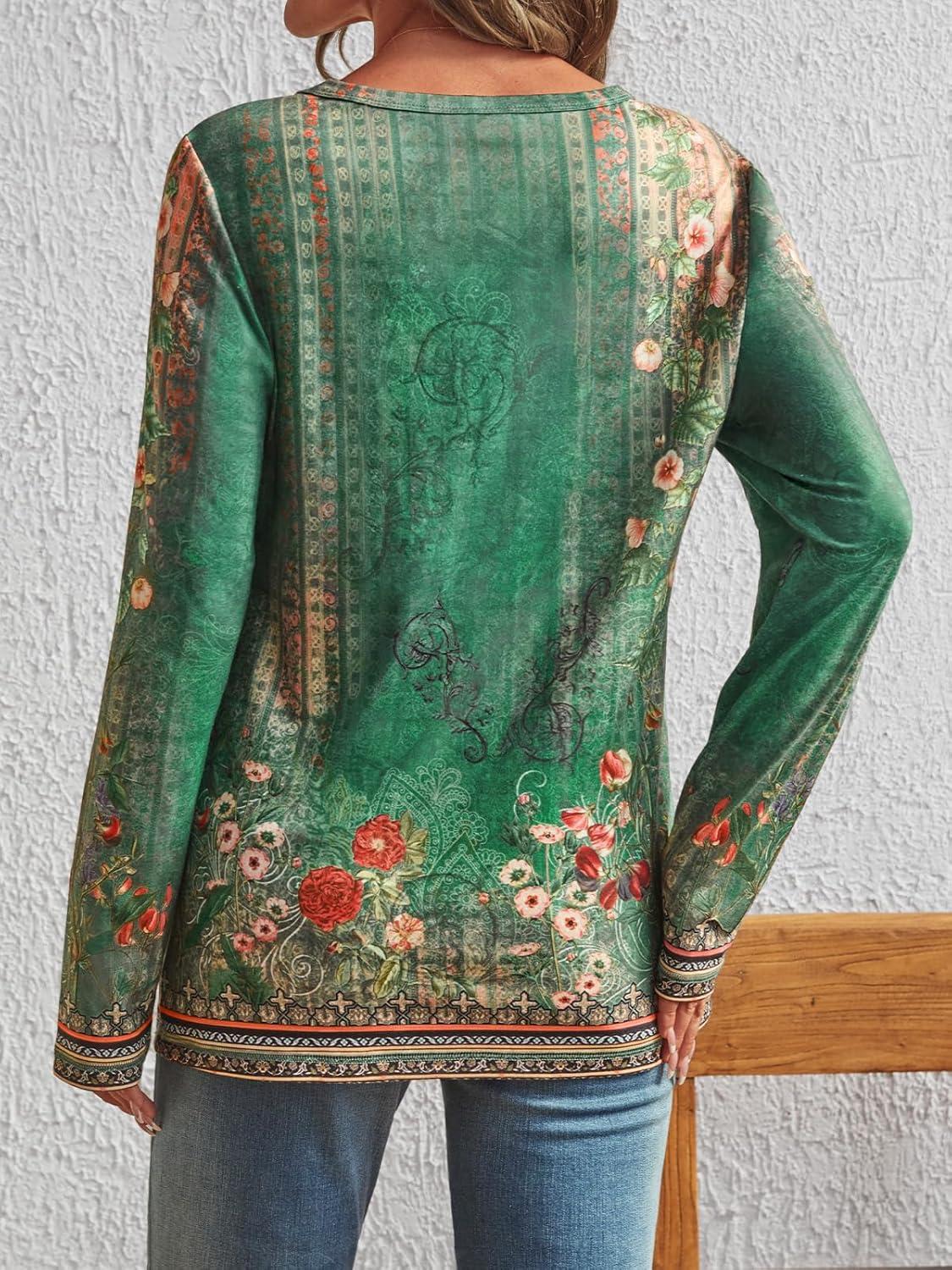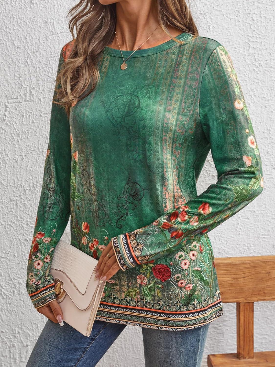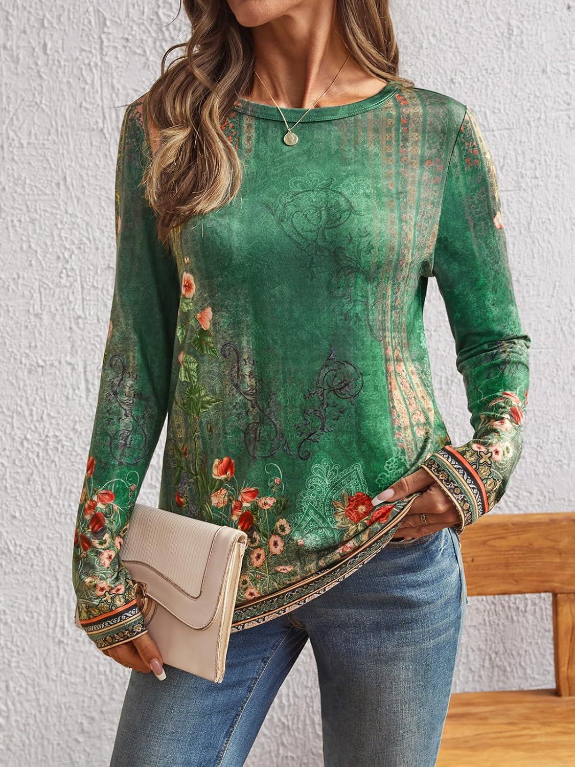 AUTOMET Long Sleeve Shirts for Women Business Casual Tops Fall Fashion Clothes Workout Plus Size Teacher Winter Outfits 2025(Floralgreen)