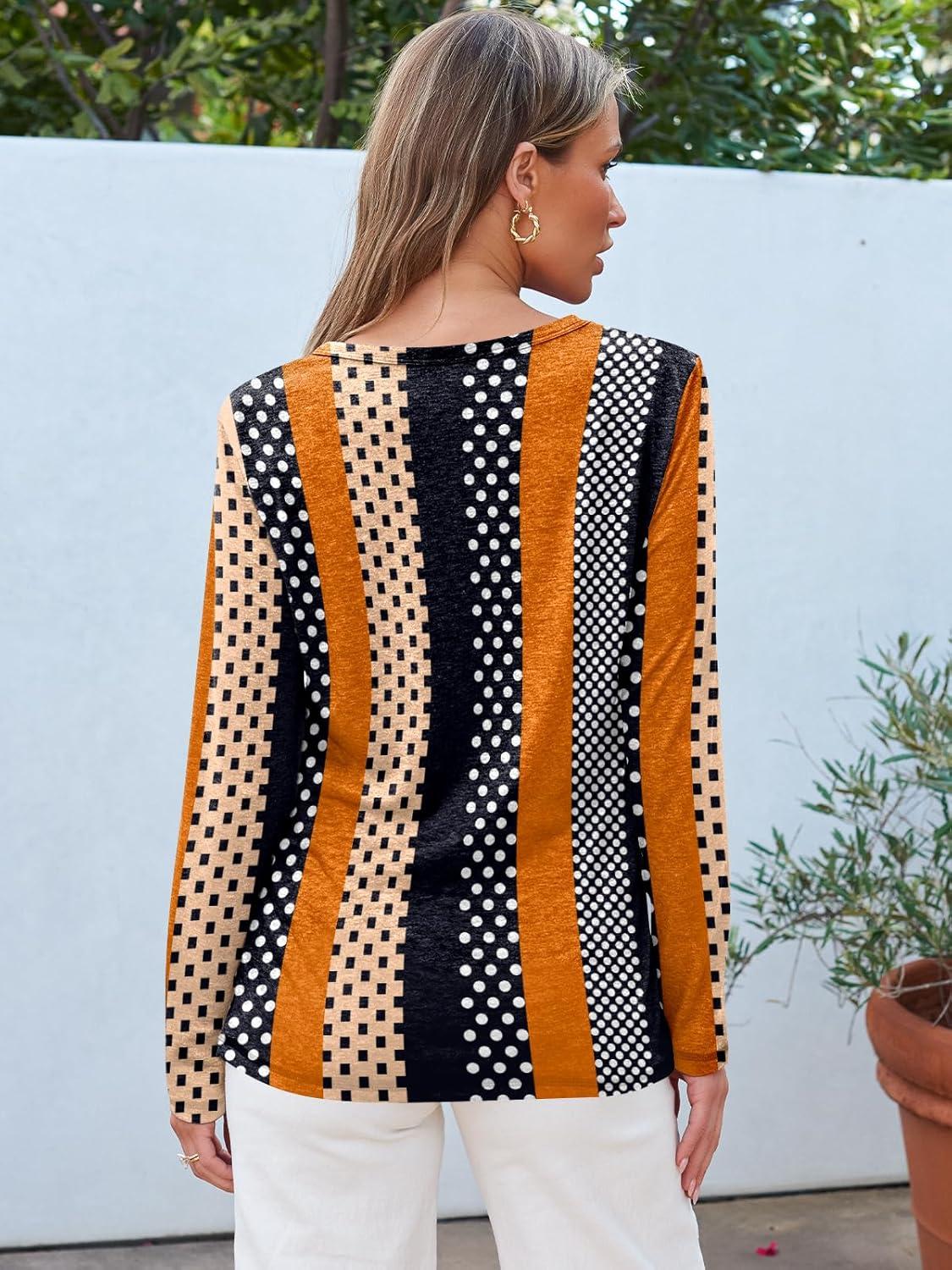 AUTOMET Long Sleeve Shirts for Women Business Casual Tops Fall Fashion Clothes Workout Plus Size Teacher Winter Outfits 2025(Stripeddots)