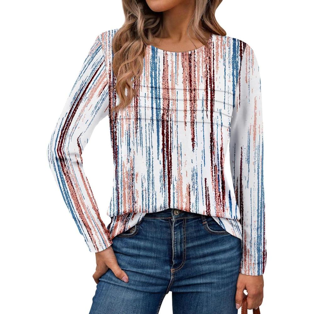 AUTOMET Long Sleeve Shirts for Women Pleated Dressy Casual Business Blouses Trendy Fashion Tunic Basic Tops(Gradient Multi)