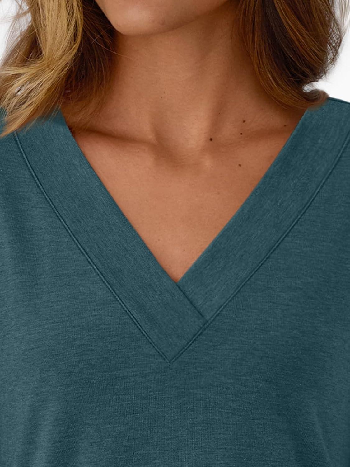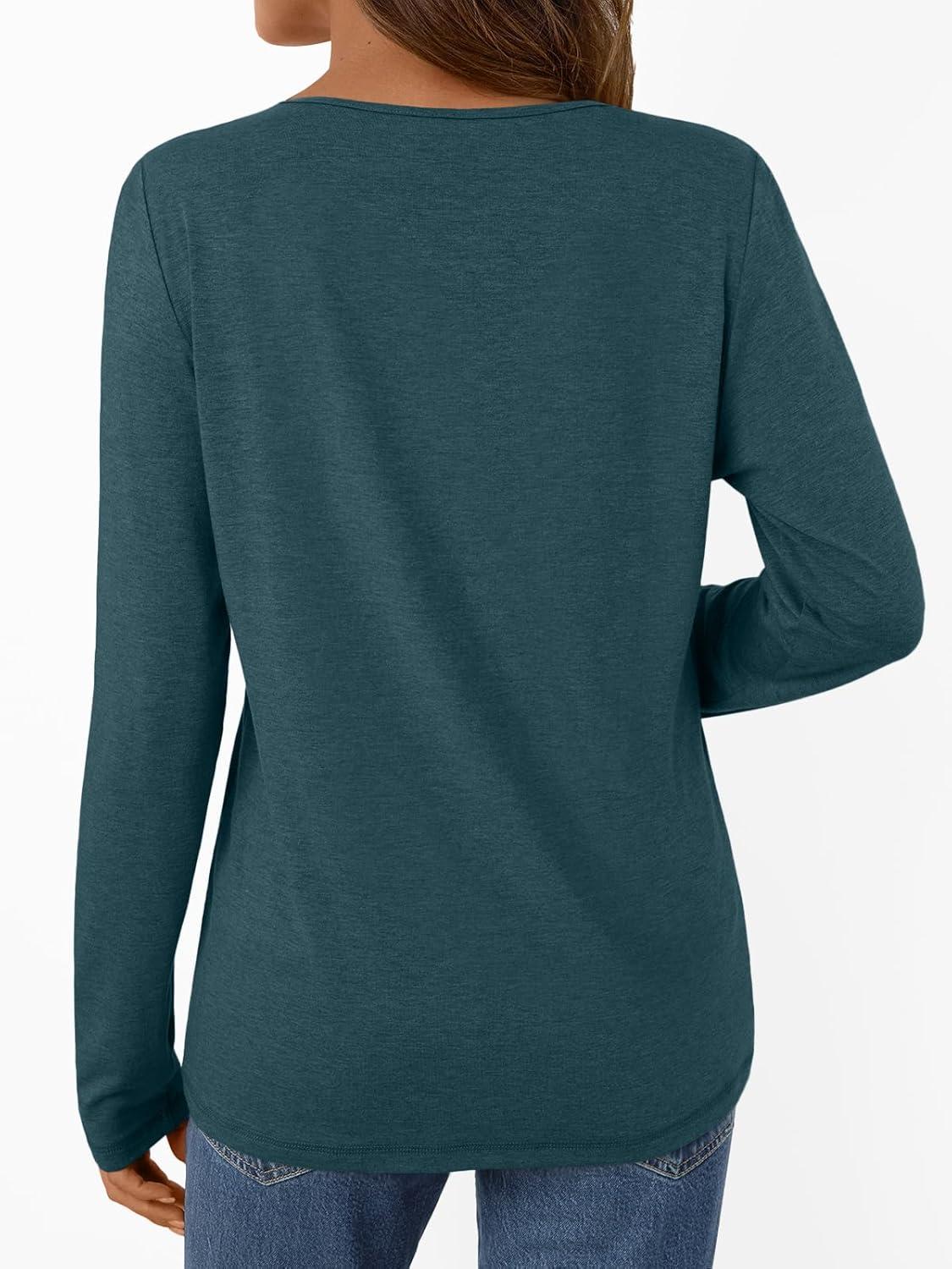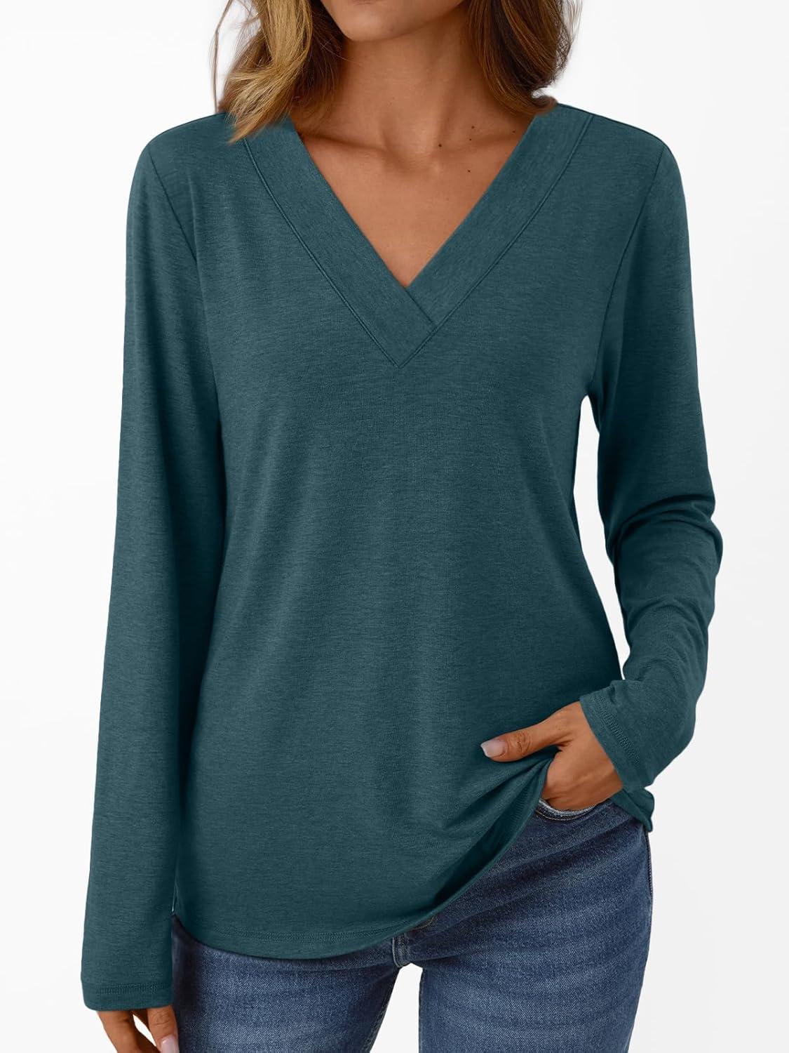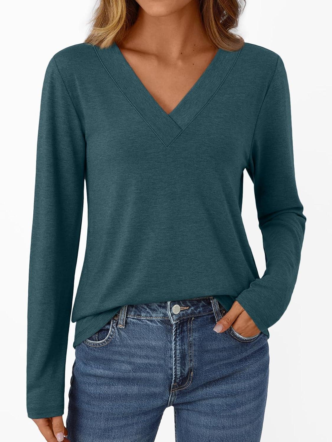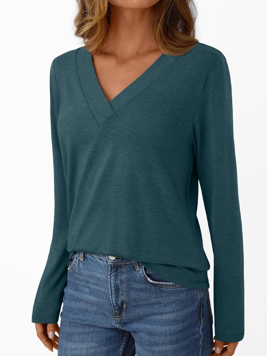 AUTOMET Long Sleeve Shirts for Women Tops V Neck Casual Top Comfortable Shirt Soft Basic Tees Women Blouses(Deepgreen)