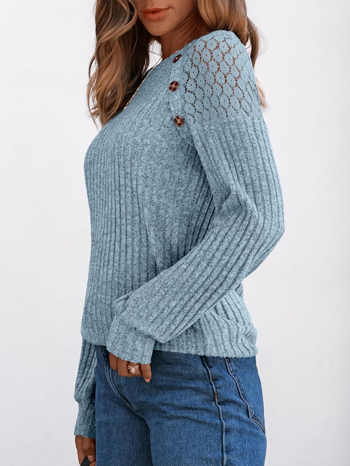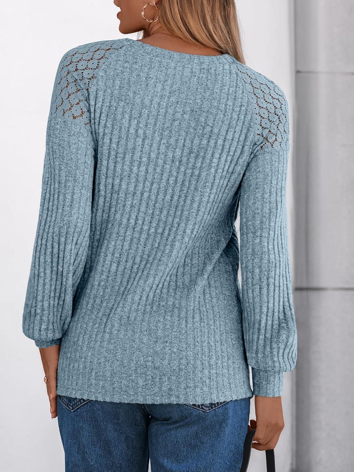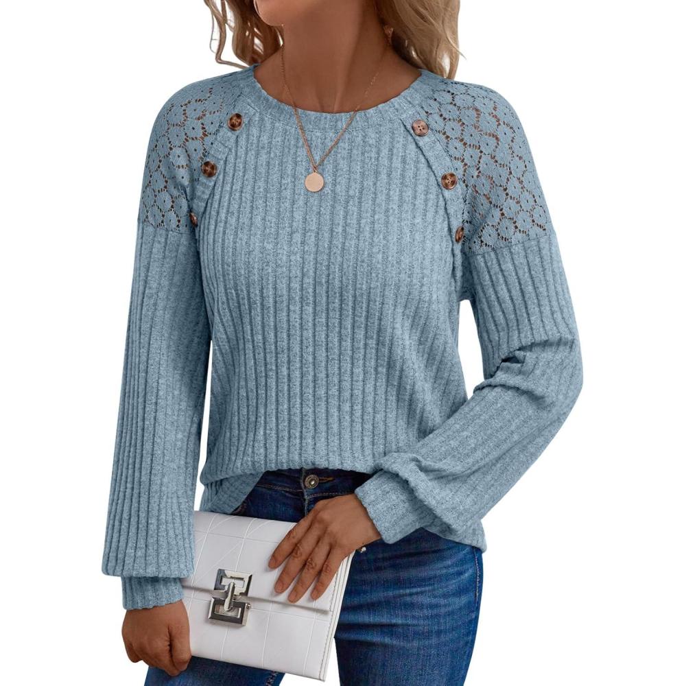 imageAUTOMET Long Sleeve Shirts Womens Lace Lightweight Sweaters Fall Business Dressy Casual TopsLightblue