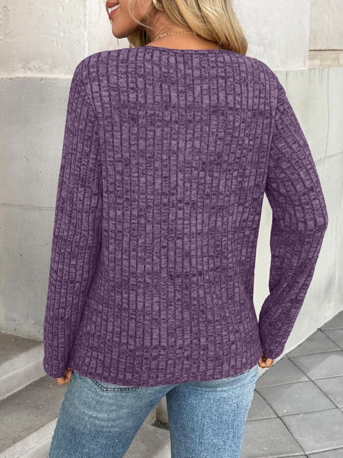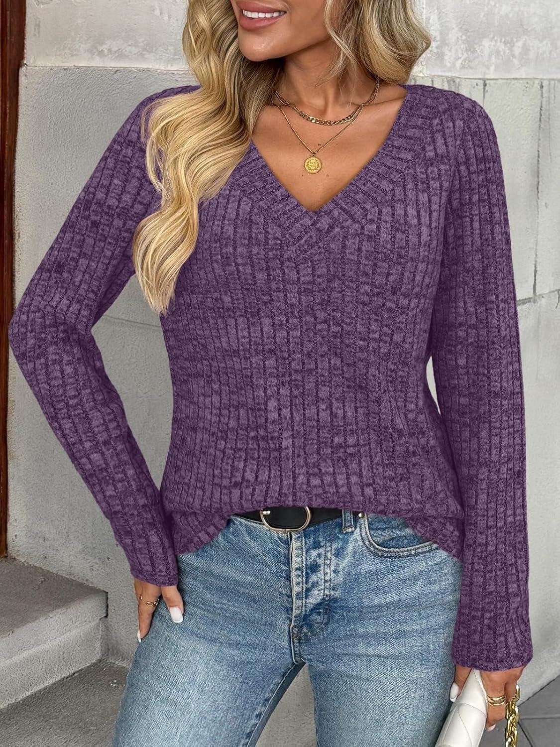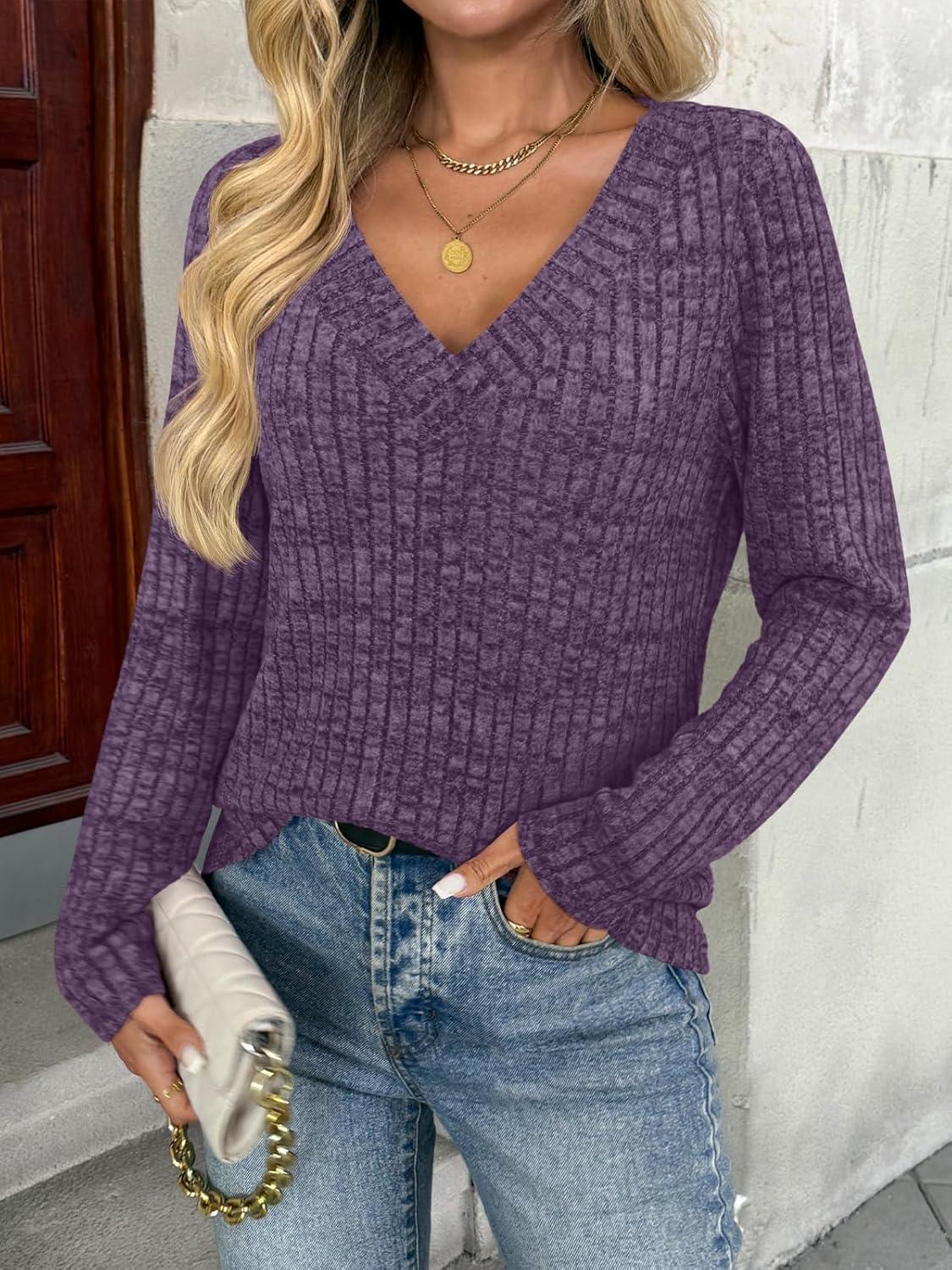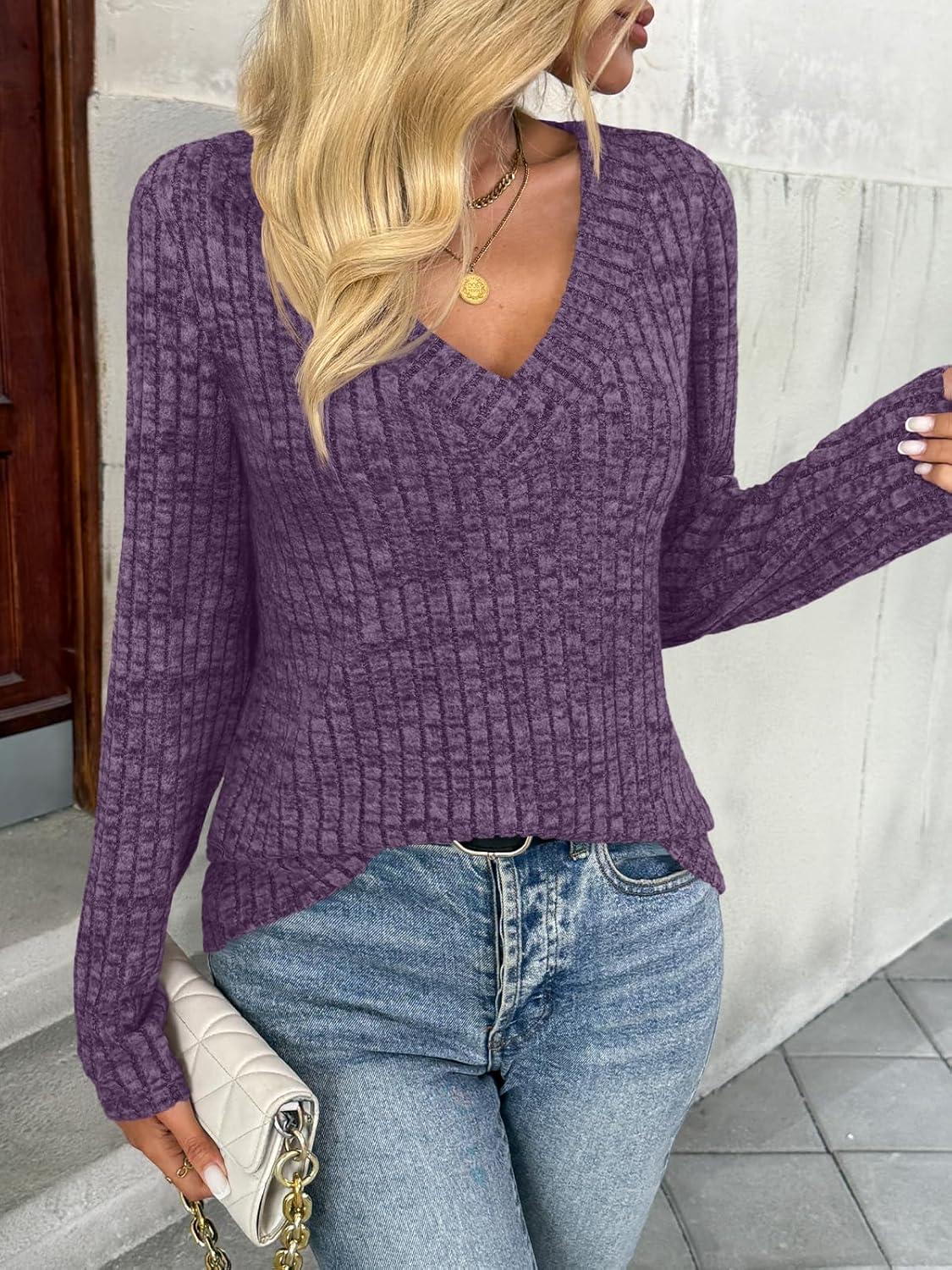 AUTOMET Long Sleeve Shirts Womens Tops Fall Fashion Business Casual Outfits 2025 V Neck T Shirts Sweaters Trendy(Purple)