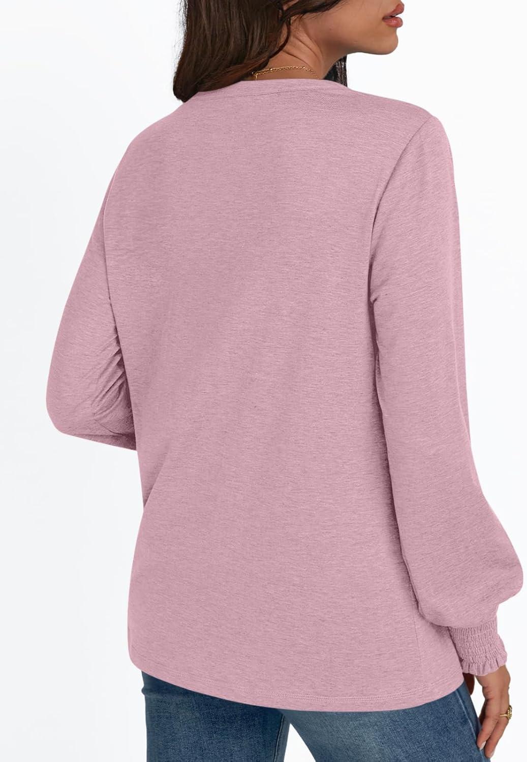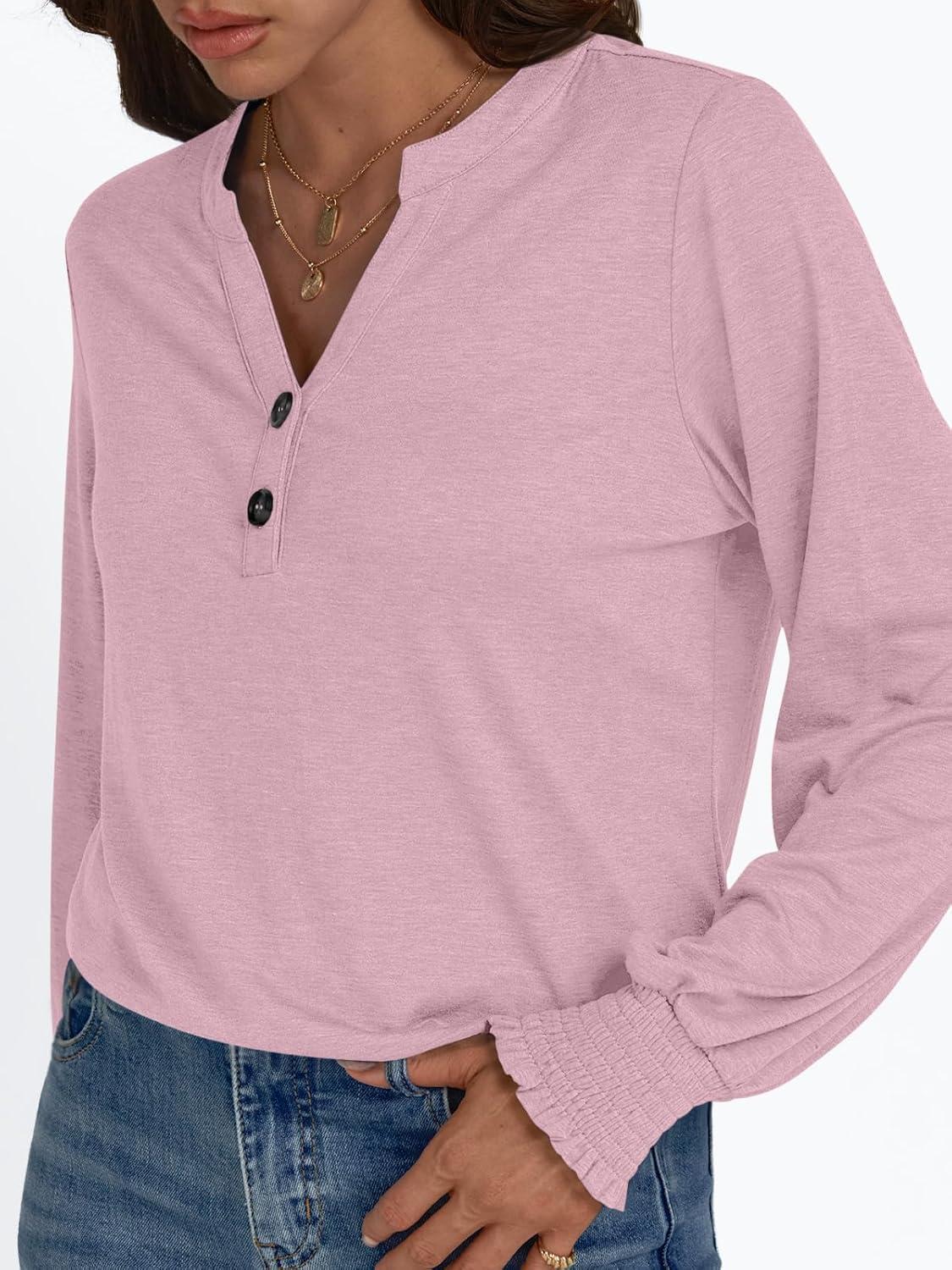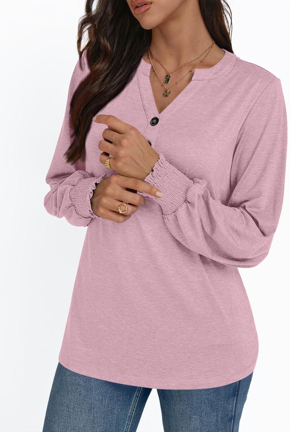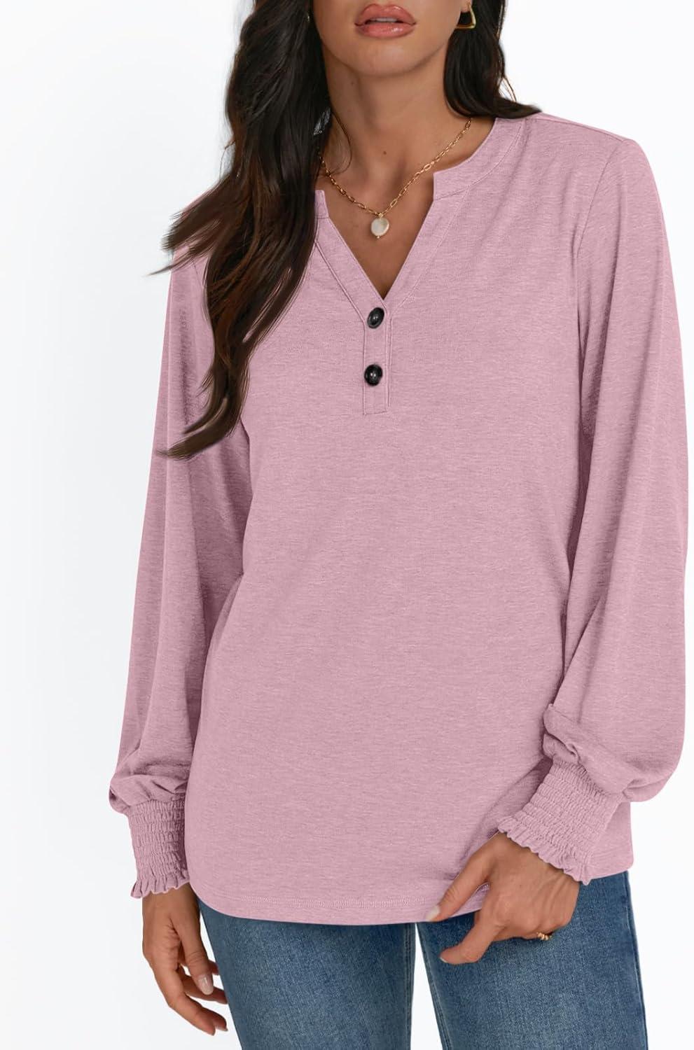 AUTOMET Long Sleeve Shirts Womens Tops Henley Dressy Casual Blouses Fall Outfits 2025 Trendy Loose Fit Comfy Winter Clothes(Pink)
