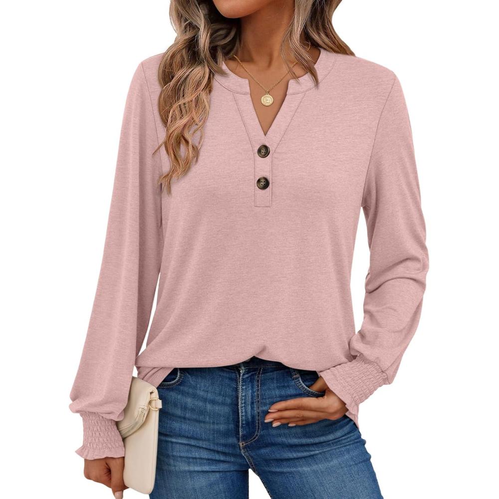 imageAUTOMET Long Sleeve Shirts Womens Tops Henley Dressy Casual Blouses Fall Outfits 2025 Trendy Loose Fit Comfy Winter ClothesPink