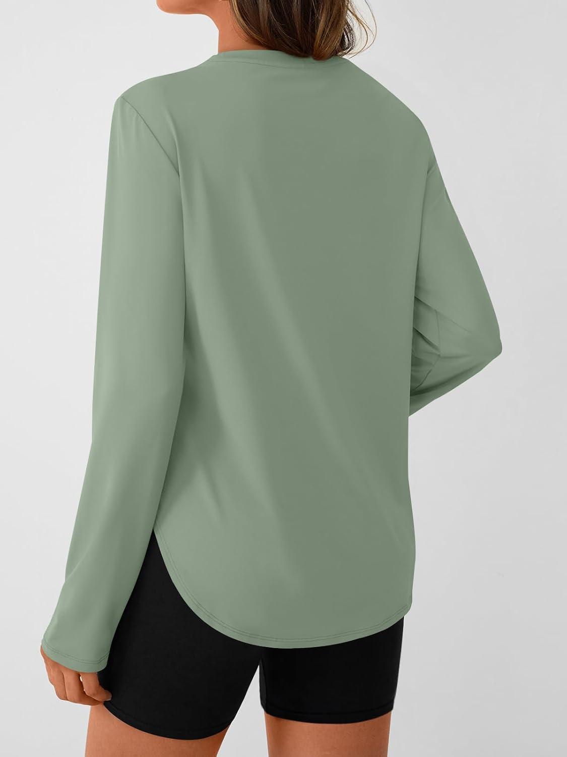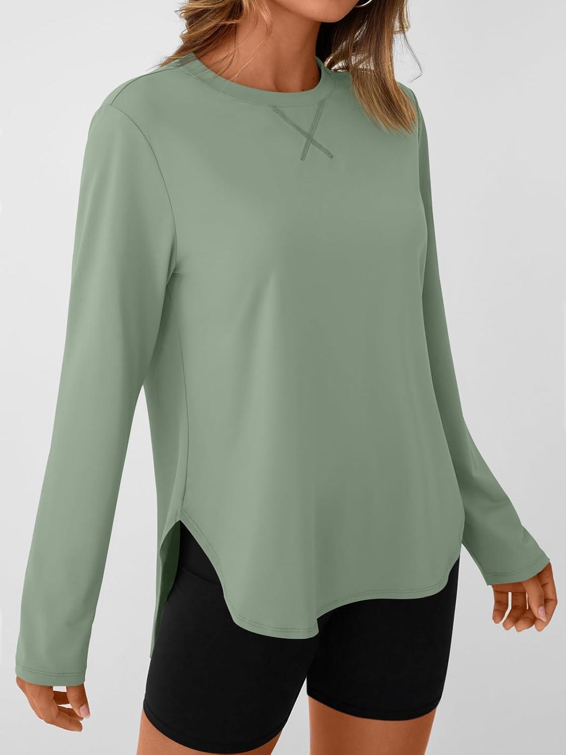 AUTOMET Long Sleeve Workout Tops for Women Athletic UPF 50+ Sun Rash Guard Shirts Running SPF Gym Quick Dry Clothes(Green)