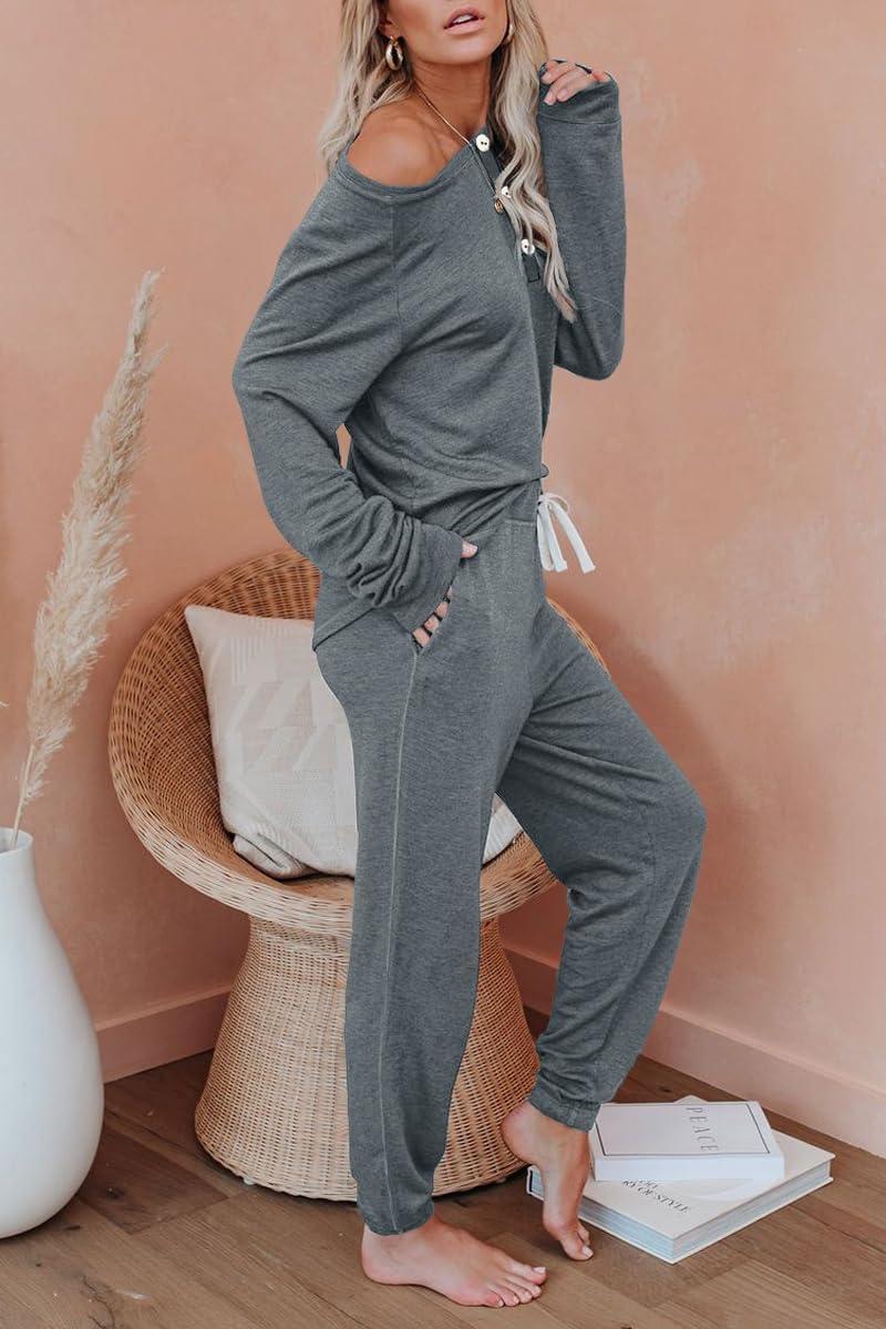 AUTOMET Lounge Sets for Women Comfy 2 Piece Pajamas Sets Fall Loungewear Pjs Outfits Sweatsuits with Sweatpants 2025(Dark Grey)