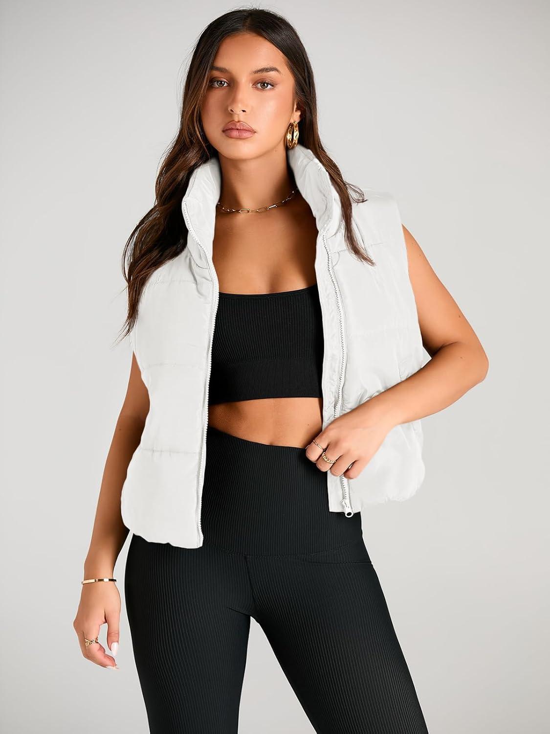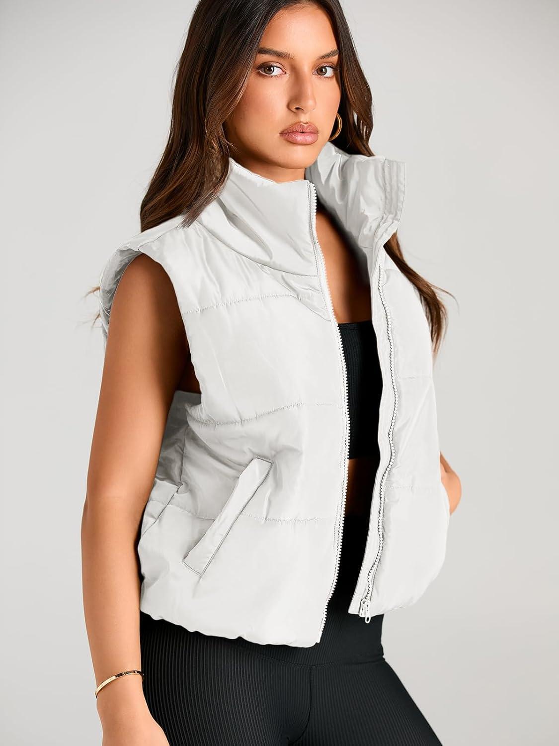 Don’t wait, get up to 50% off on AUTOMET Puffer Vest Women Sleeveless Winter Cropped Outerwear Warm Puffy Lightweight Stand-up Collar Down with Pockets(White) during our end-of-season sale event.