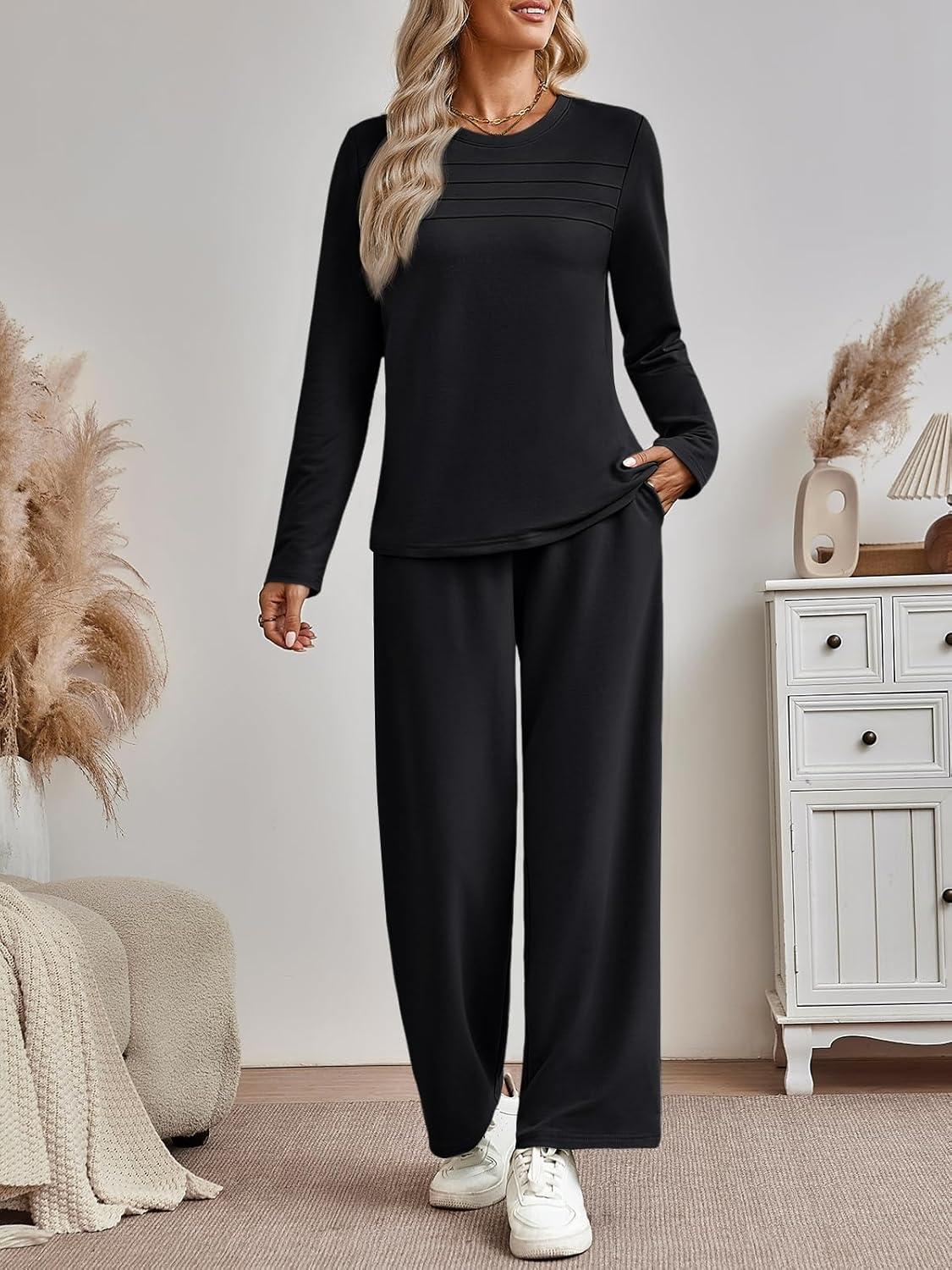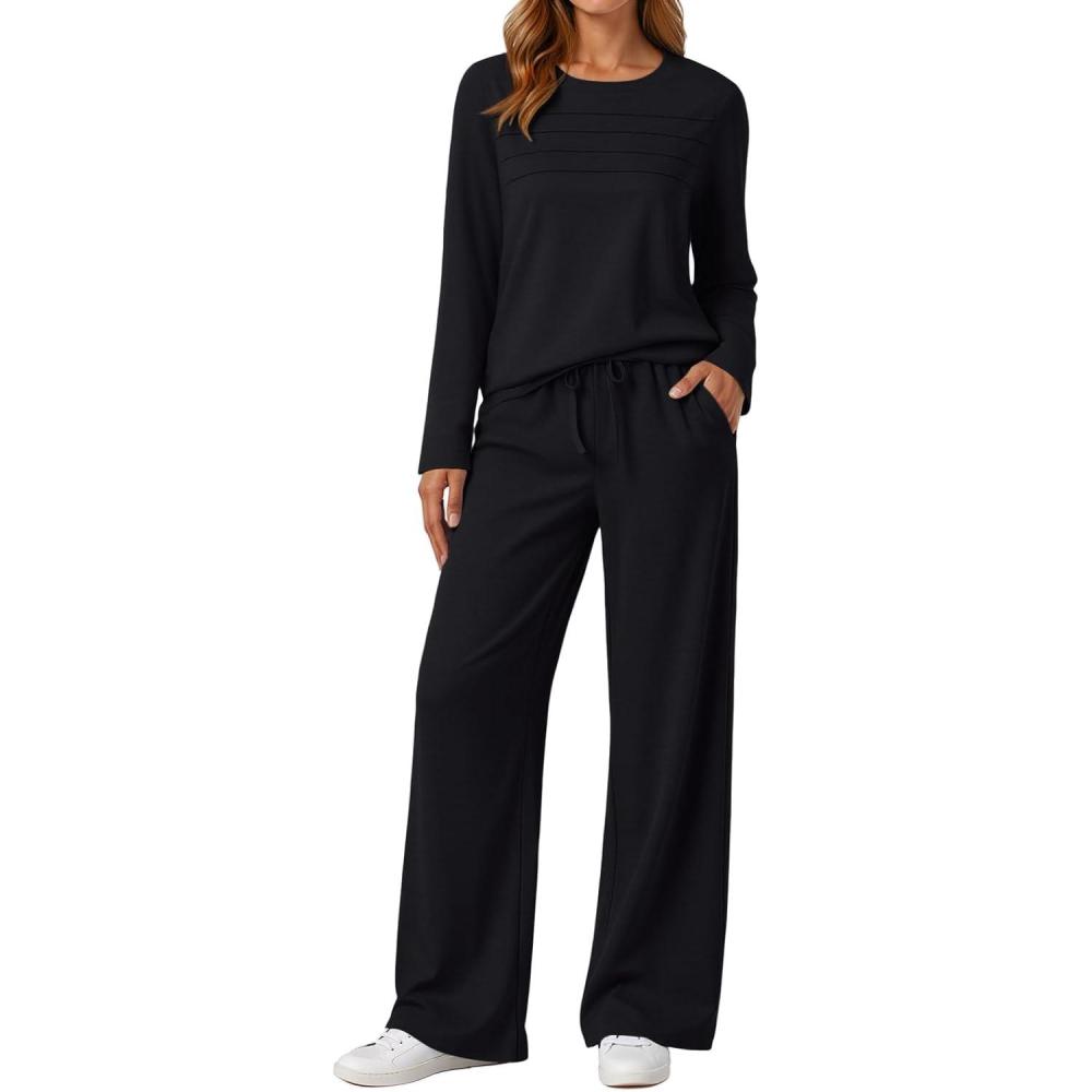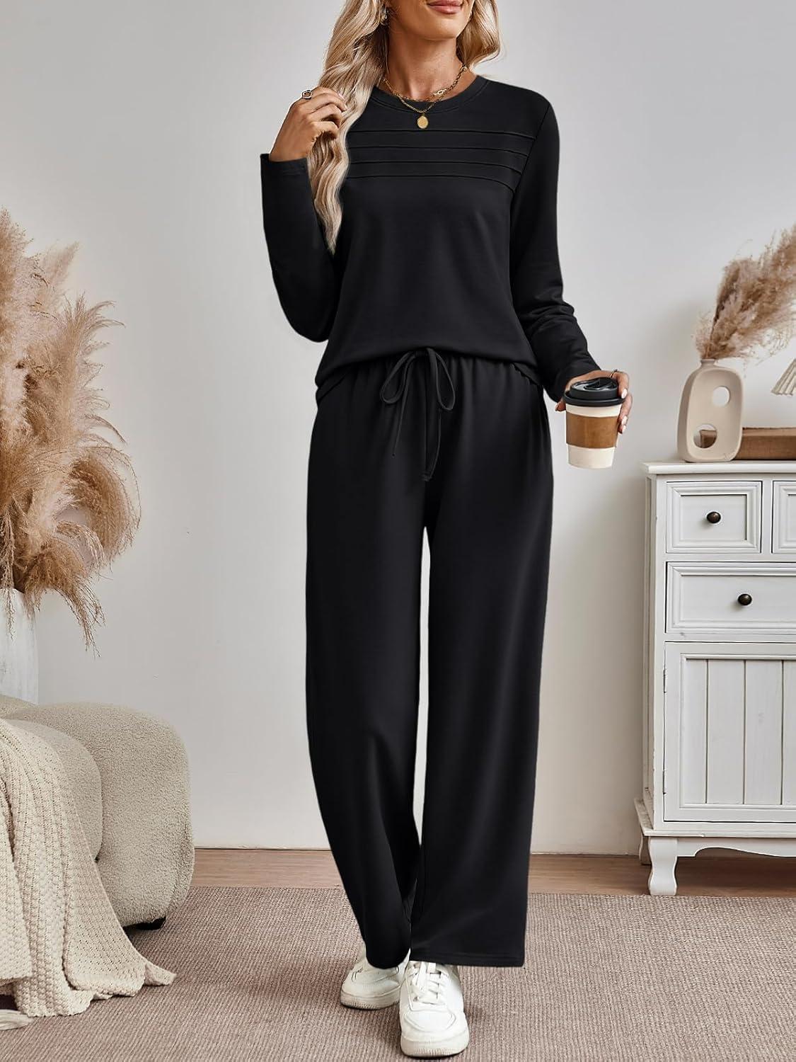 AUTOMET Sweatsuits Women 2 Piece Outfit Fall Airport Lounge Sweat Sets With Wide Leg Pants Track Fashion Suits 2025(Black)