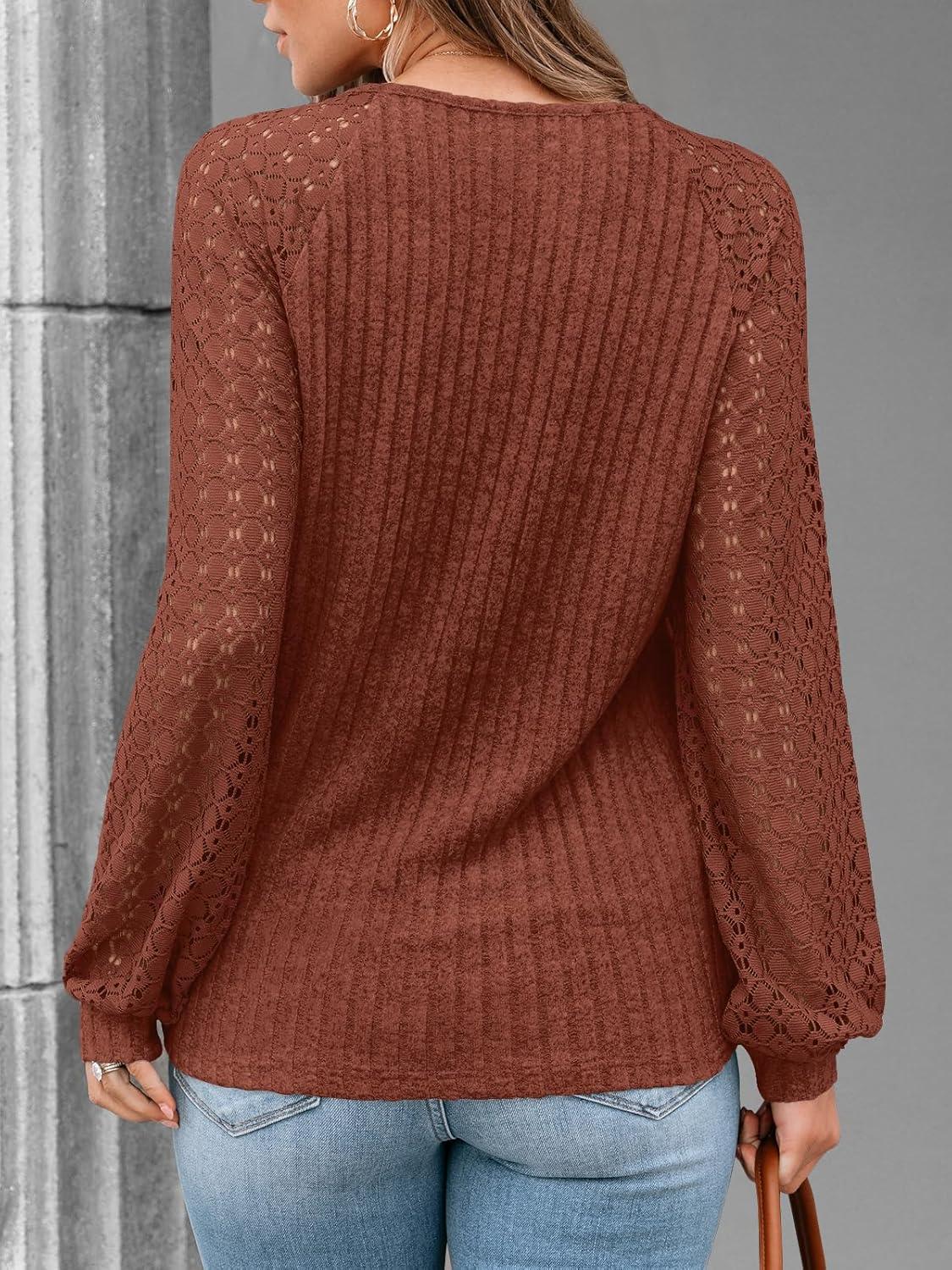 imageAUTOMET Women Long Sleeve Shirts Fall Lace Tops 2025 Fashion V Neck Sweaters Dressy Casual Winter Tunic Blouse Trendy OutfitRust