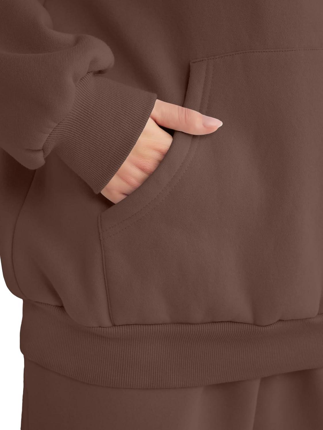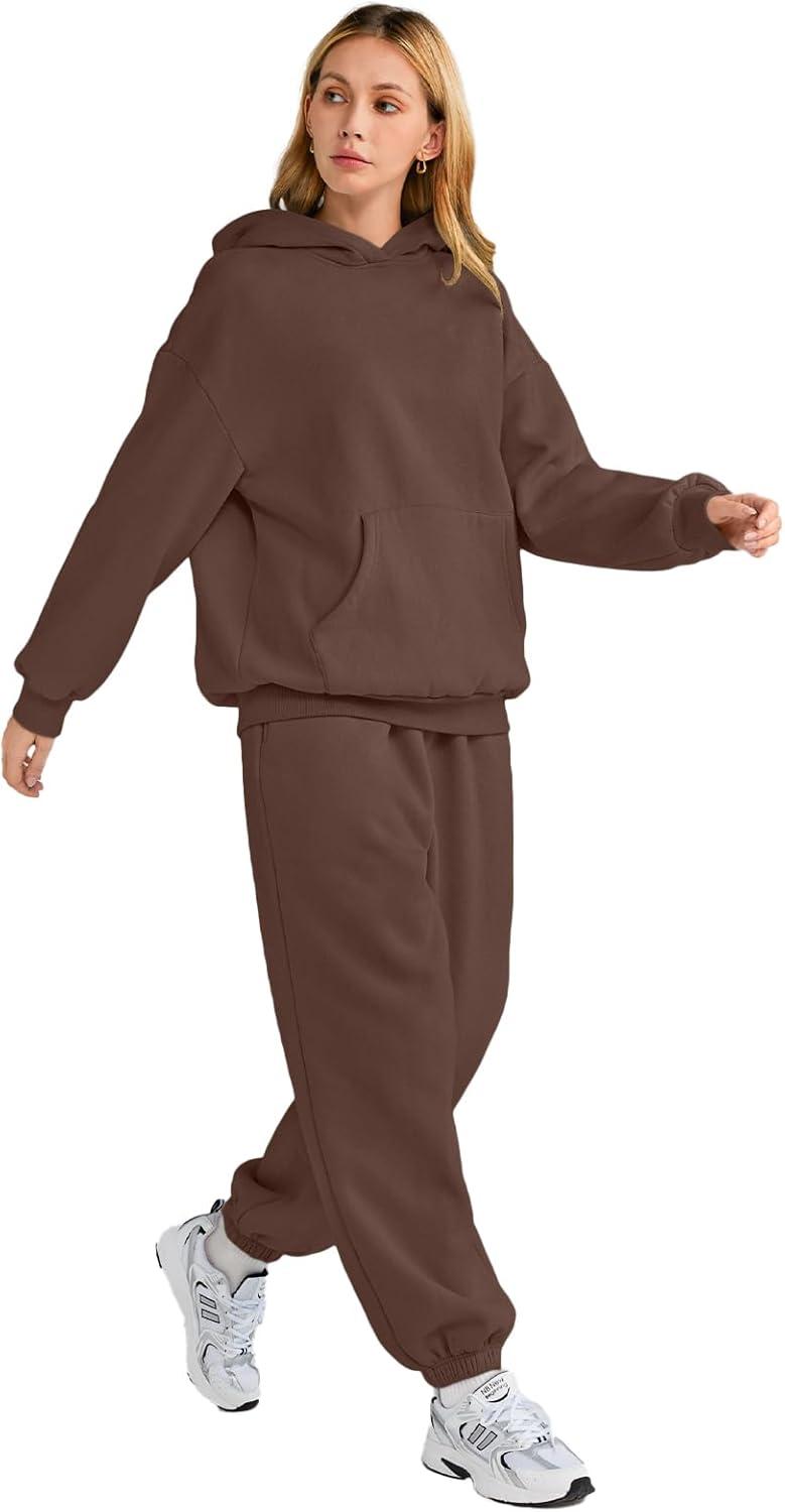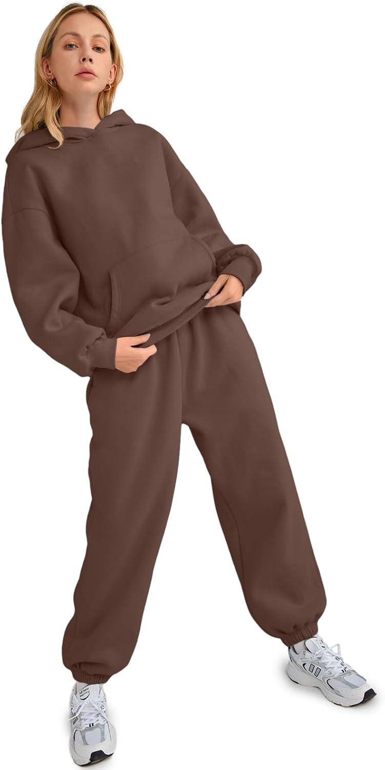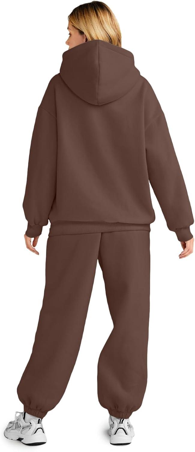 AUTOMET Womens 2 Piece Outfits Lounge Hoodie Sweatsuit Sets Plus Size Fall Fashion Clothes Airport Travel Pants Tracksuits(Chocolate)