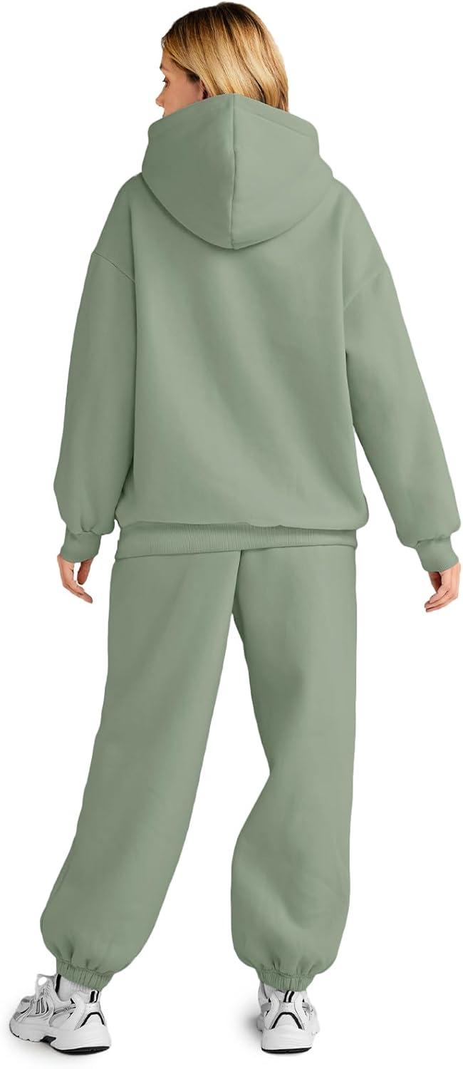 AUTOMET Womens 2 Piece Outfits Lounge Hoodie Sweatsuit Sets Plus Size Fall Fashion Clothes Airport Travel Pants Tracksuits(Green)