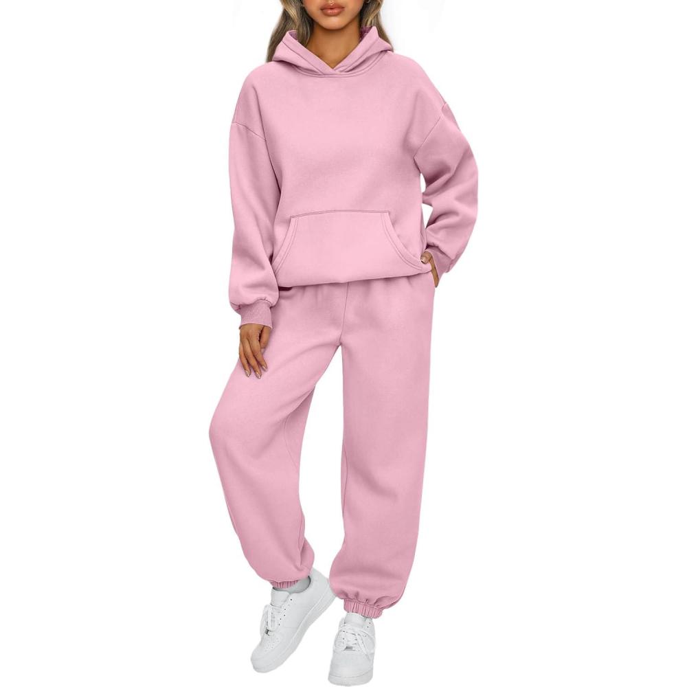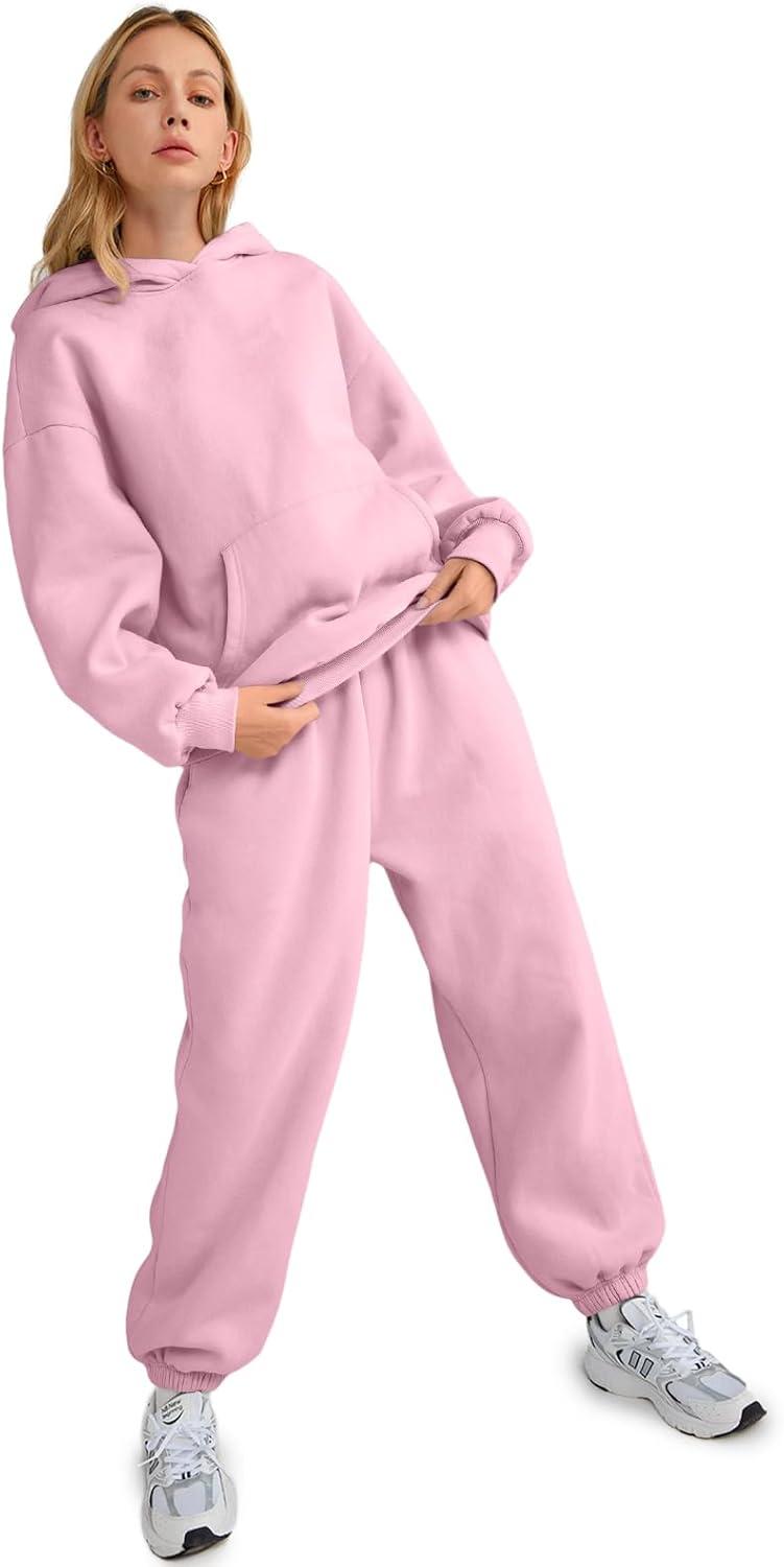 AUTOMET Womens 2 Piece Outfits Lounge Hoodie Sweatsuit Sets Plus Size Fall Fashion Clothes Airport Travel Pants Tracksuits(Palepink)