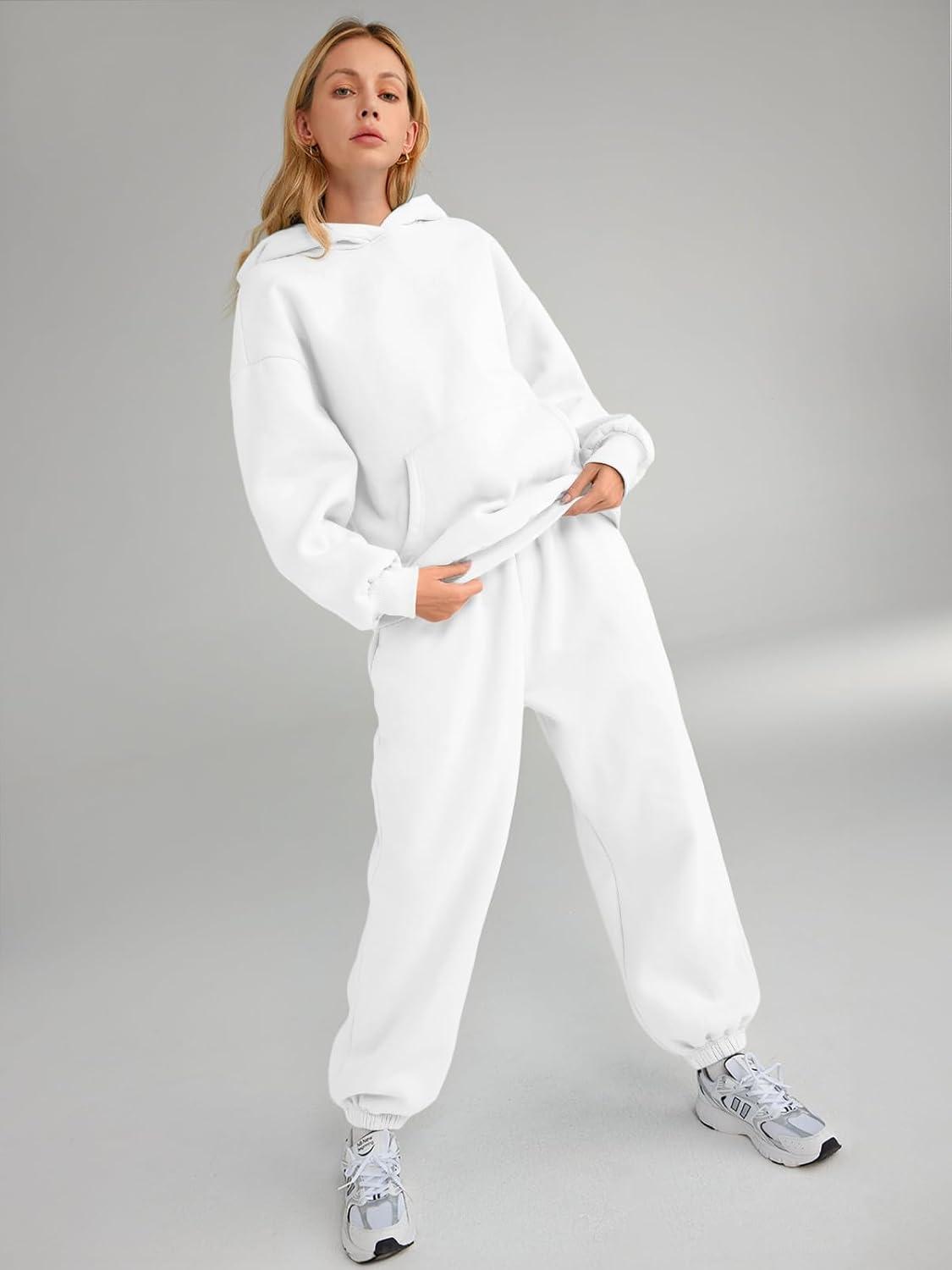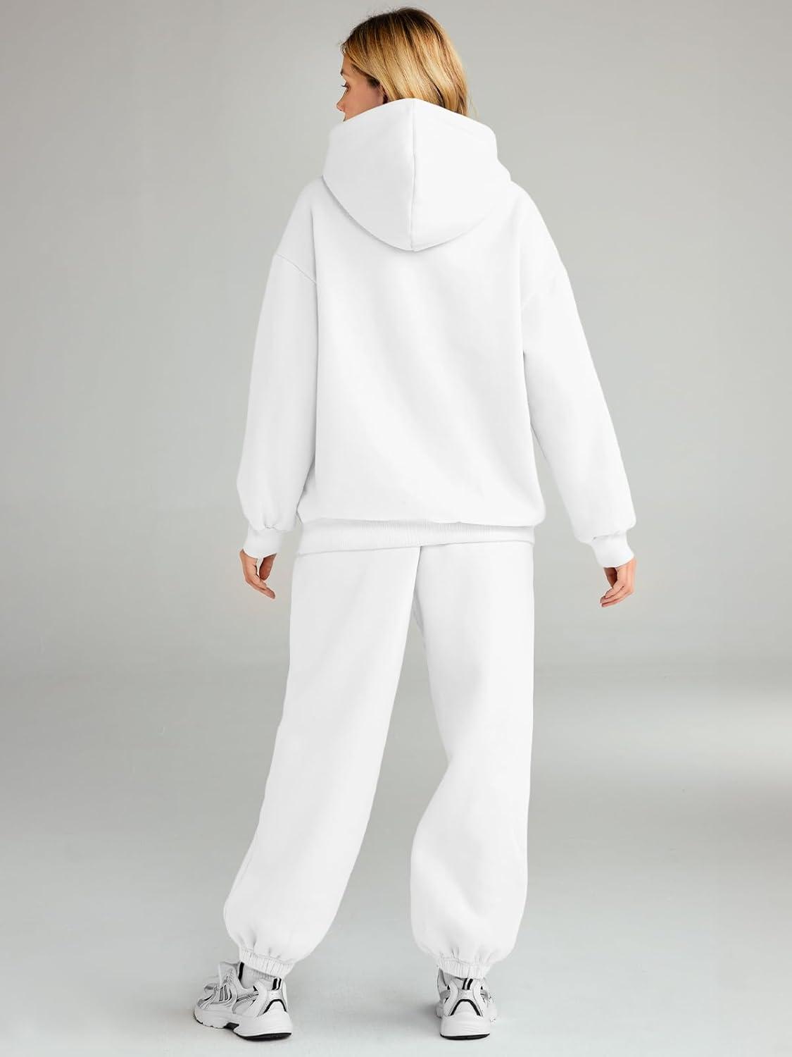 AUTOMET Womens 2 Piece Outfits Lounge Hoodie Sweatsuit Sets Plus Size Fall Fashion Clothes Airport Travel Pants Tracksuits(White)