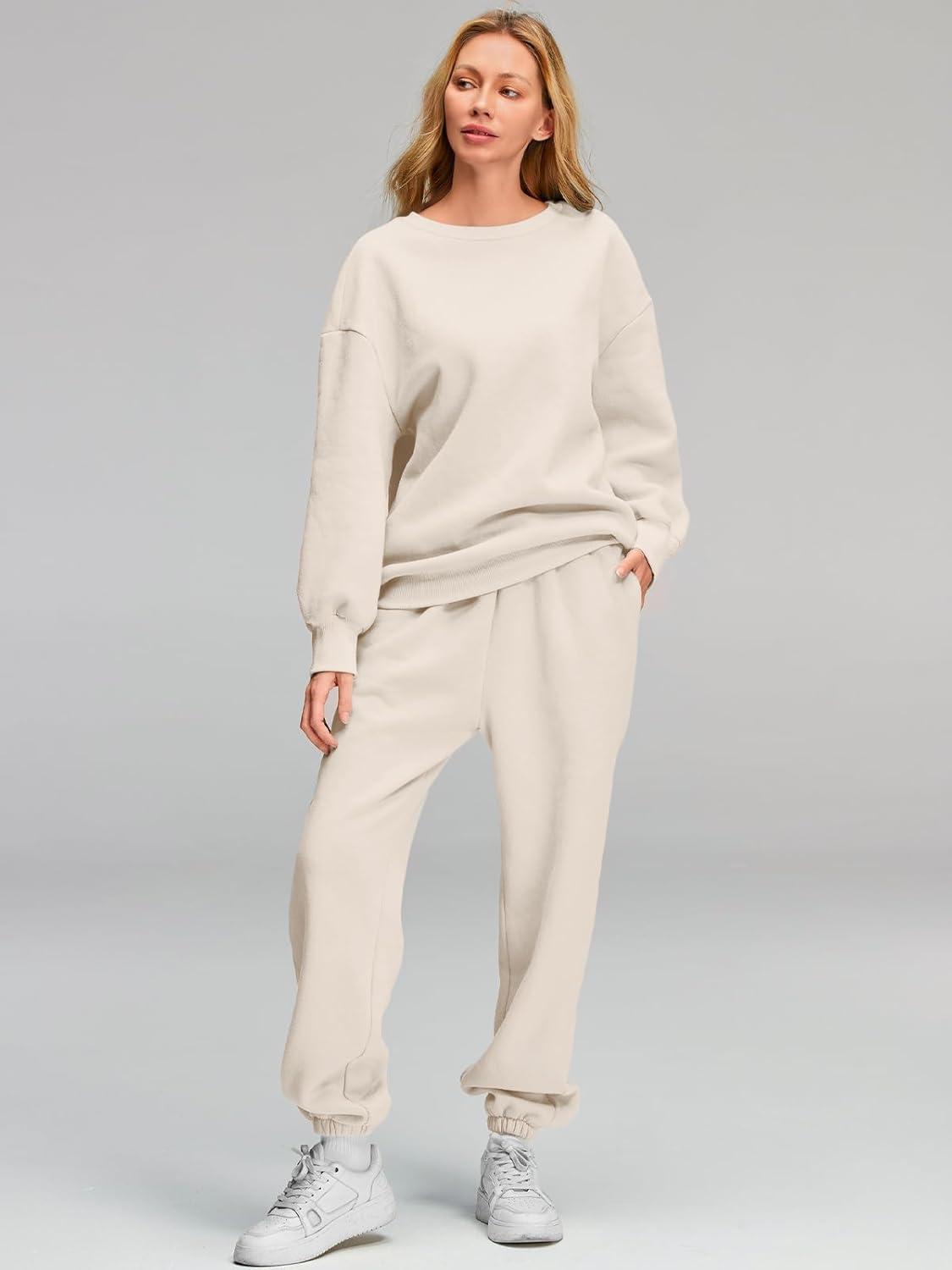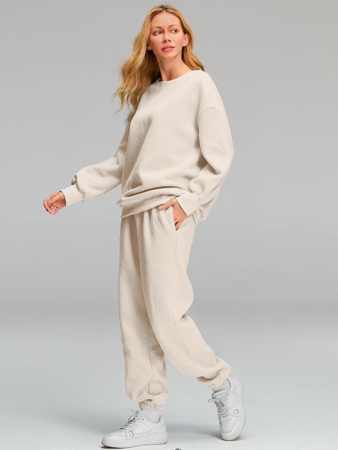 AUTOMET Womens 2 Piece Outfits Sweatsuit Oversized Sweatshirt Lounge Sets Baggy Sweatpants Fall Fashion with Pockets(Apricot)