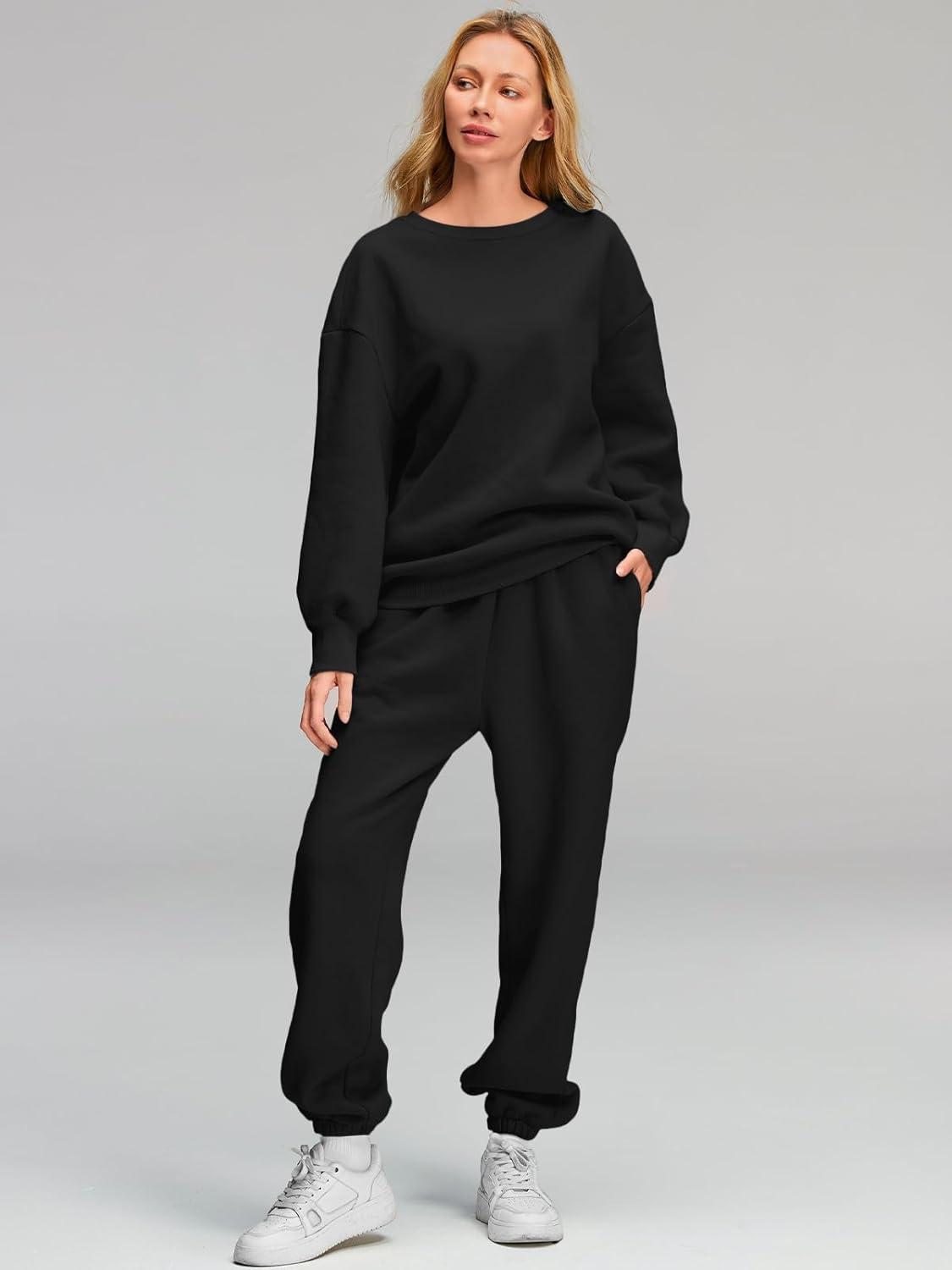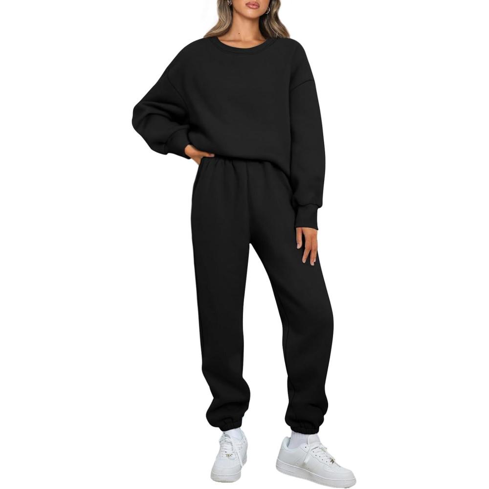 AUTOMET Womens 2 Piece Outfits Sweatsuit Oversized Sweatshirt Lounge Sets Baggy Sweatpants Fall Fashion with Pockets(Black)