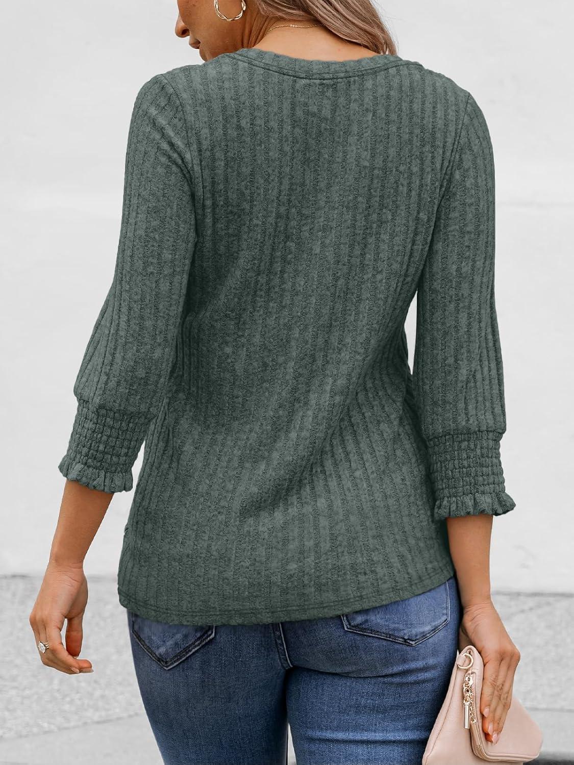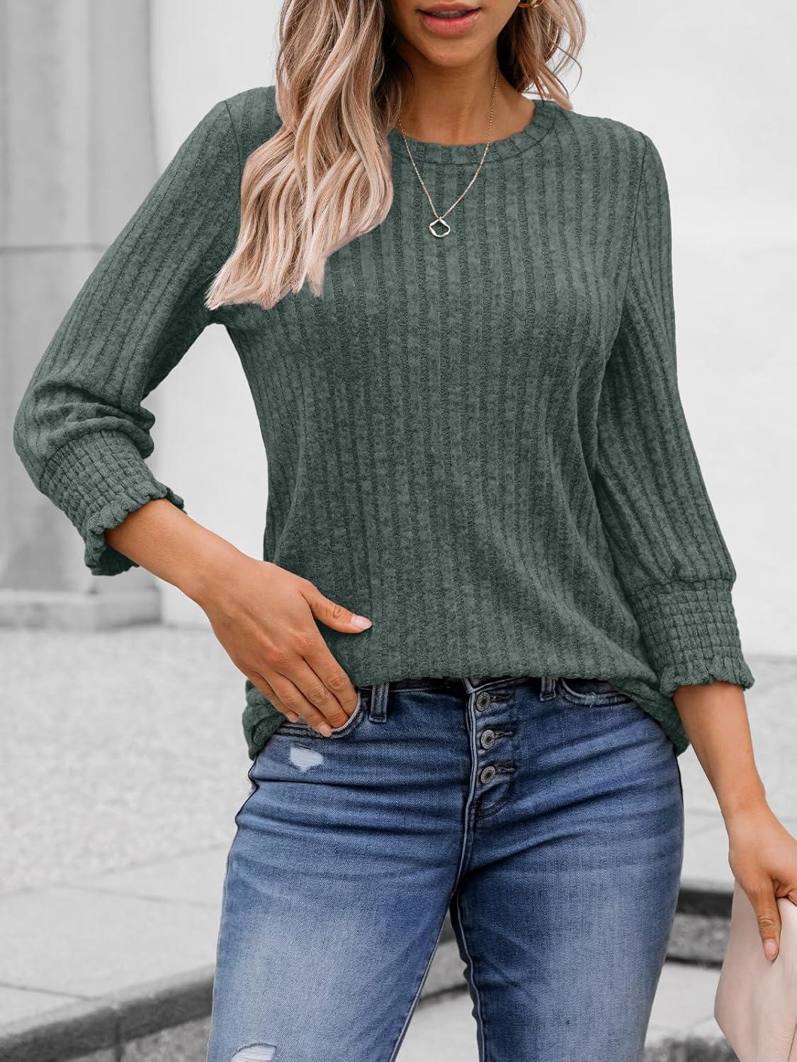 AUTOMET Womens 3/4 Sleeve Tops T Shirts Summer Sweater Round Neck Casual Top Ladies Tops Business Casual Blouses(Green)
