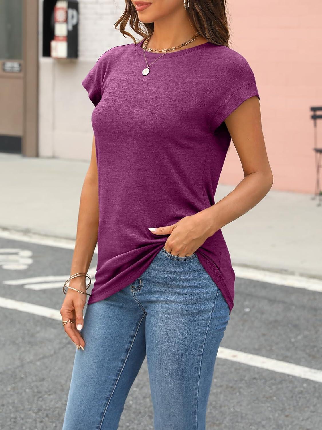 AUTOMET Womens Cap Sleeve Summer Tops T Shirts Business Casual Dressy Spring Fashion Outfits Cute Trendy Clothes 2025(Purplered)