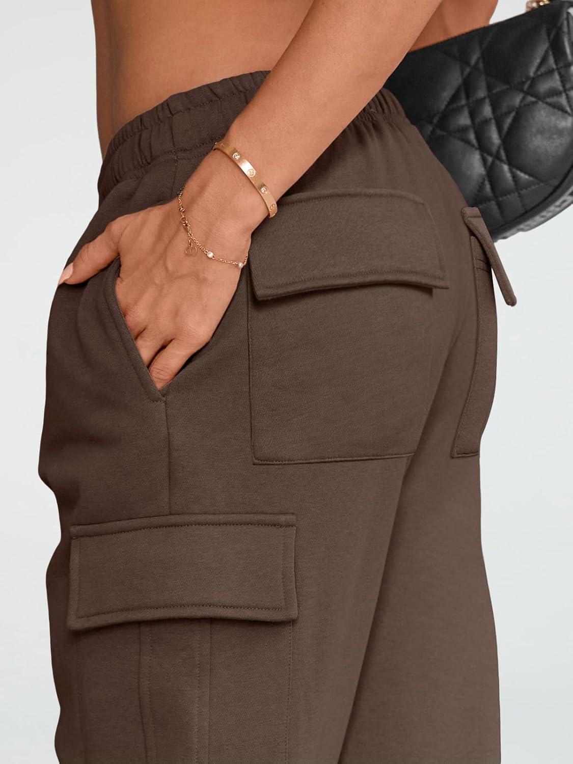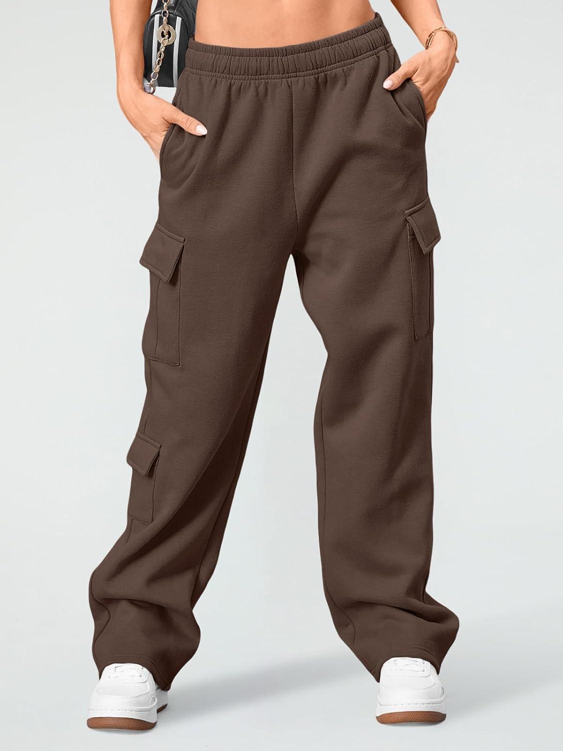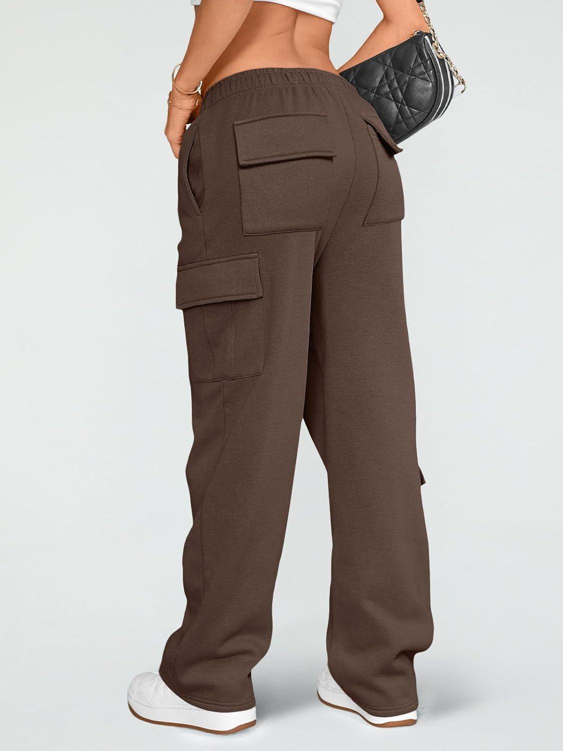 AUTOMET Womens Cargo Sweatpants Wide Leg Fleece Lined Y2k Pants Fall Winter Baggy Joggers with Pockets(Coffee)