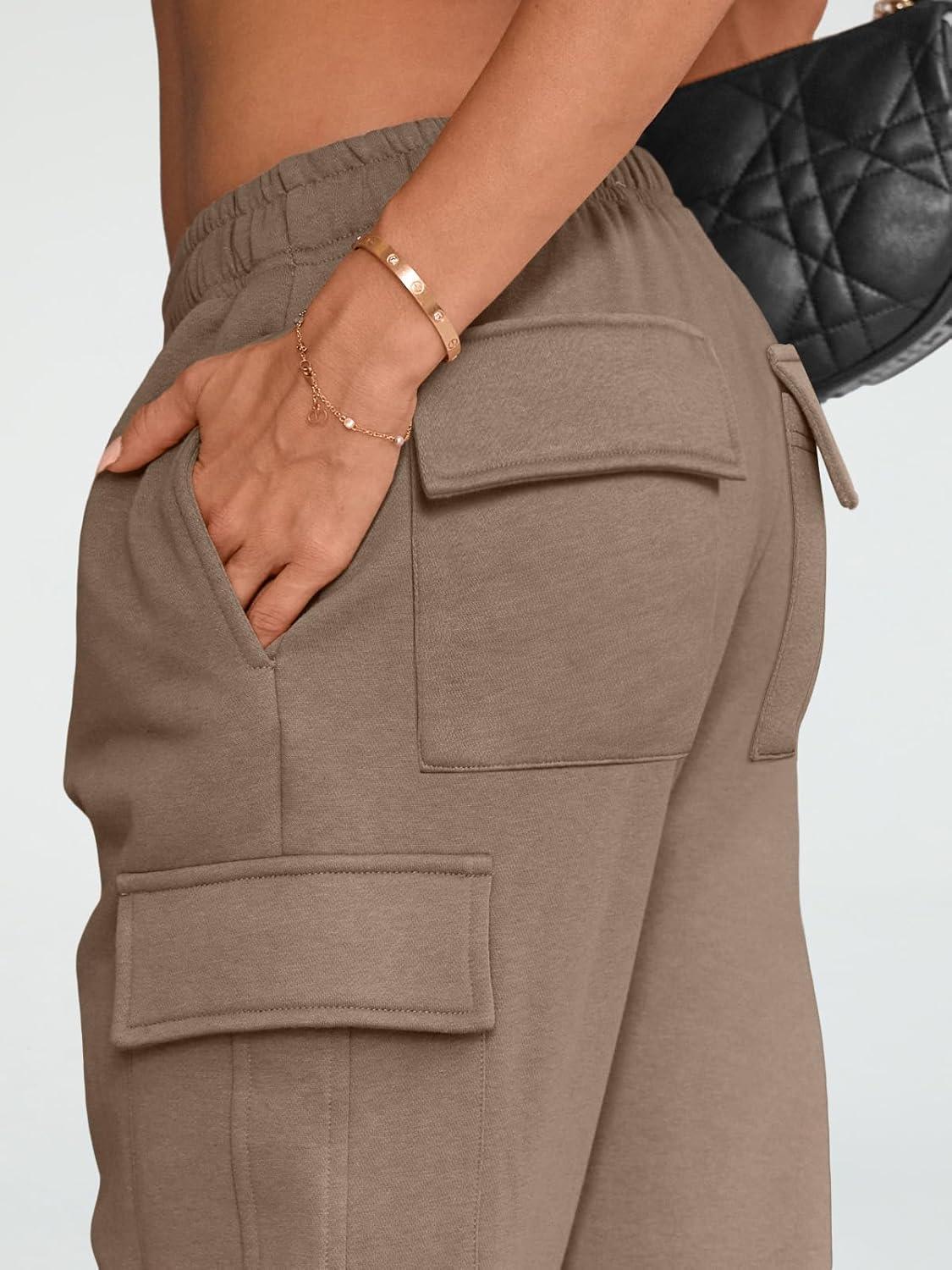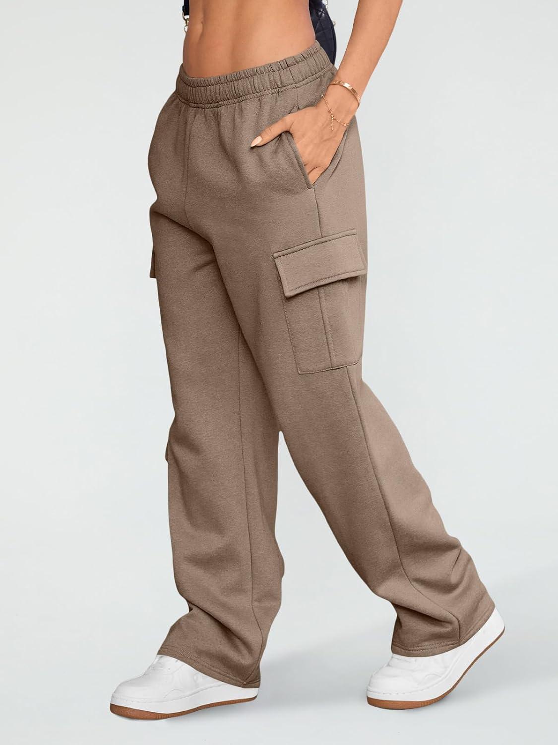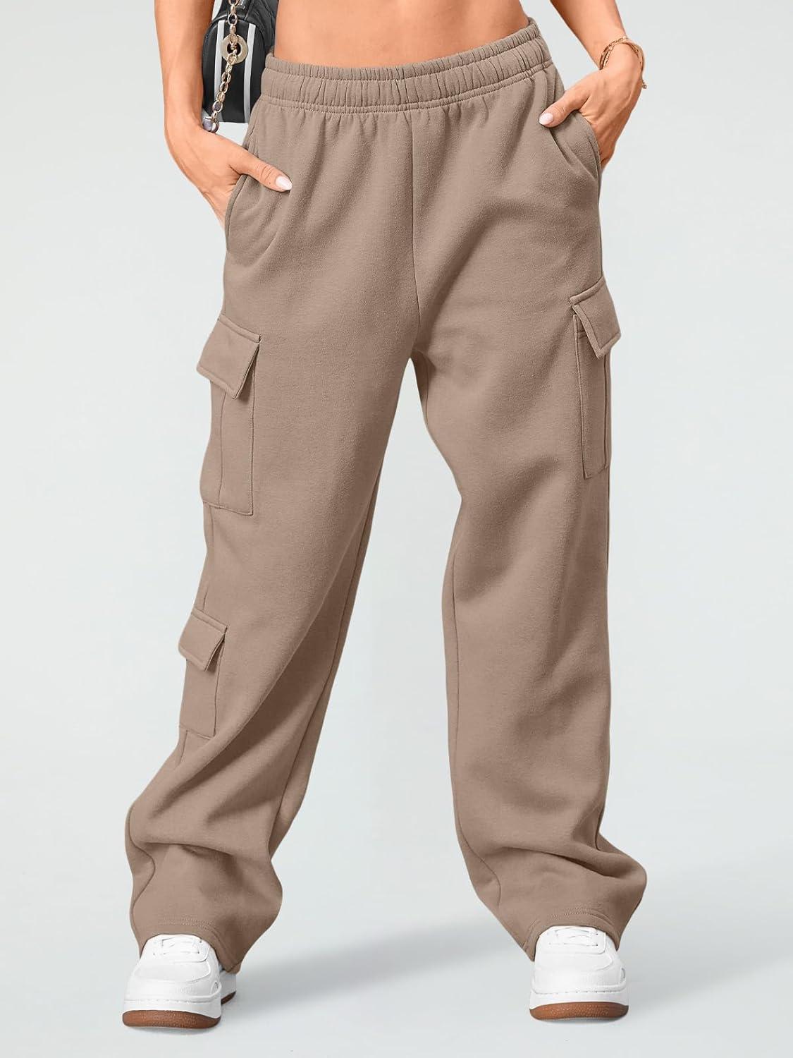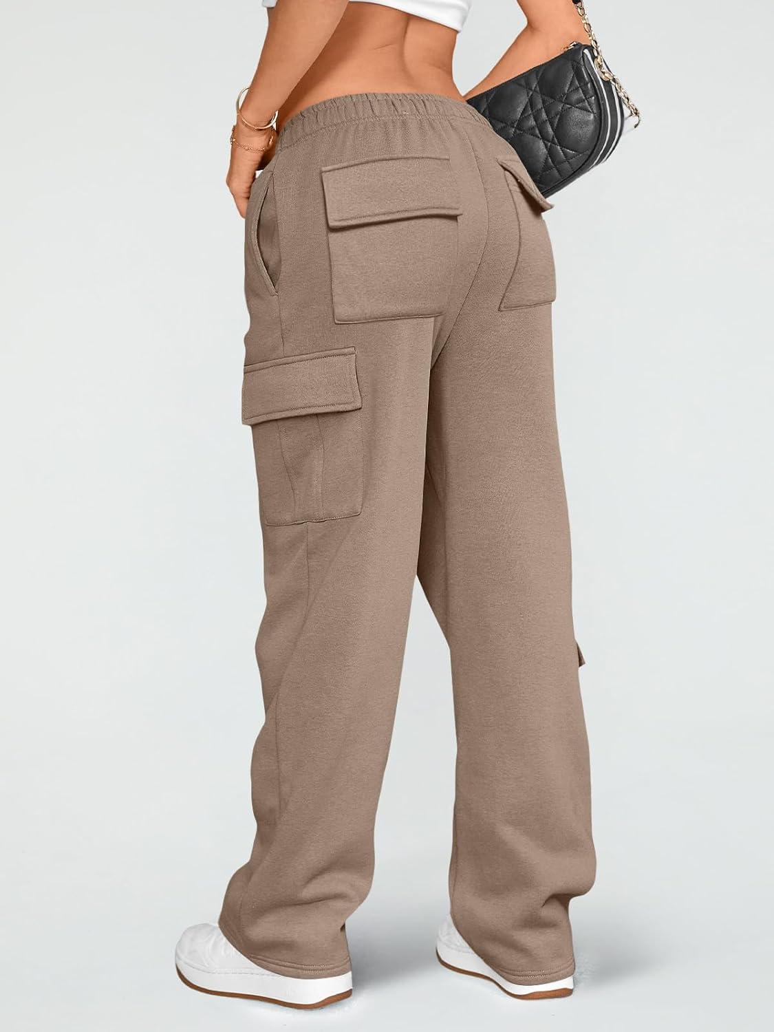 AUTOMET Womens Cargo Sweatpants Wide Leg Fleece Lined Y2k Pants Fall Winter Baggy Joggers with Pockets(Coffeegrey)