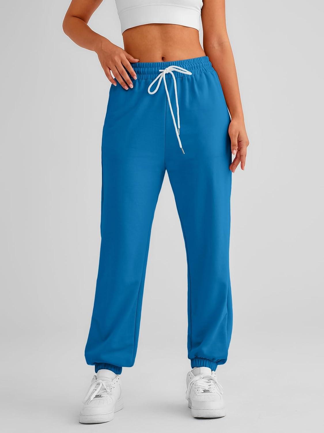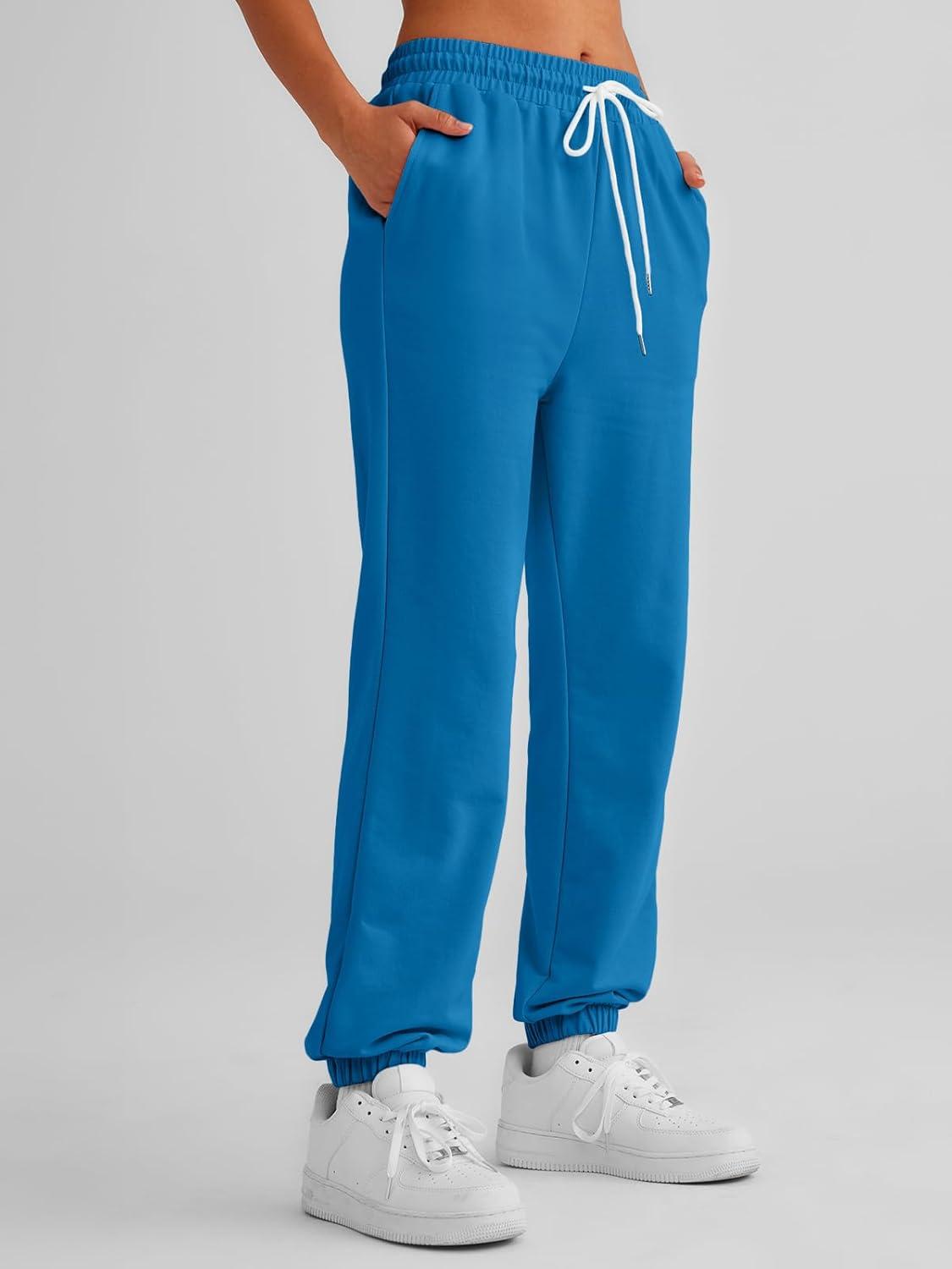 AUTOMET Women’s Cinch Bottom Sweatpants Athletic Joggers Lounge Pants with Pockets(Lake Blue)