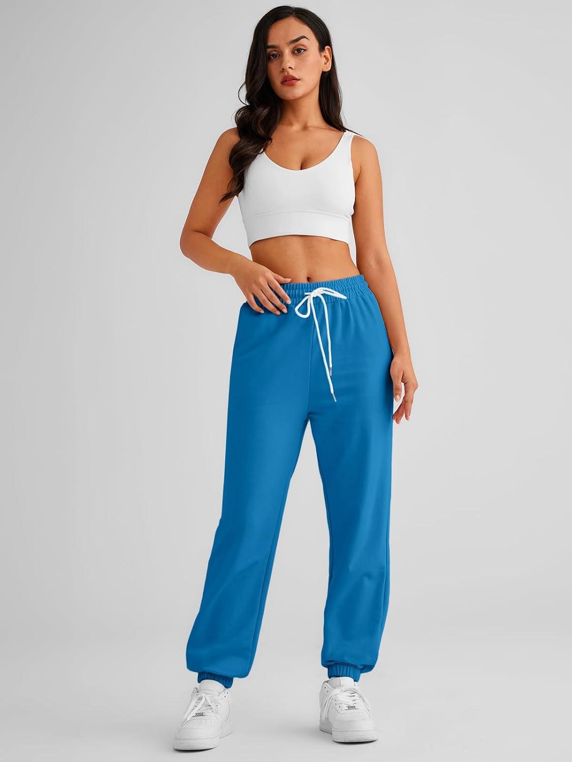 AUTOMET Women's Cinch Bottom Sweatpants Athletic Joggers Lounge Pants with Pockets(Lake Blue)