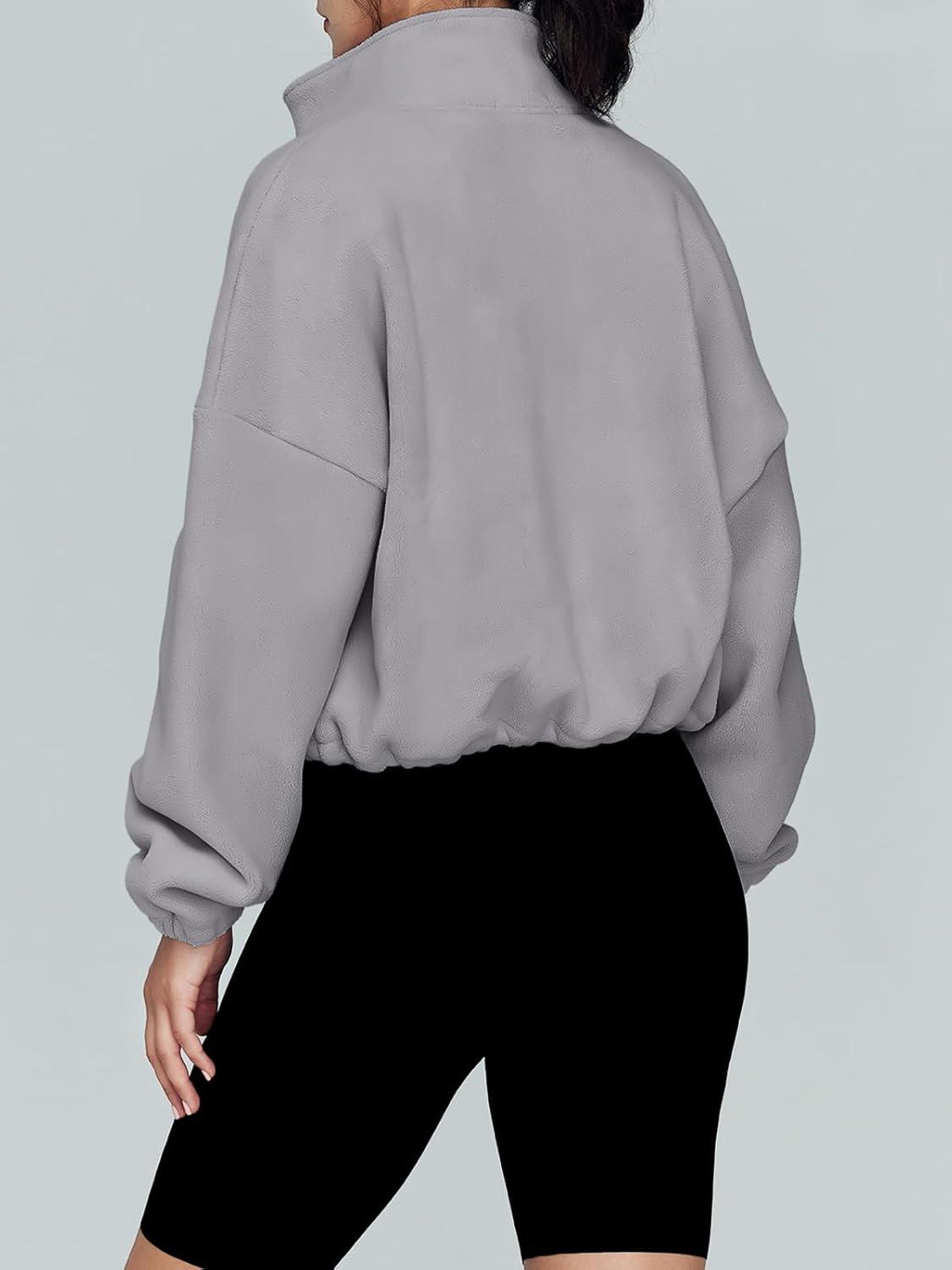 AUTOMET Womens Fleece Jackets Zip Up Oversized Sweatshirts Winter Clothes Long Sleeve Crop Sherpa Fall Outfits Fashion(Grey)