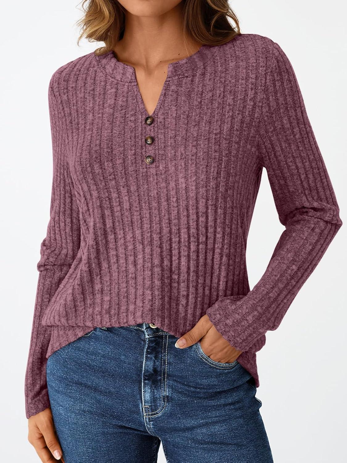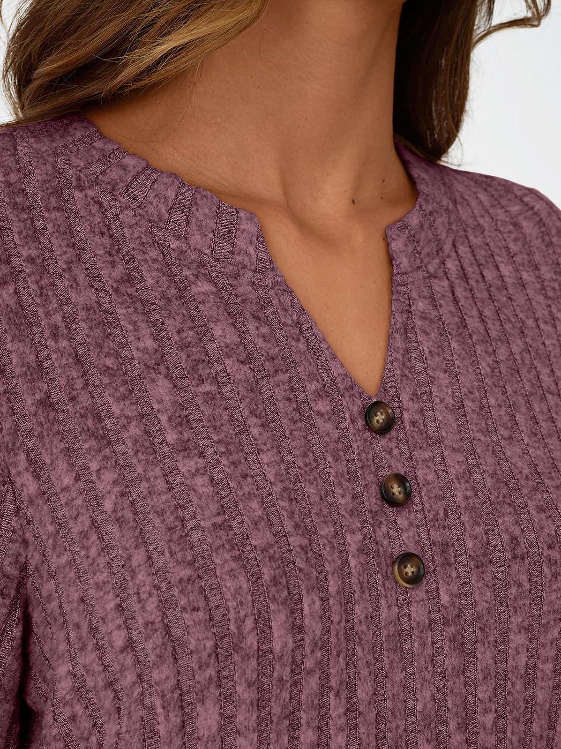 AUTOMET Womens Henley Long Sleeve Shirt Fall Top V Neck Fashion Dreesy Casual Tunic Sweaters Clothes Trendy Work Outfits(Wine)