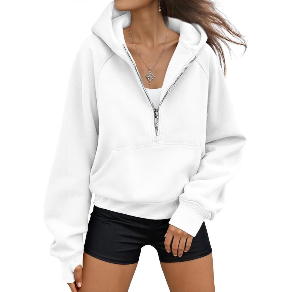 AUTOMET Womens Hoodies Fleece Fall Fashion Outfits Workout Sweatshirts Y2k Winter Zip Up Jackets Oversized Tops Clothes 2025(White)