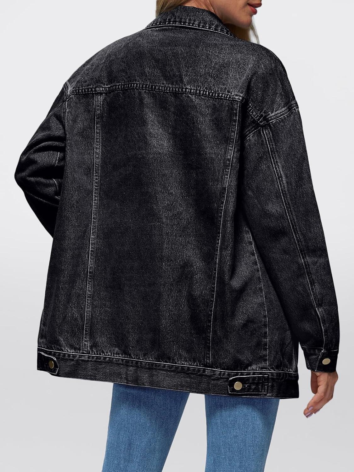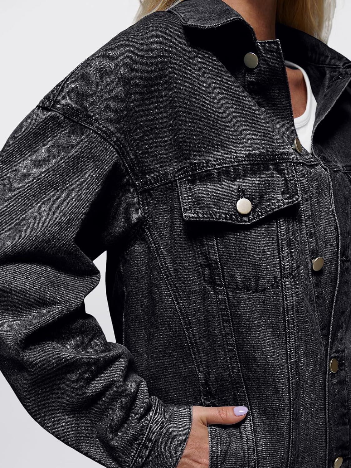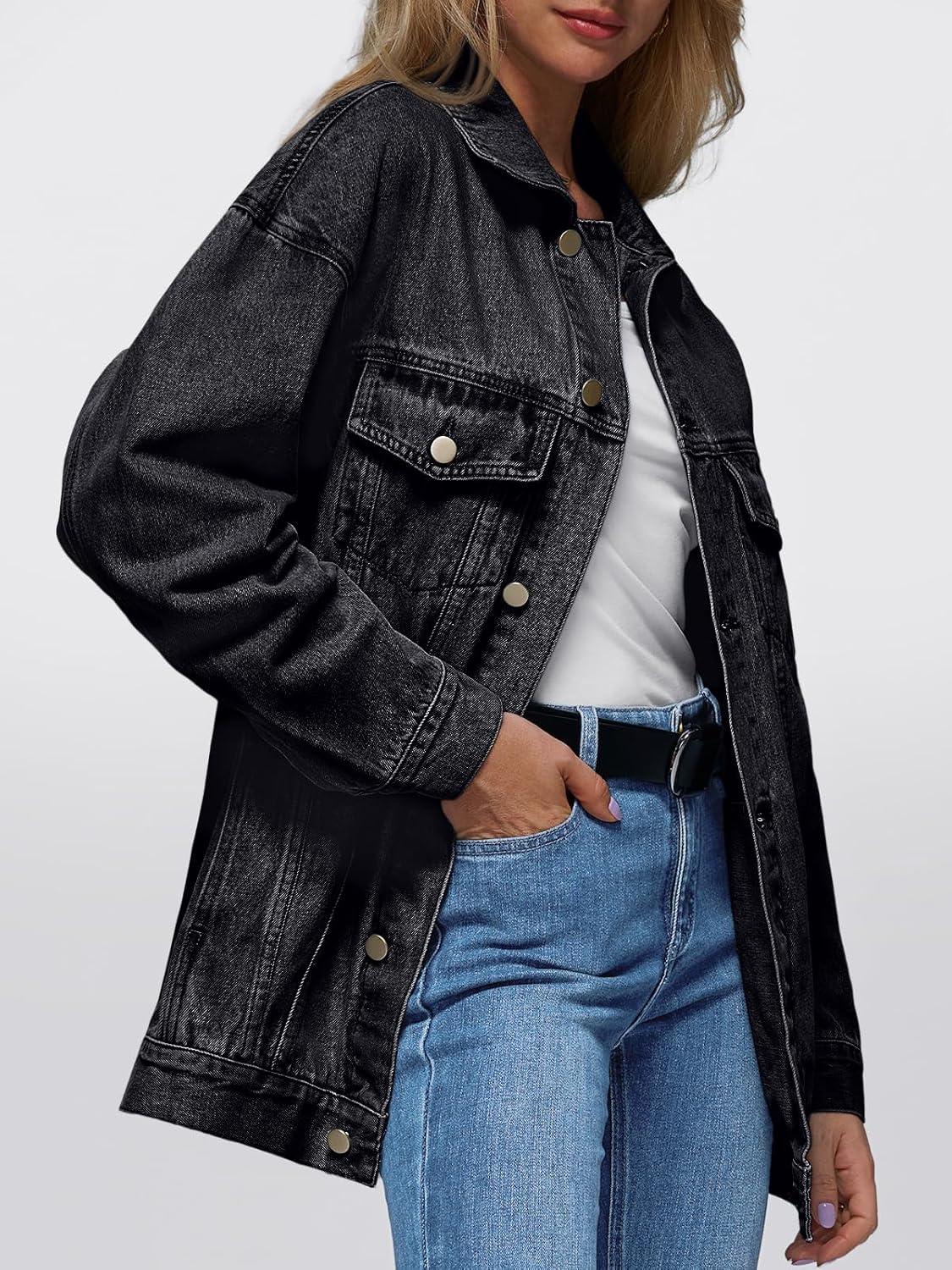 AUTOMET Womens Jean Jacket Denim Long Sleeve Oversized Button Down Shirts Trendy Coat Fall Fashion Winter Clothes Outfit(Black)