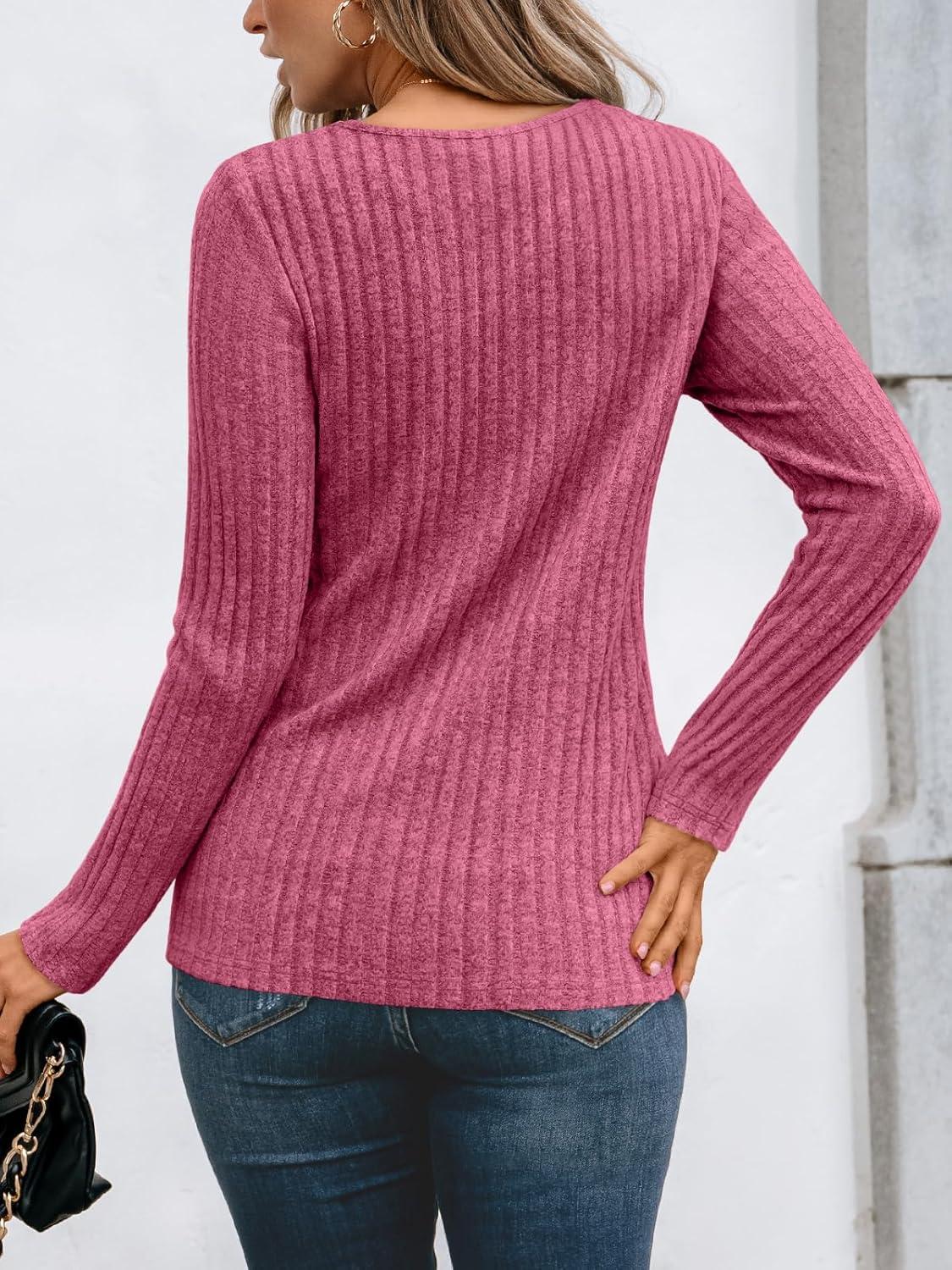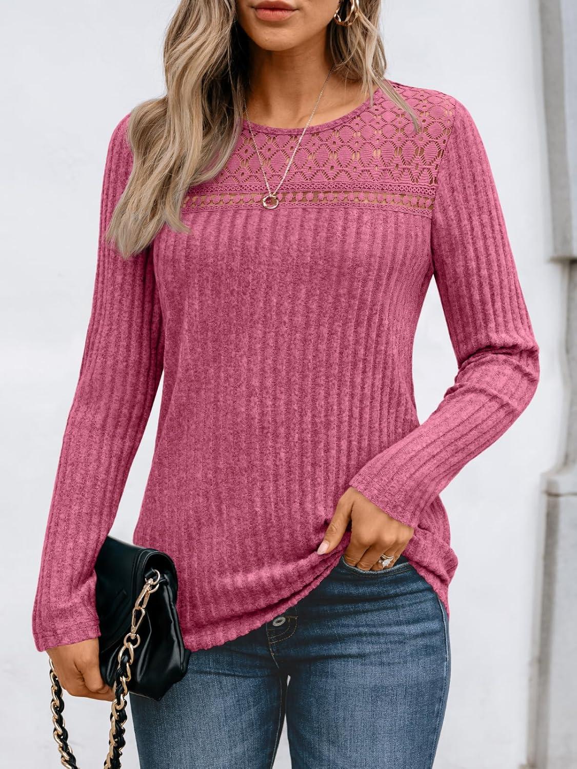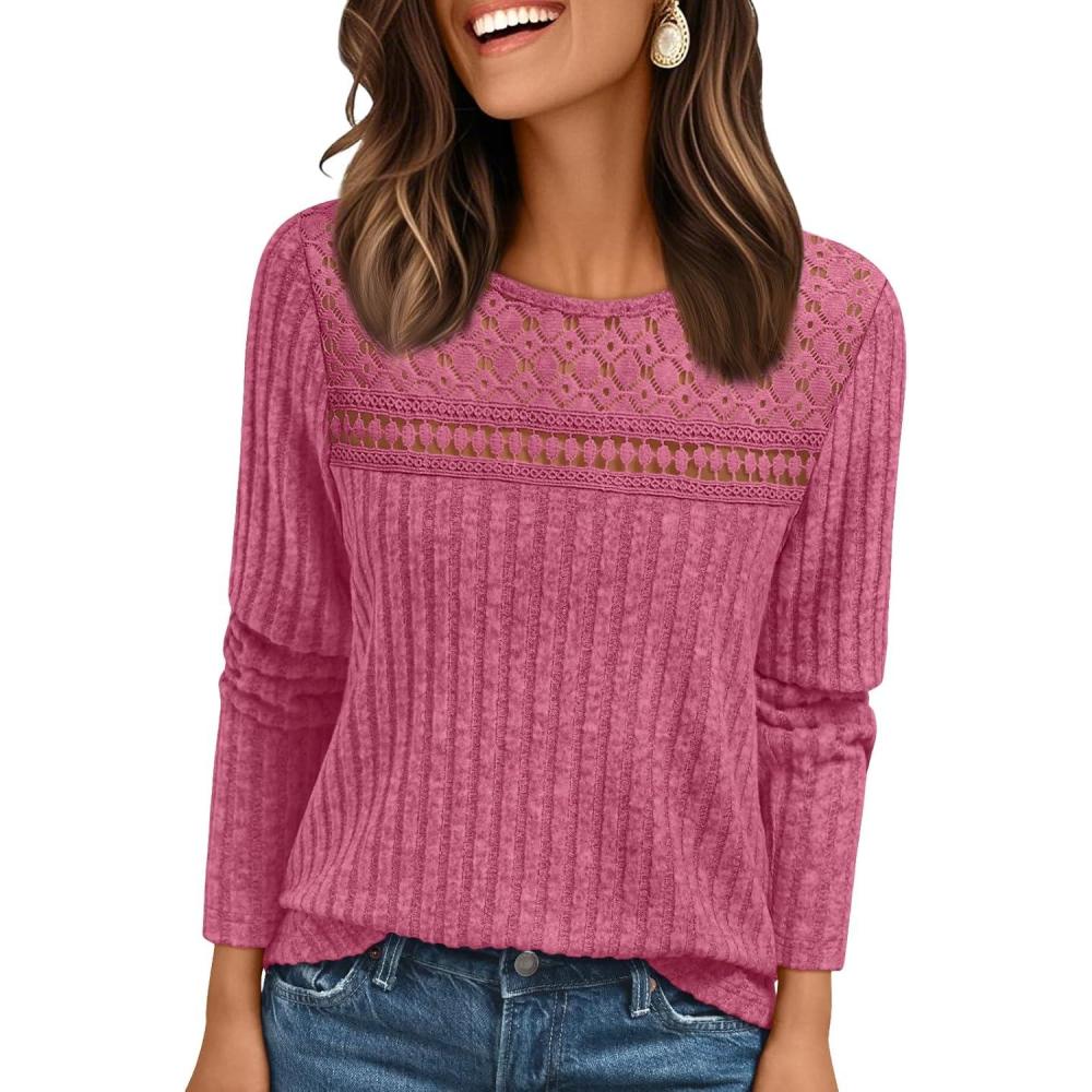 AUTOMET Womens Lace Long Sleeve Shirt Fall Top Fashion Dreesy Casual Tunic Sweaters Mesh Clothes Trendy Work Cute Outfits(Rose)