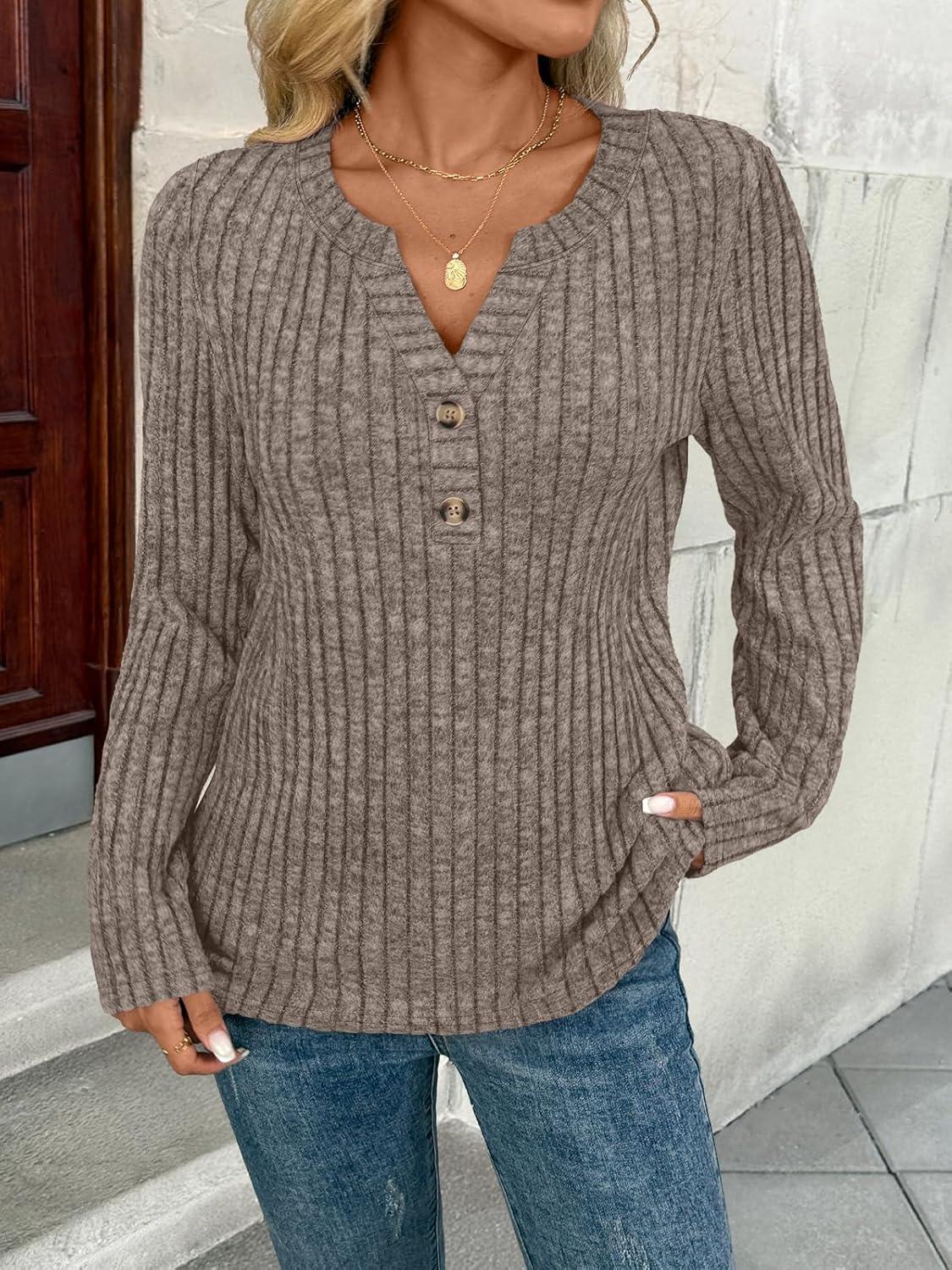 AUTOMET Women's Long Sleeve Henley Shirts Fall Lightweight Sweaters Dressy Casual Tunic Tops Fashion Clothes 2025(Coffeegrey)
