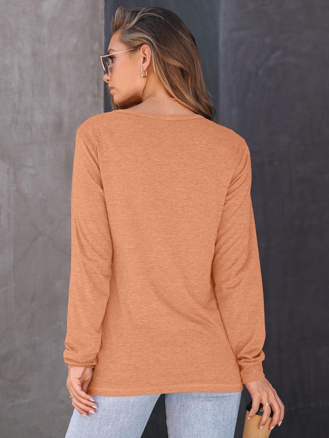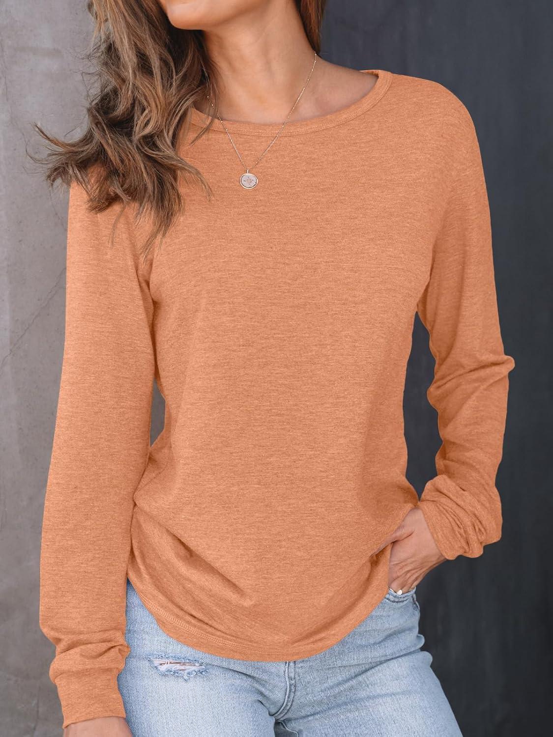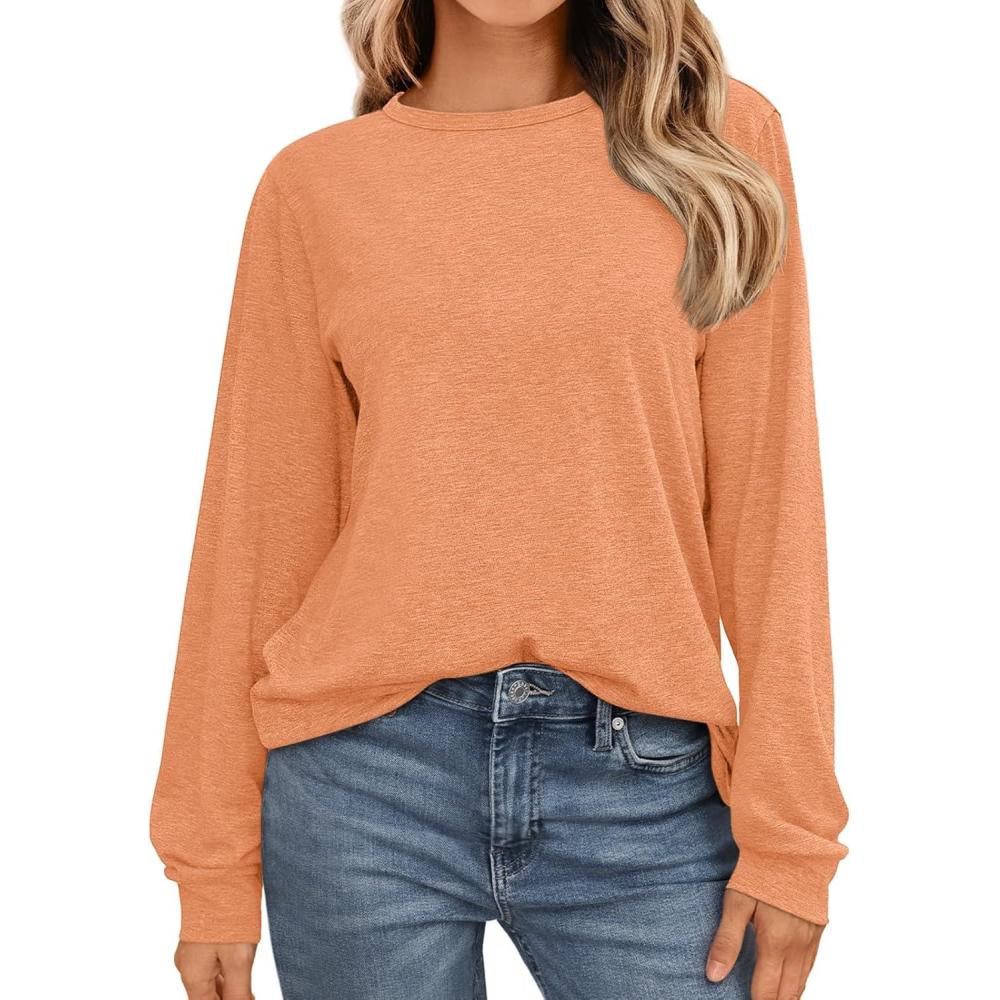 AUTOMET Women’s Long Sleeve Shirts 2025 Fall Loose Fit Tops Solid Color Oversized Basic Tees Business Casual Outfits(Orange)