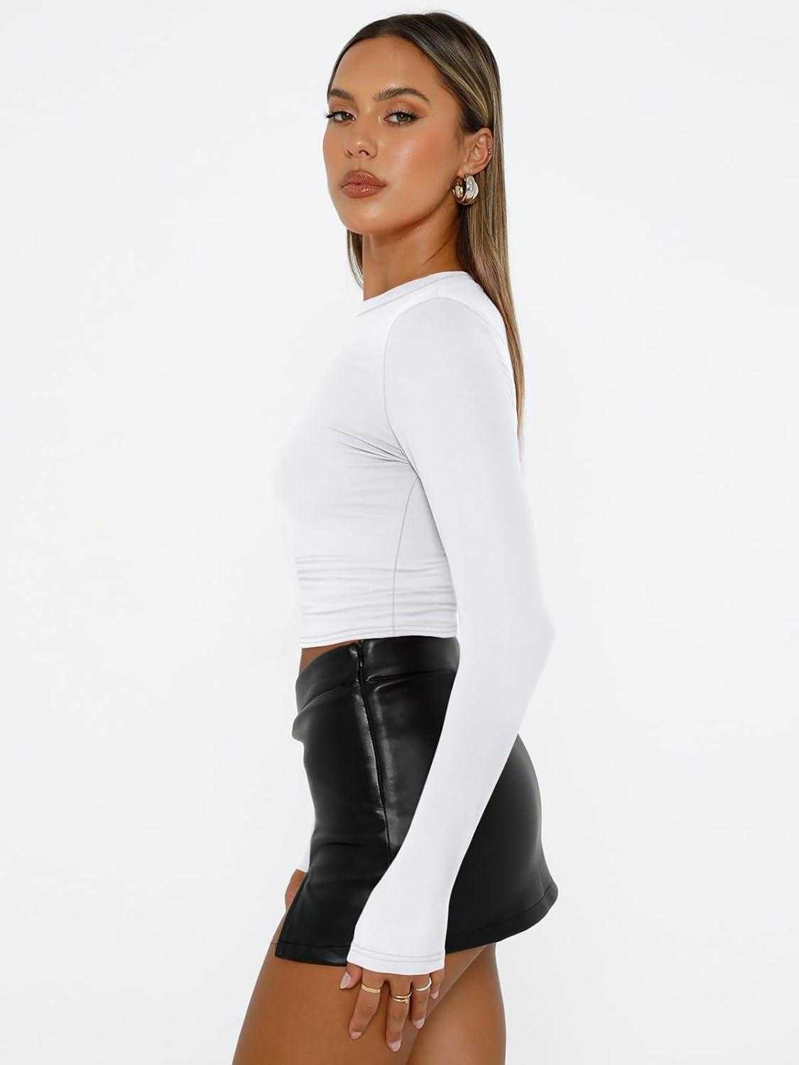 AUTOMET Womens Long Sleeve Shirts Basic Compression Going Out Crop Tops Fall Fashion Y2K Clothes 2025(White)