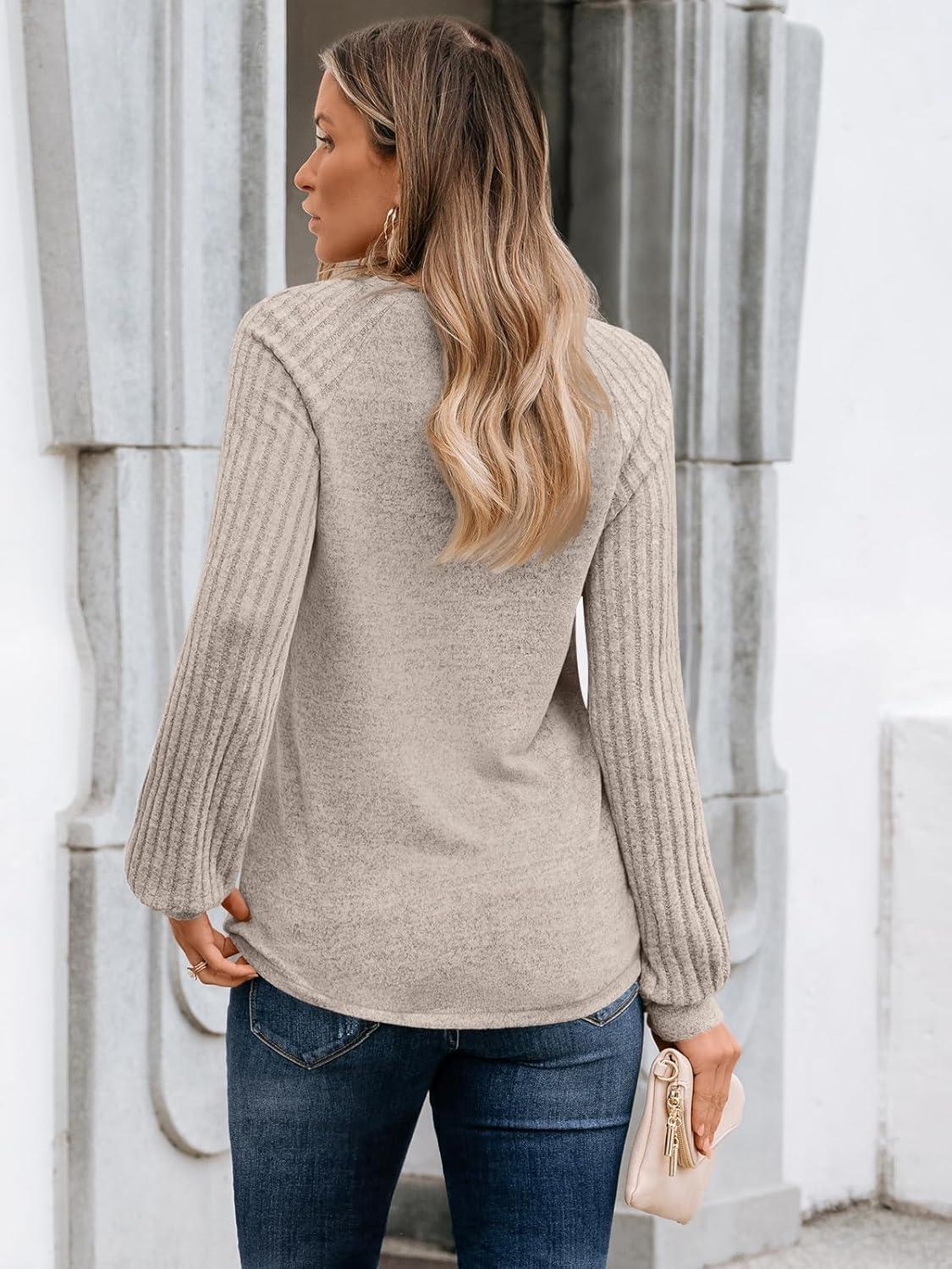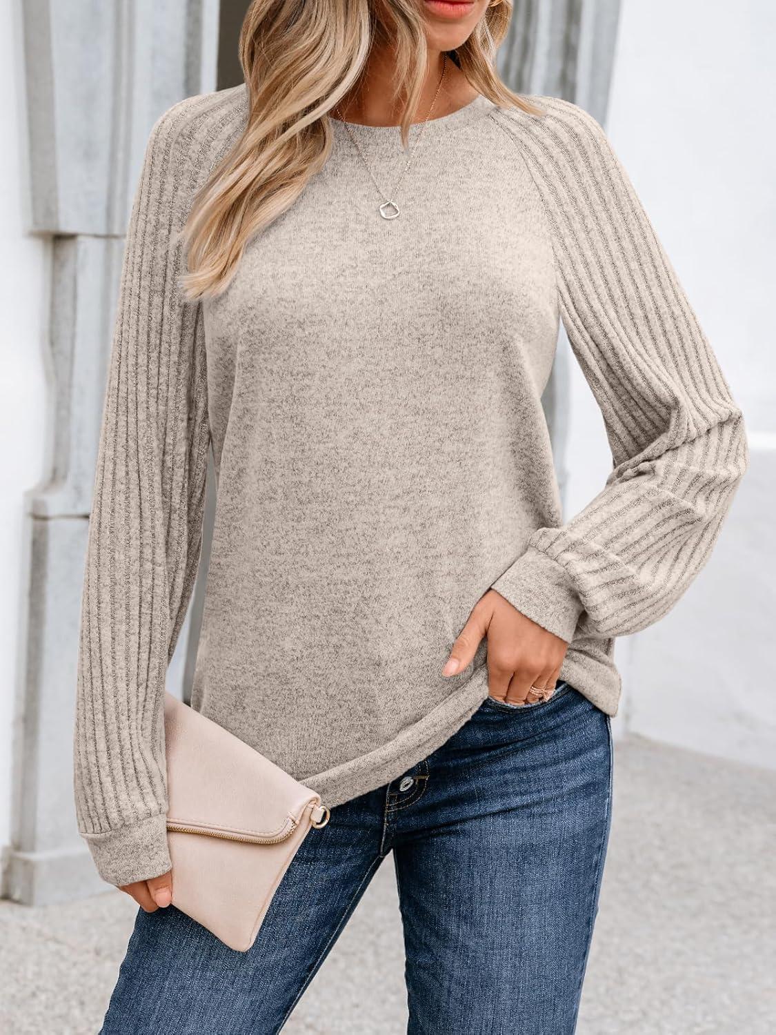 AUTOMET Womens Long Sleeve Shirts Casual Basic Fall Tops Cozy Lightweight Pullover Sweaters Outfits 2025 Winter Clothing(Khaki)