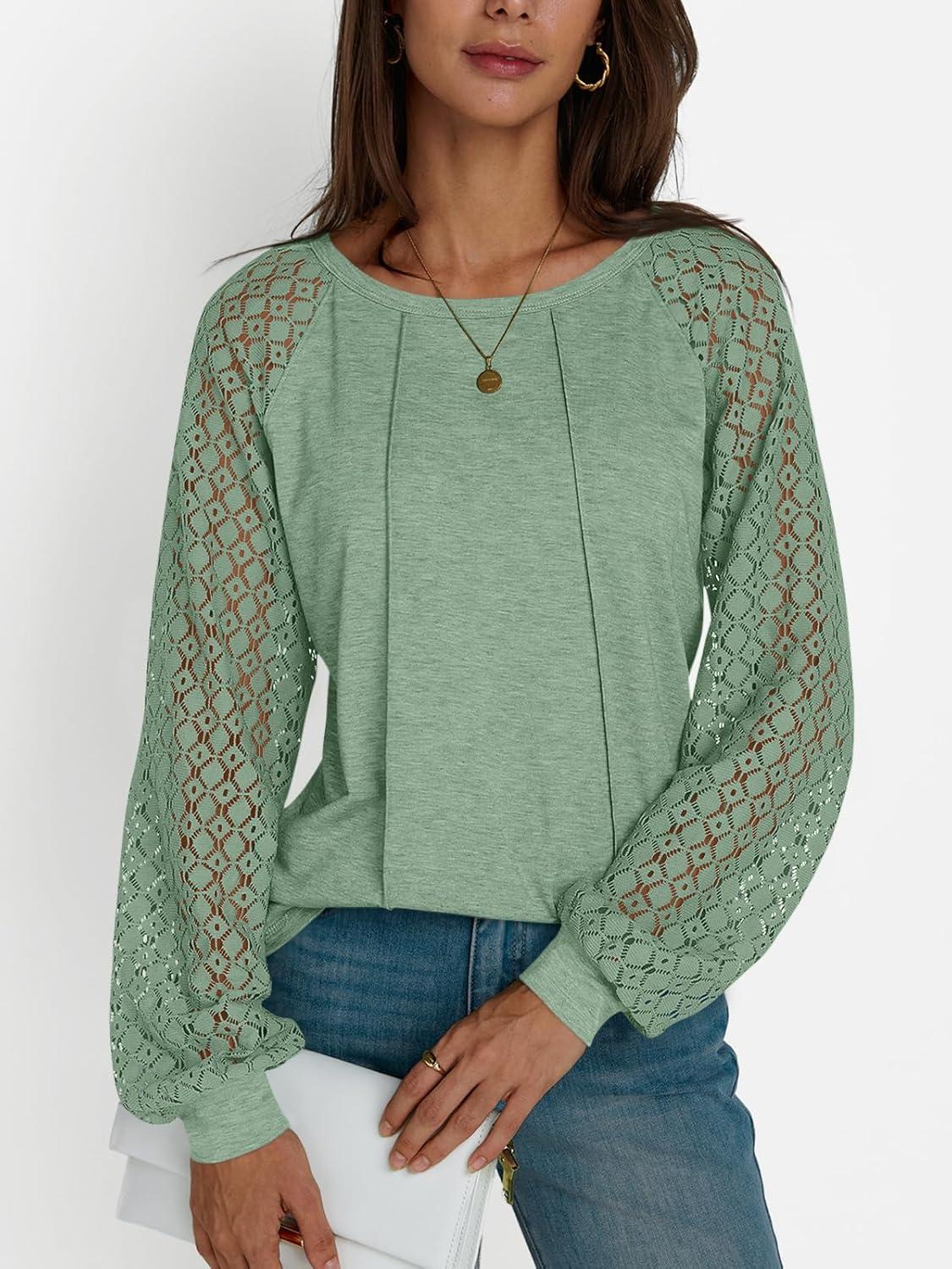 AUTOMET Womens Long Sleeve Shirts Casual Tops Dressy Outfits Fall Fashion Blouses Lace Clothes Y2k(Lightgreen)