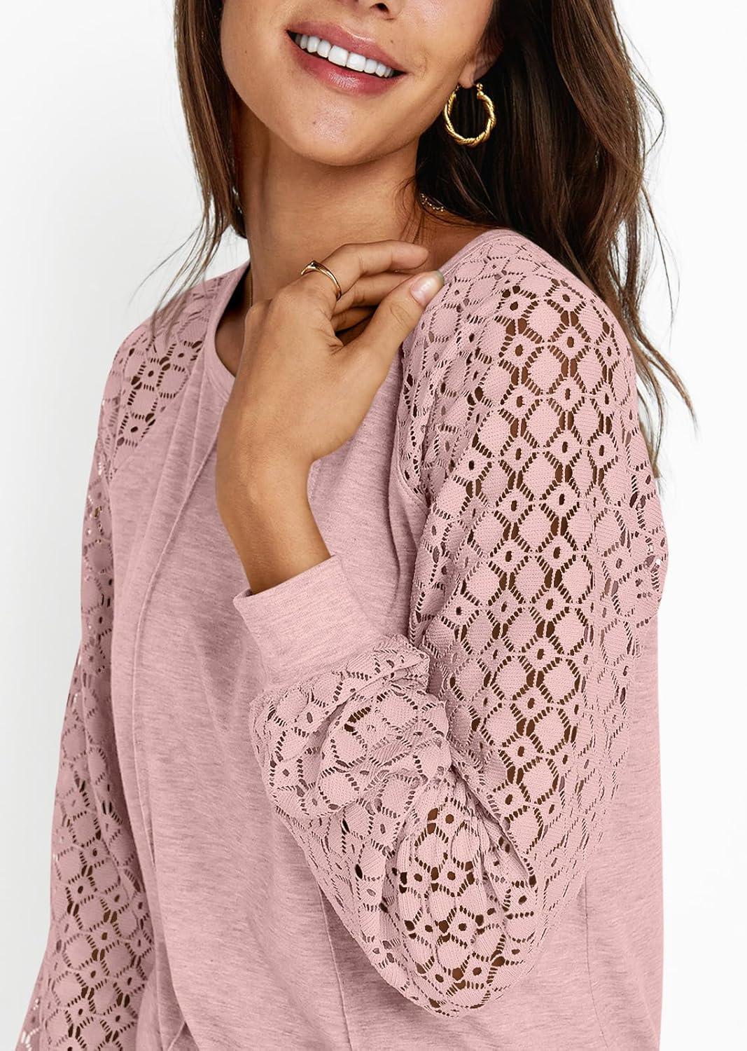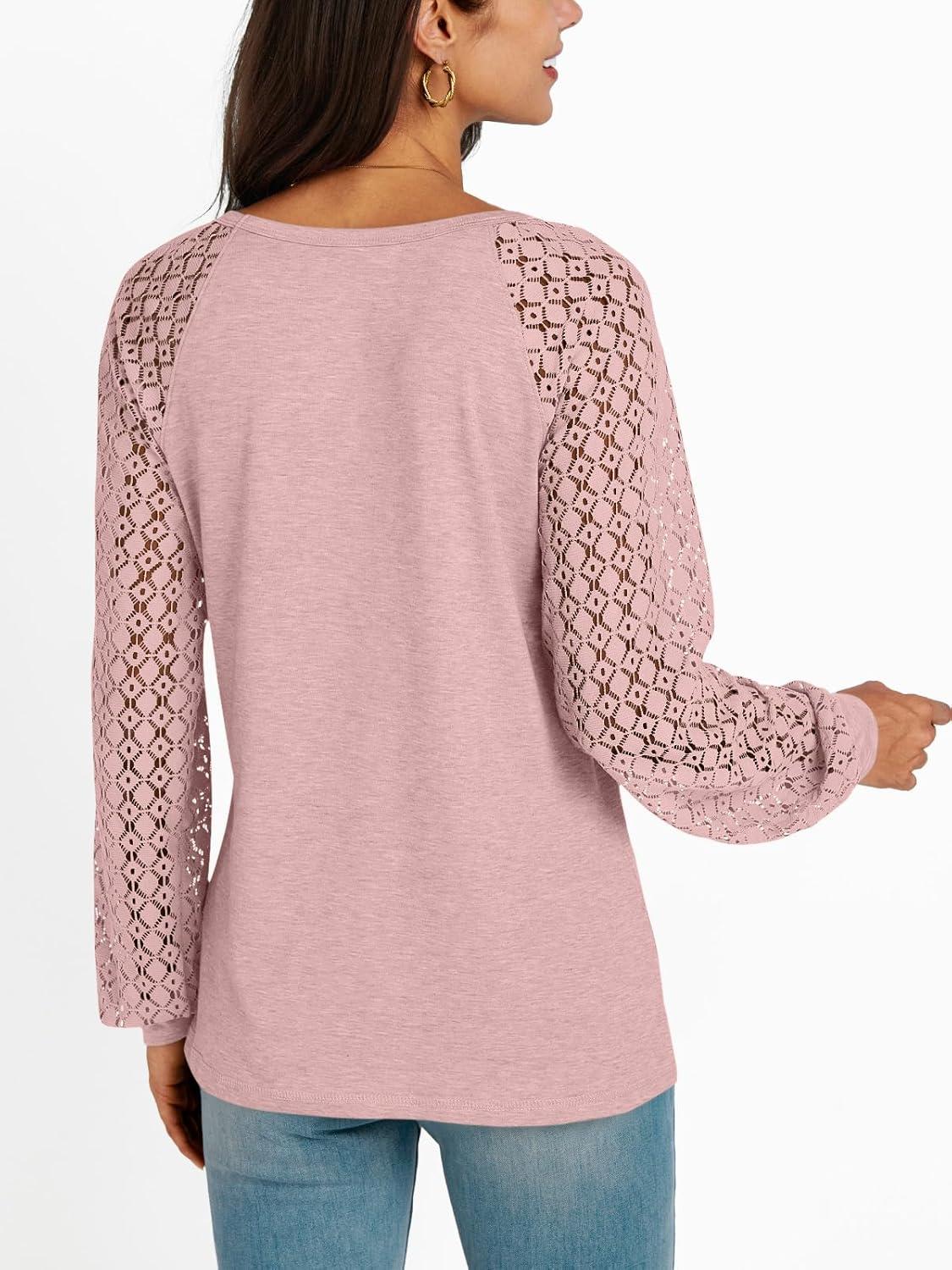 imageAUTOMET Womens Long Sleeve Shirts Casual Tops Dressy Outfits Fall Fashion Blouses Lace Clothes Y2kPink
