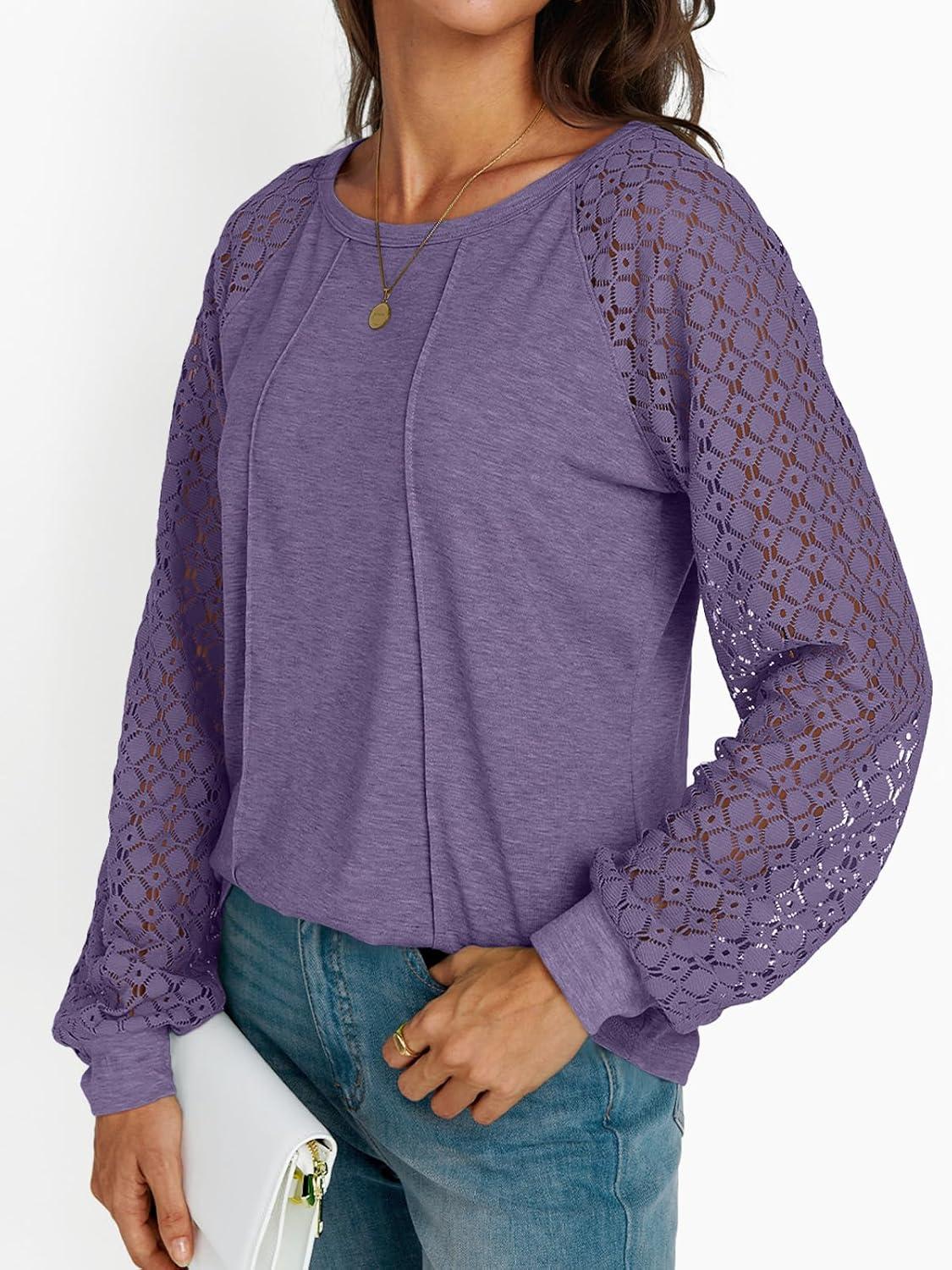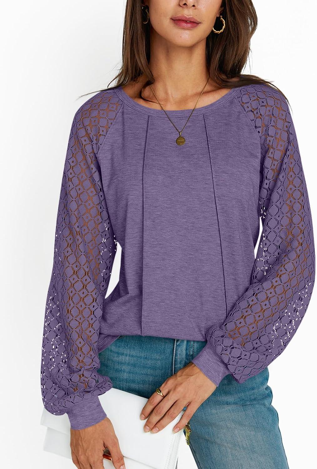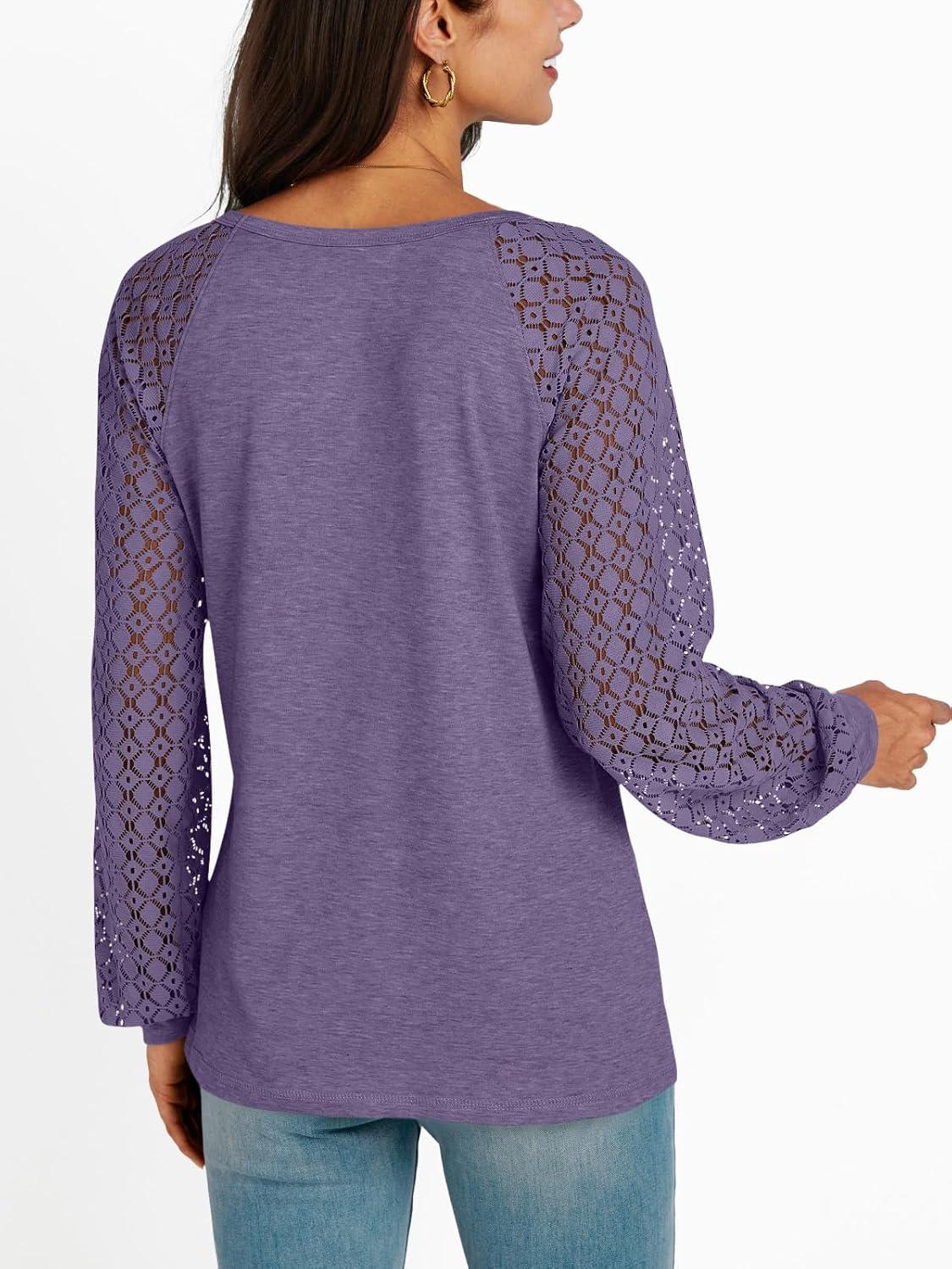 AUTOMET Womens Long Sleeve Shirts Casual Tops Dressy Outfits Fall Fashion Blouses Lace Clothes Y2k(Purple)