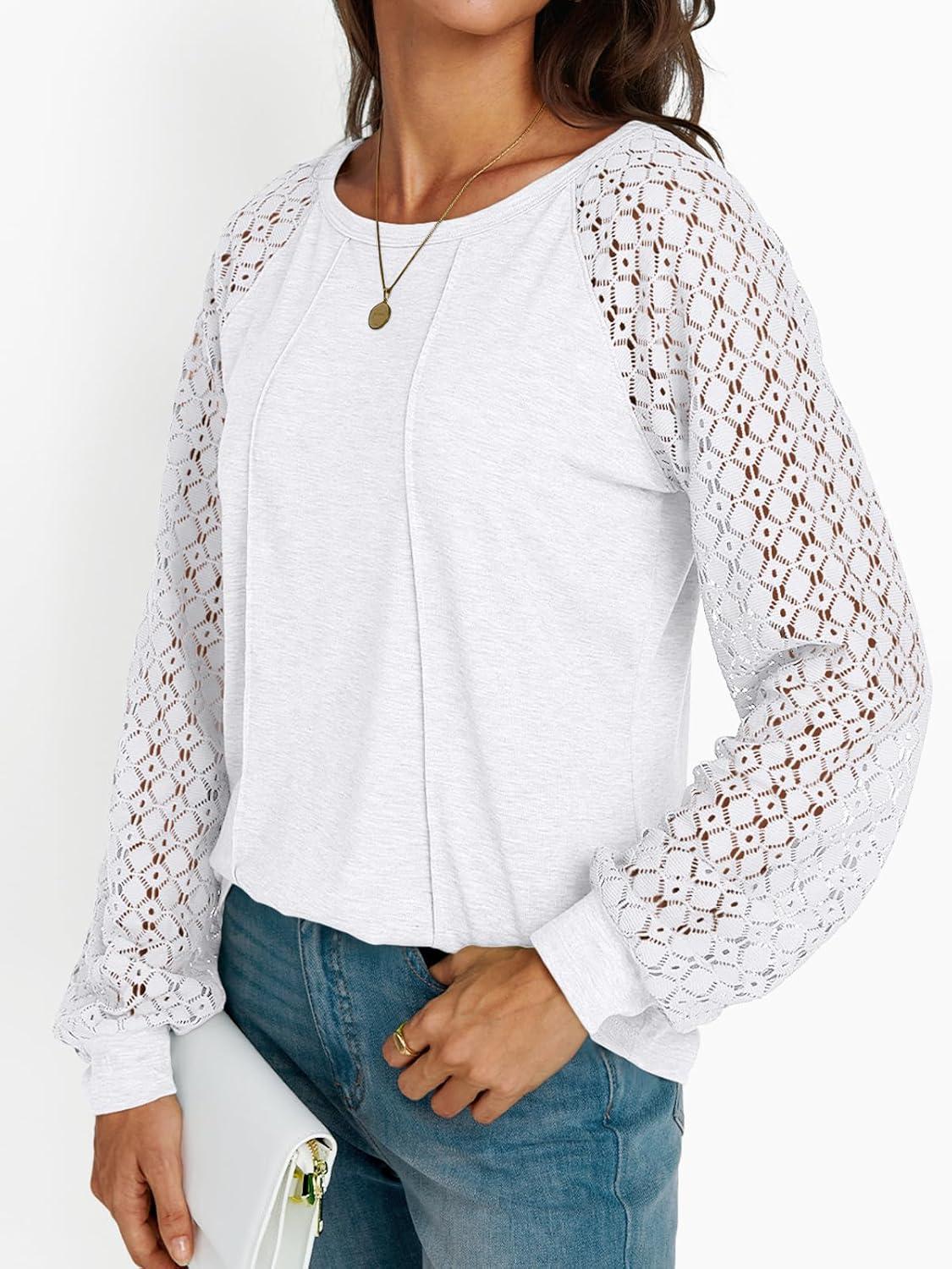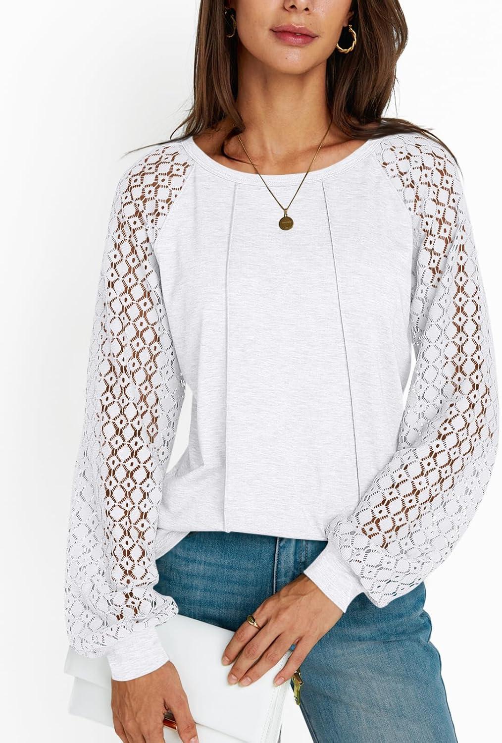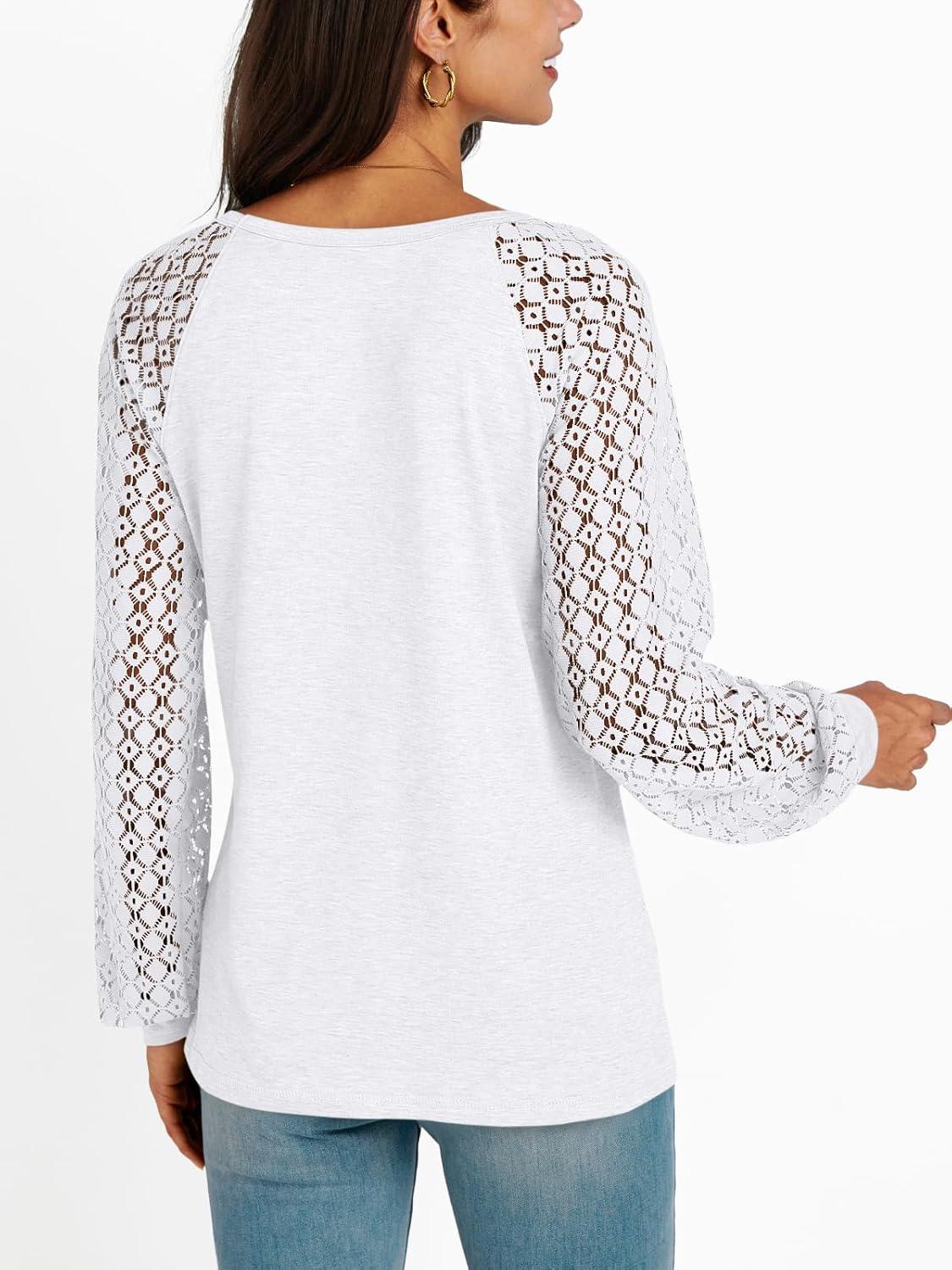 AUTOMET Womens Long Sleeve Shirts Casual Tops Dressy Outfits Fall Fashion Blouses Lace Clothes Y2k(White)