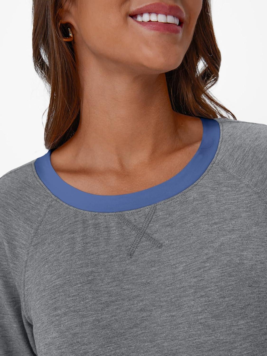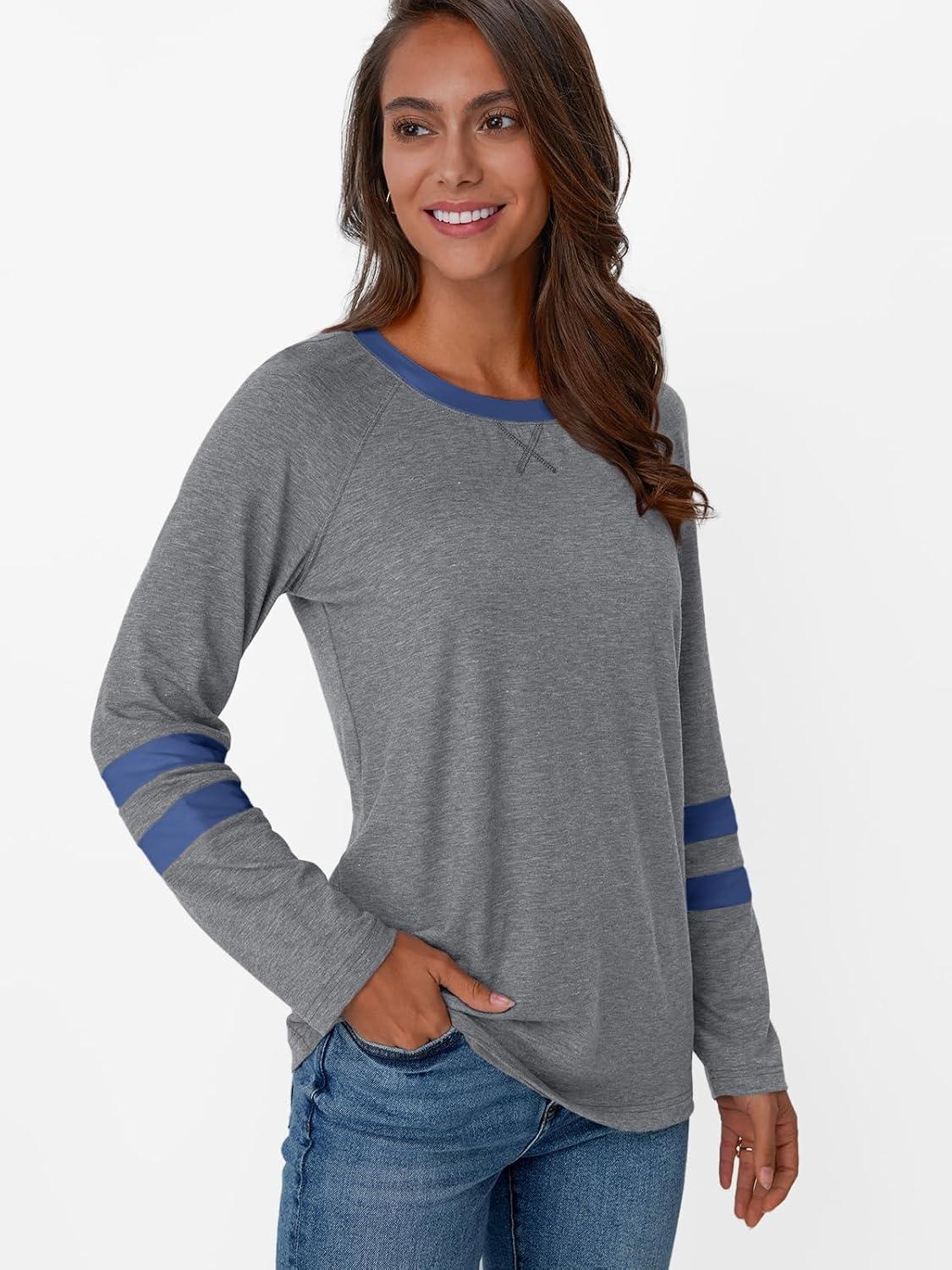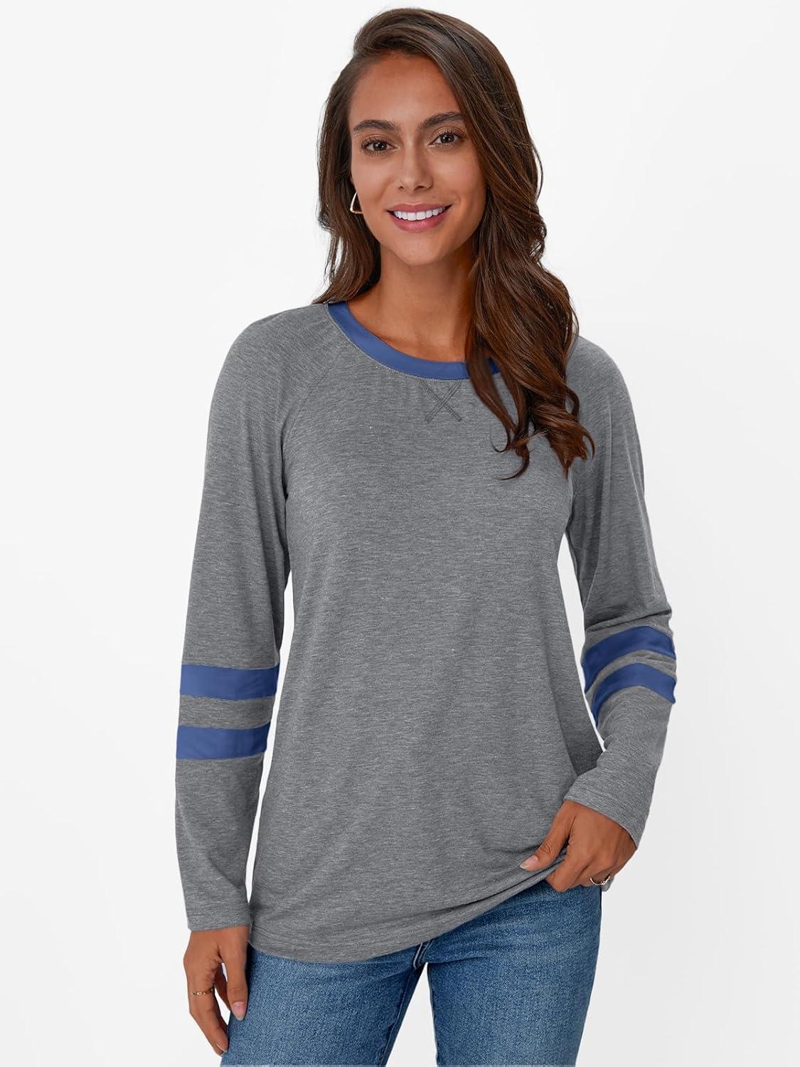 AUTOMET Womens Long Sleeve Shirts Color Block Casual Crewneck Tops Tshirt Basic Tee Fall Fashion Clothes Trendy Outfits(Darkgrey)