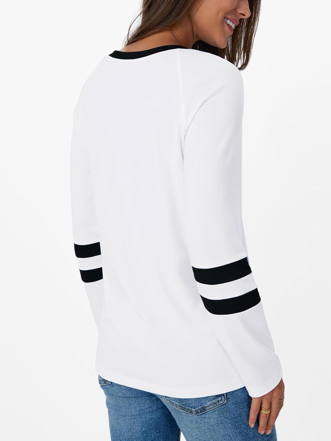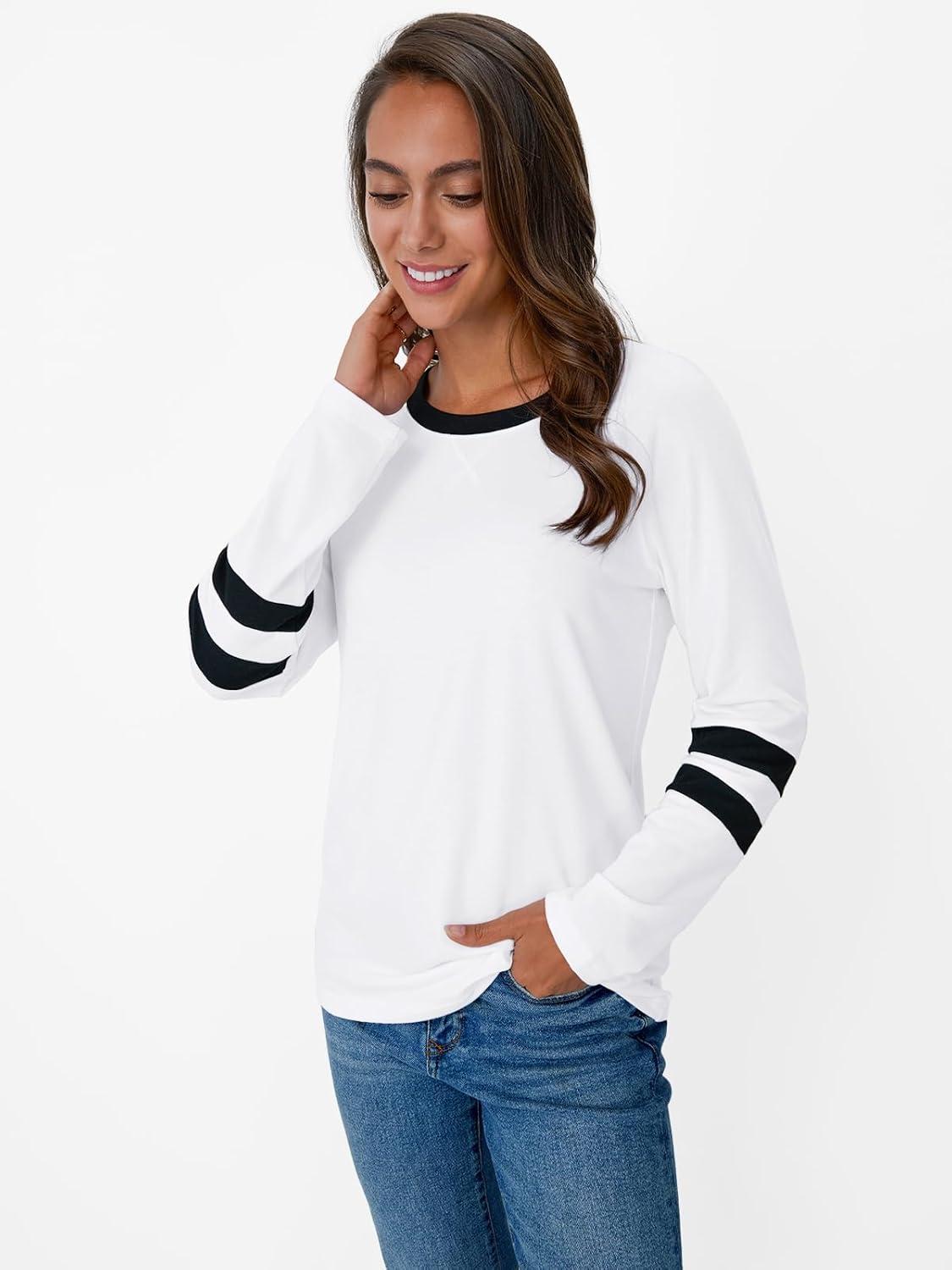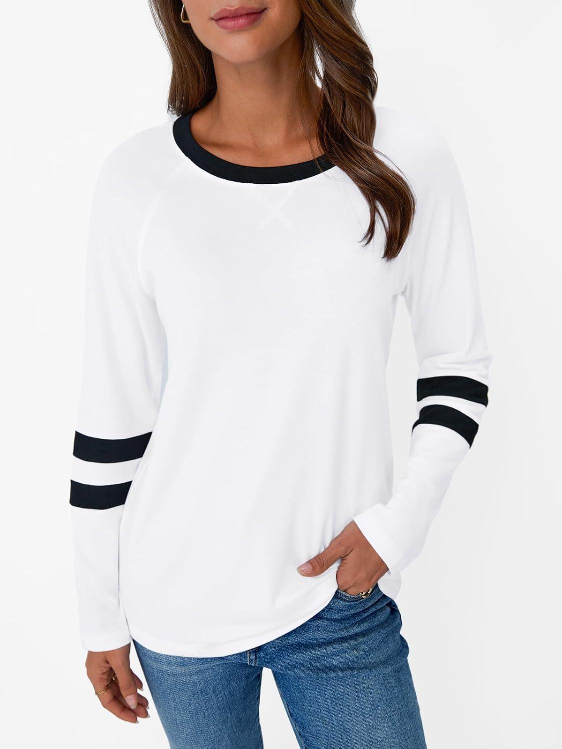 AUTOMET Womens Long Sleeve Shirts Color Block Casual Crewneck Tops Tshirt Basic Tee Fall Fashion Clothes Trendy Outfits(White)