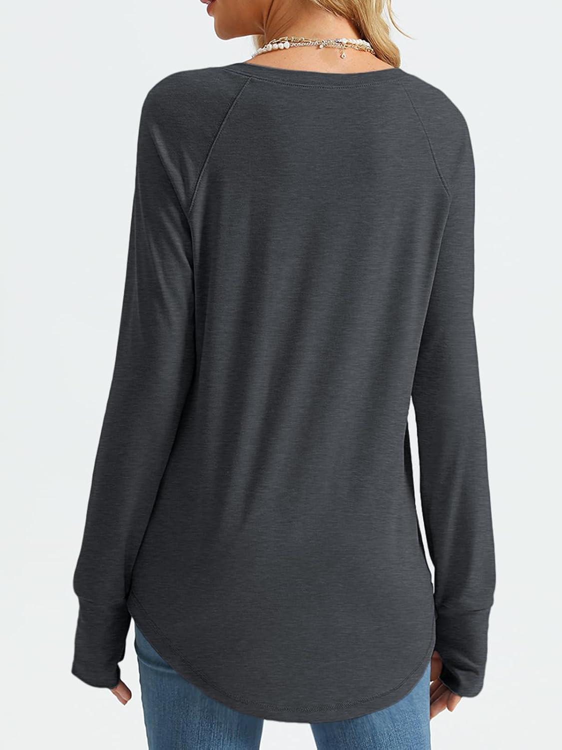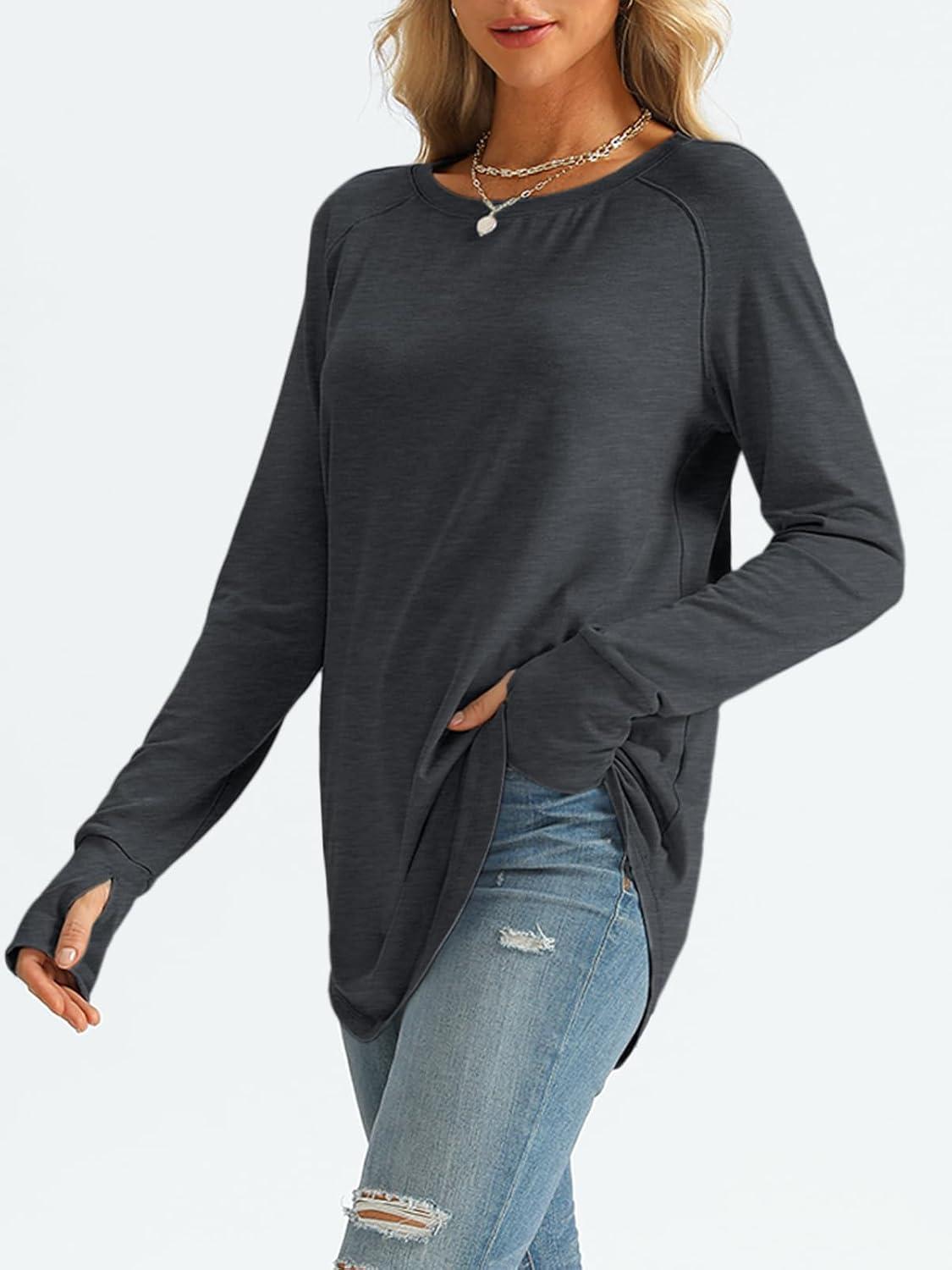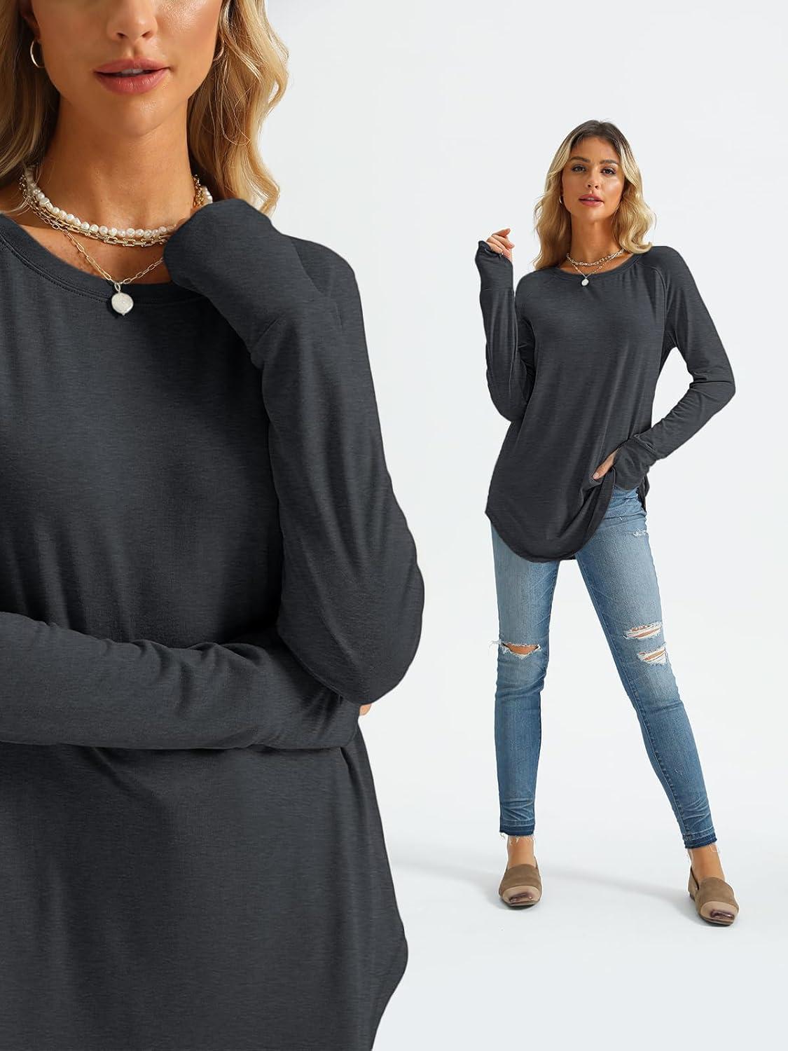 AUTOMET Womens Long Sleeve Shirts Crew Neck Casual Tshirts Fall Fashion Tops Loose Fit Lightweight Y2k Outfits Clothes(Darkgrey)