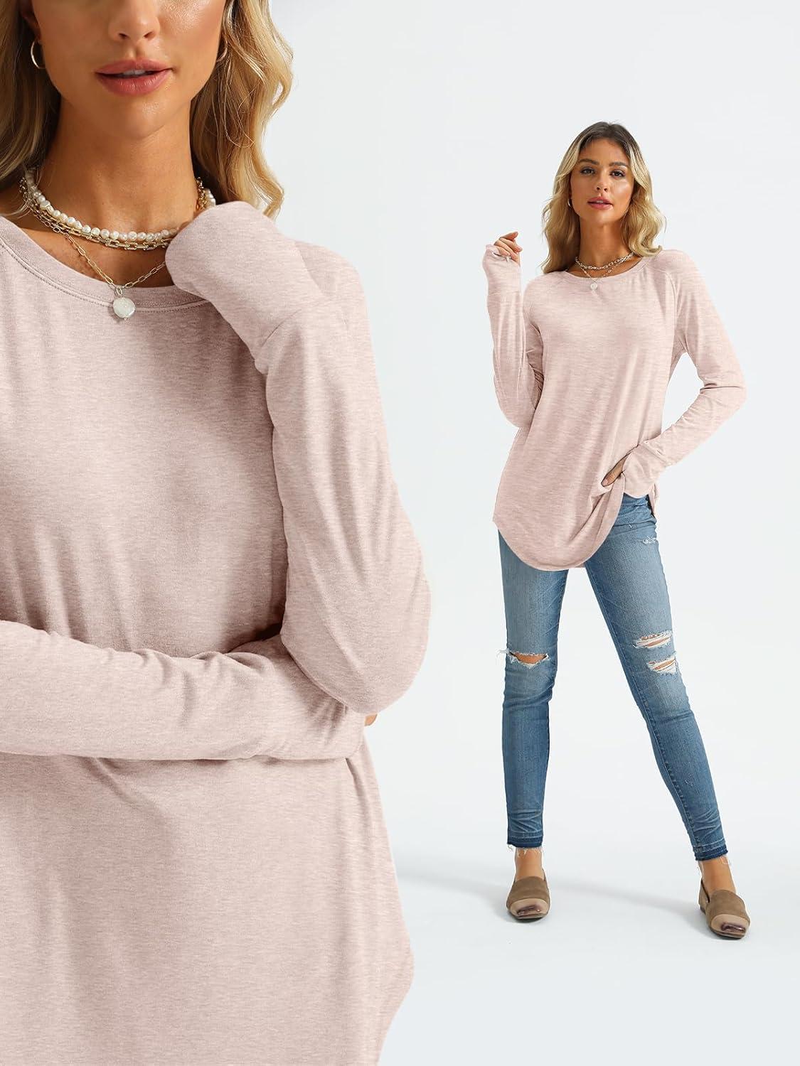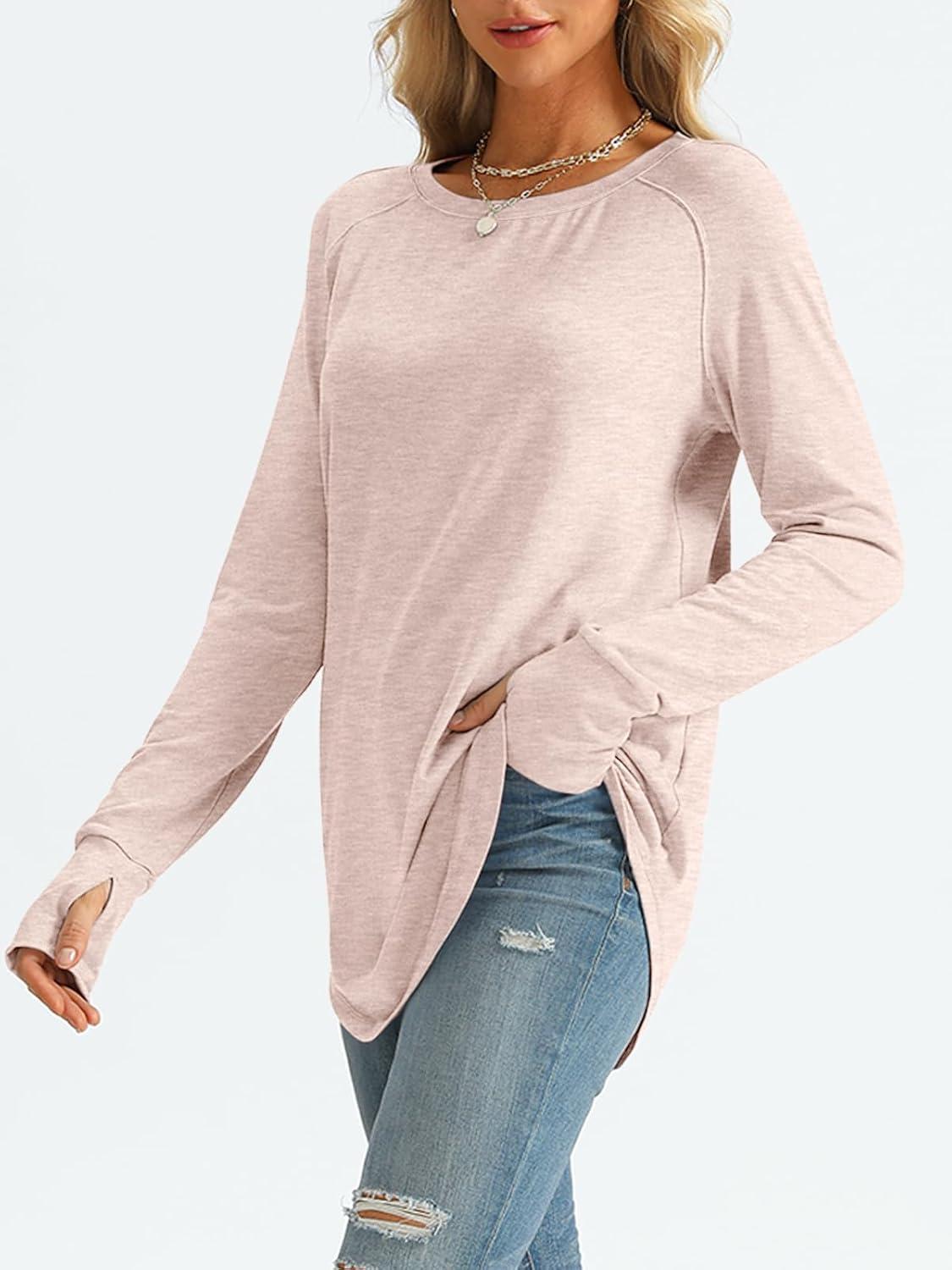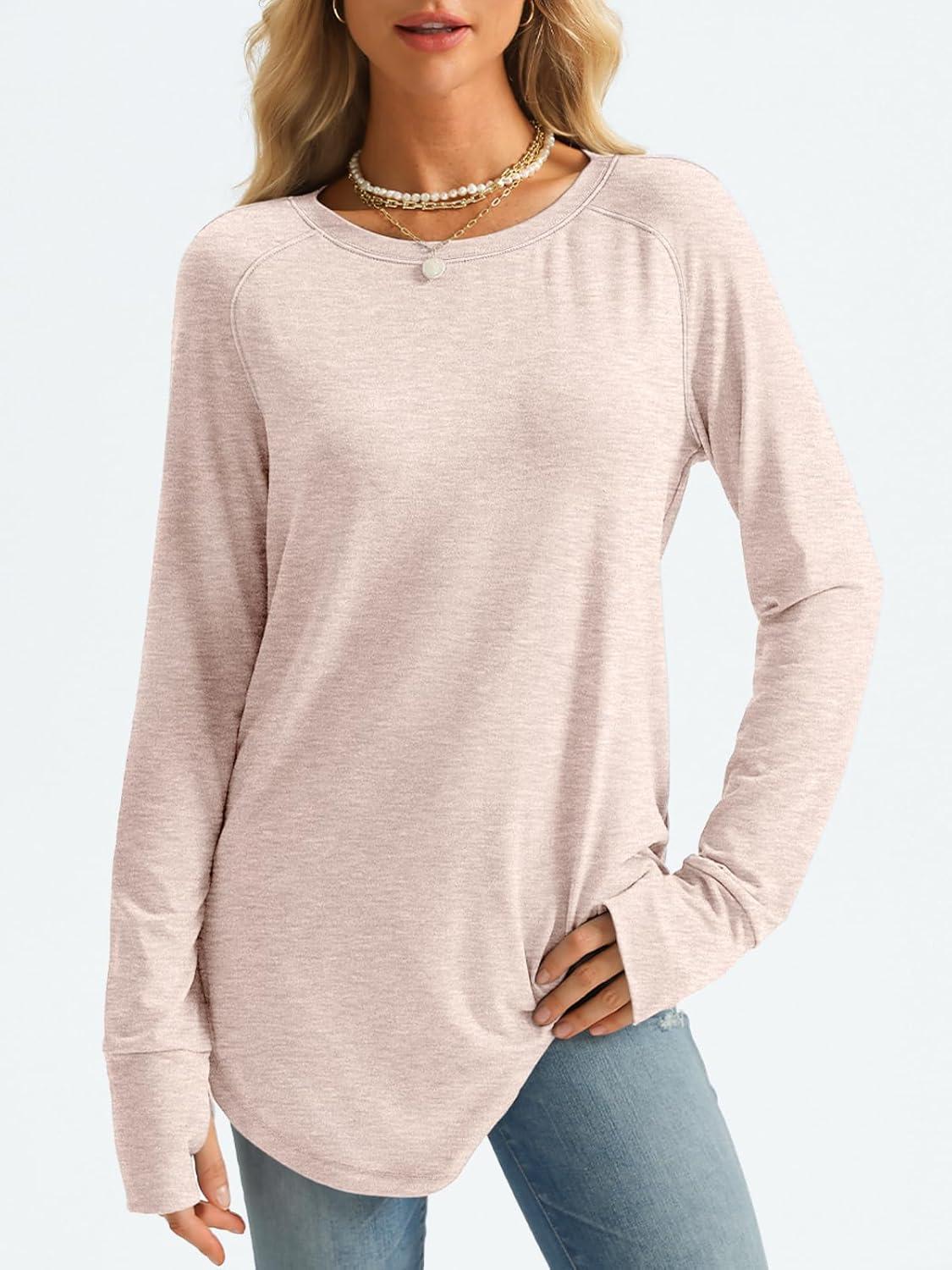 AUTOMET Womens Long Sleeve Shirts Crew Neck Casual Tshirts Fall Fashion Tops Loose Fit Lightweight Y2k Outfits Clothes(Pink)